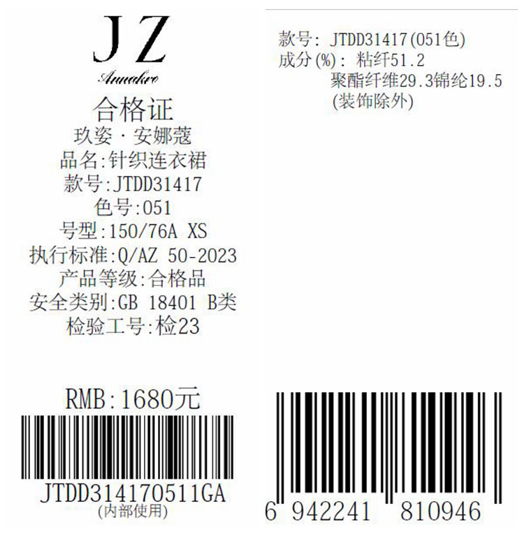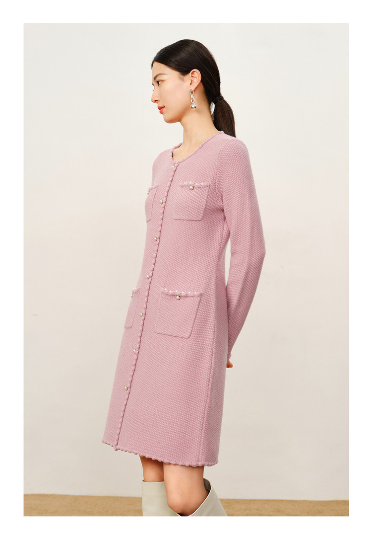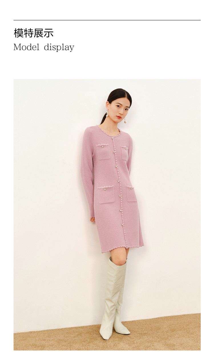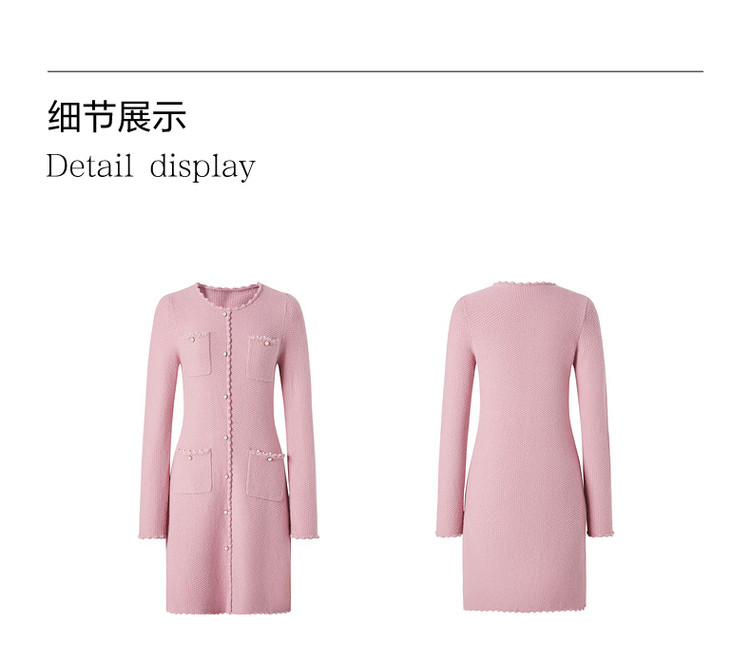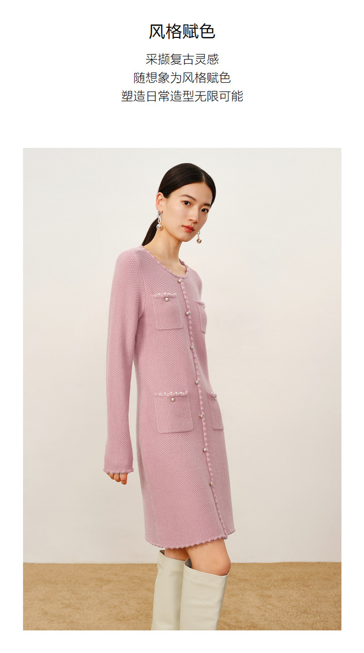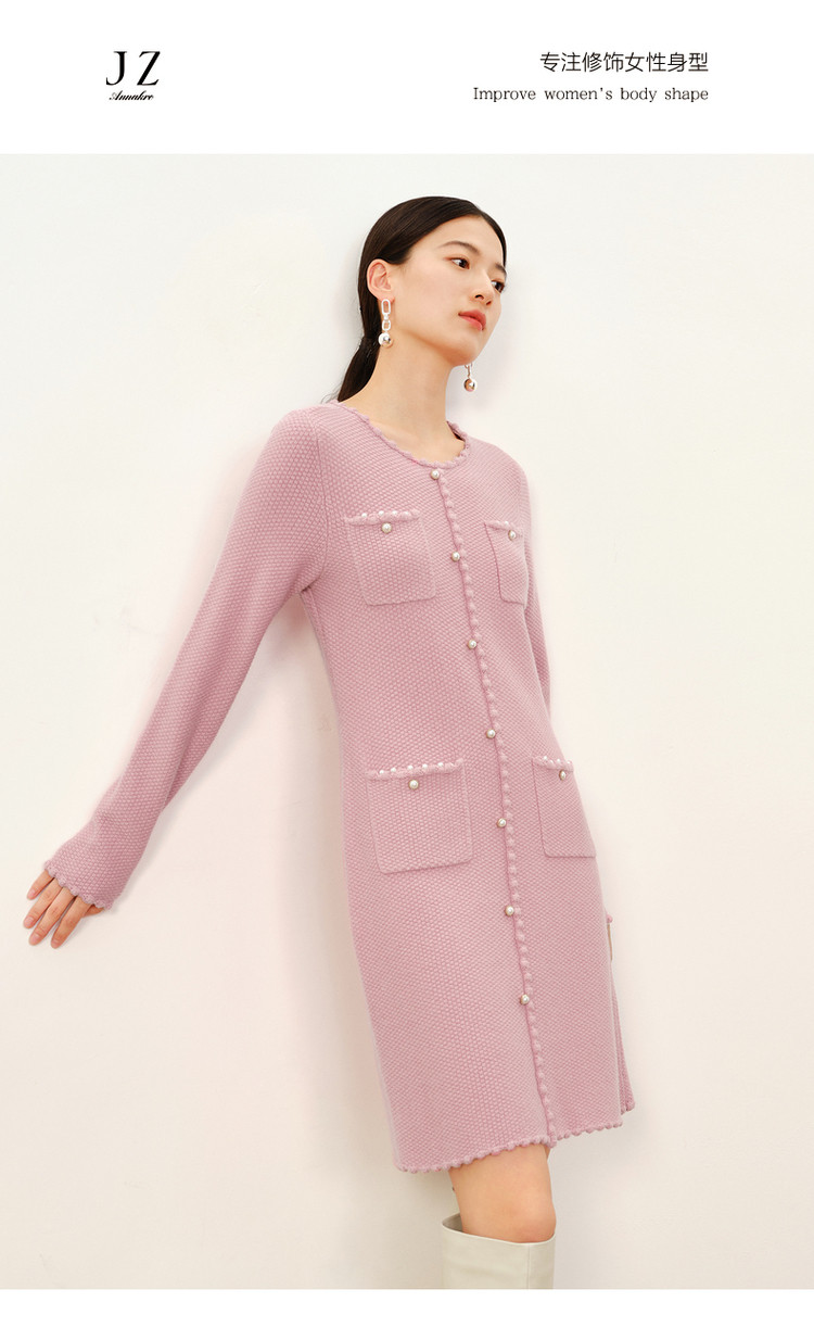 商品名称:玖姿旗下安娜蔻系列小香风圆领串珠保暖毛衫针织连衣裙女冬季 535884