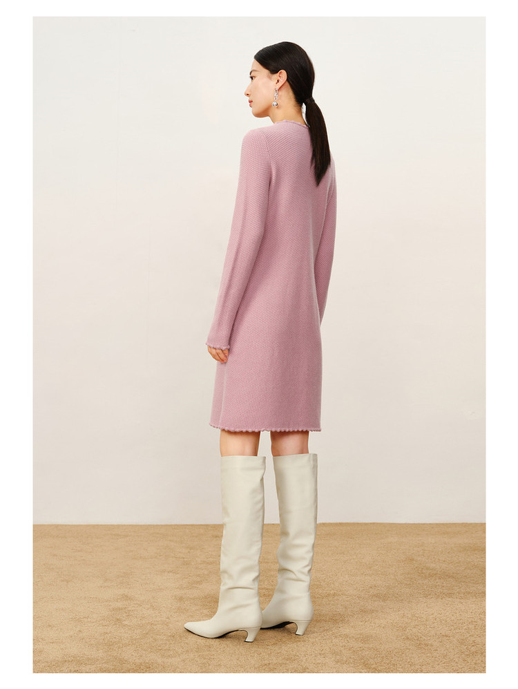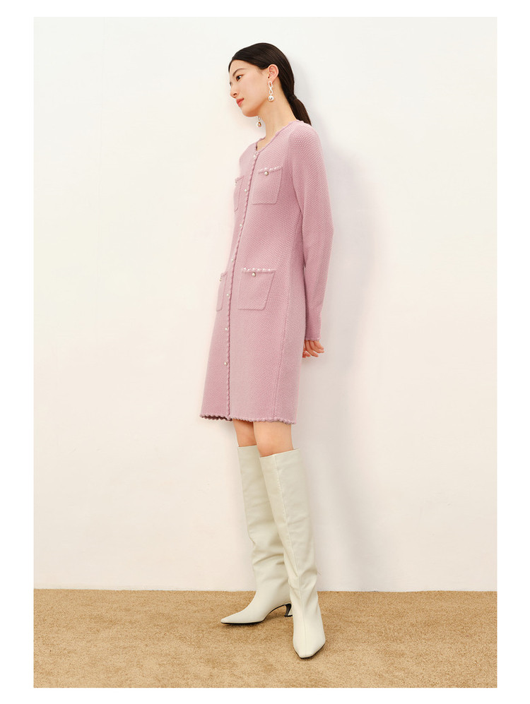 玖姿旗下安娜蔻系列小香风圆领串珠保暖毛衫针织连衣裙女冬季 535884