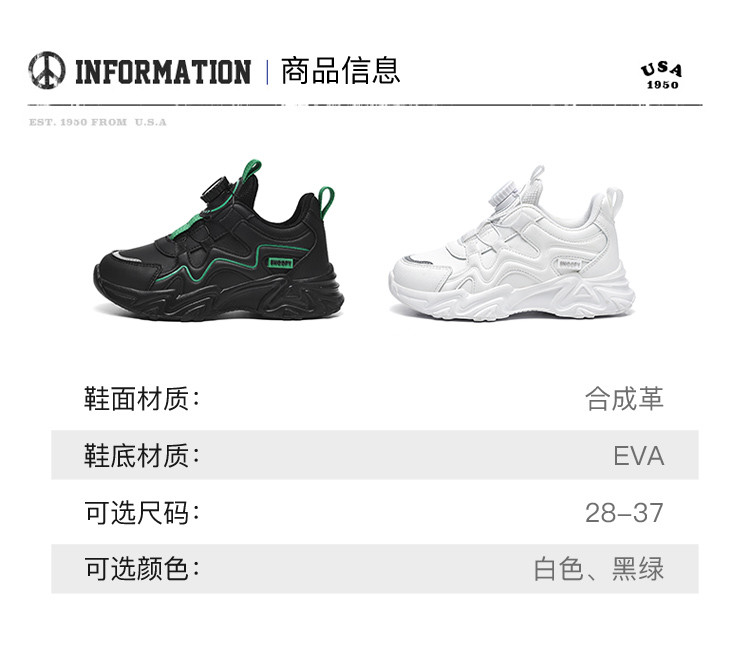 商品名称:【旋转扣运动小白鞋】春秋季中大童运动鞋男女休闲舒适百搭跑步鞋 134685