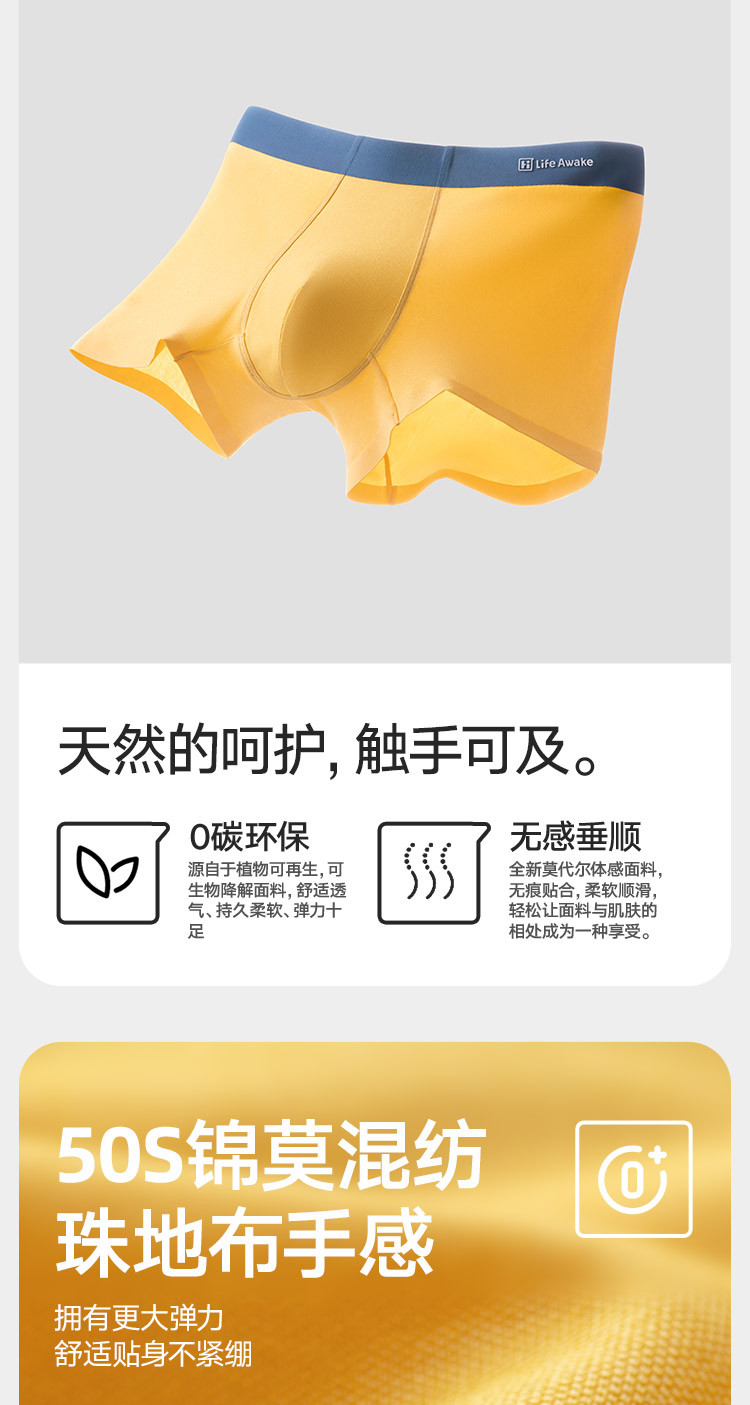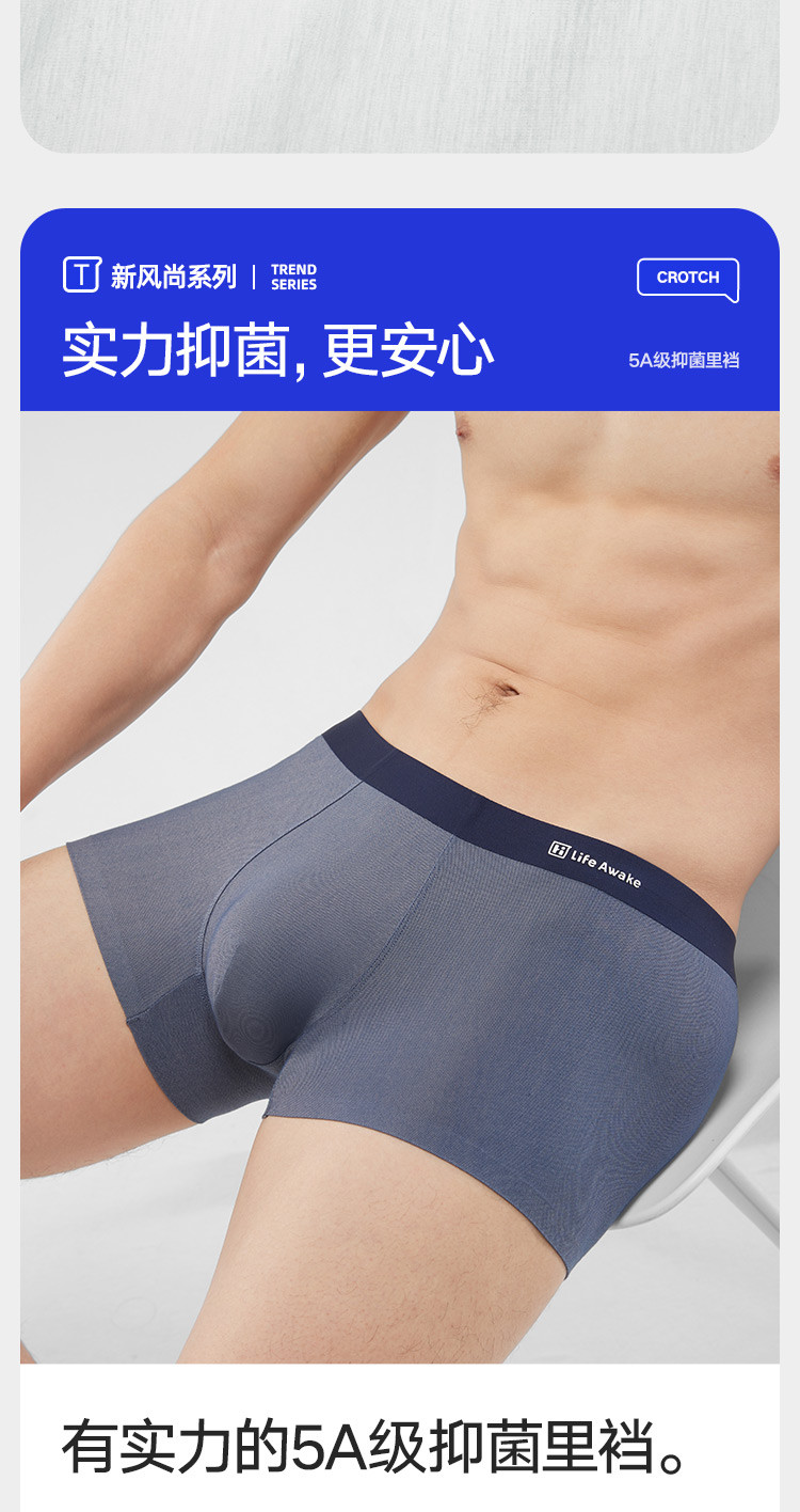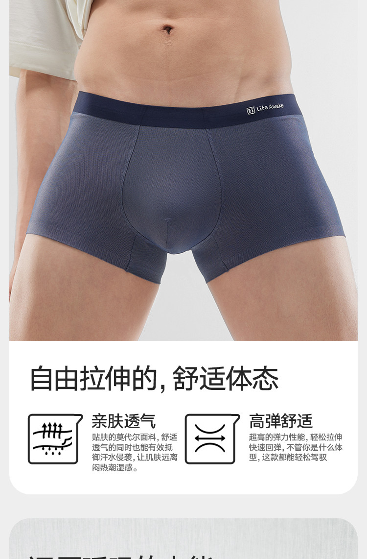 商品名称:【50S零碳莫代尔】3条装男士内裤无痕平角裤高端轻奢四角短裤 786714