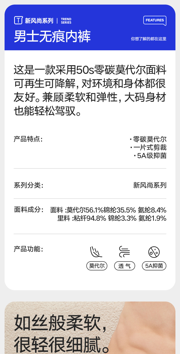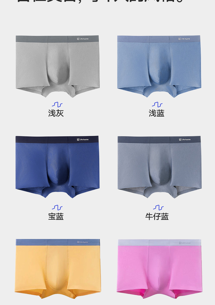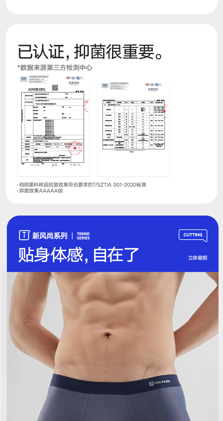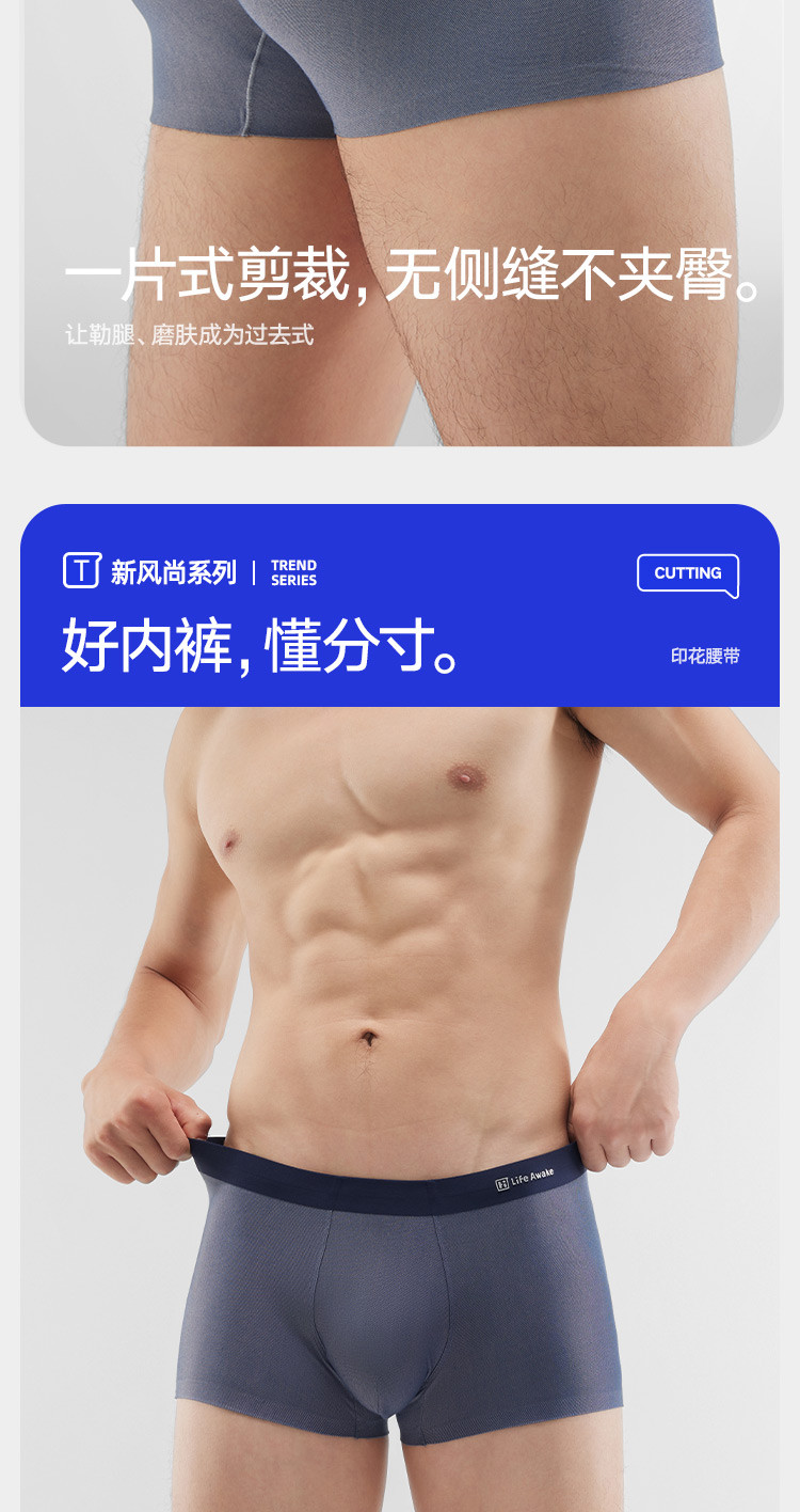 商品名称:【50S零碳莫代尔】3条装男士内裤无痕平角裤高端轻奢四角短裤 786714