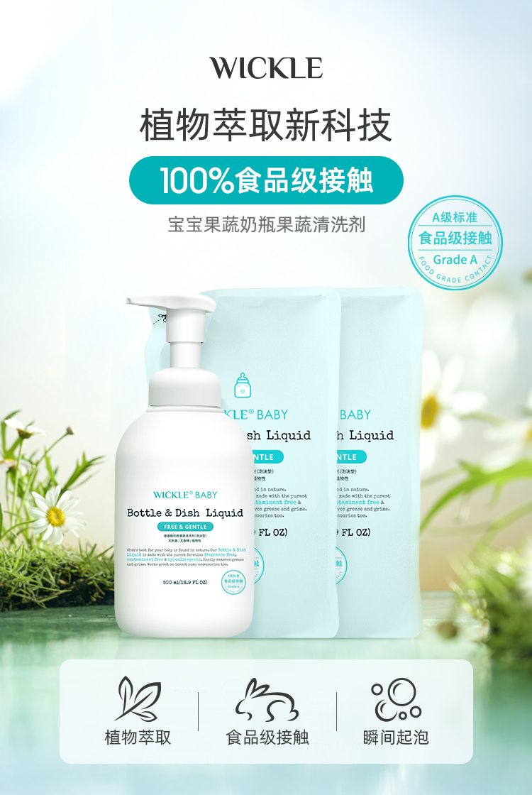 wickle 宝宝专用奶瓶果蔬玩具清洗剂(500ml*1瓶+500ml*2袋+50ml便携)