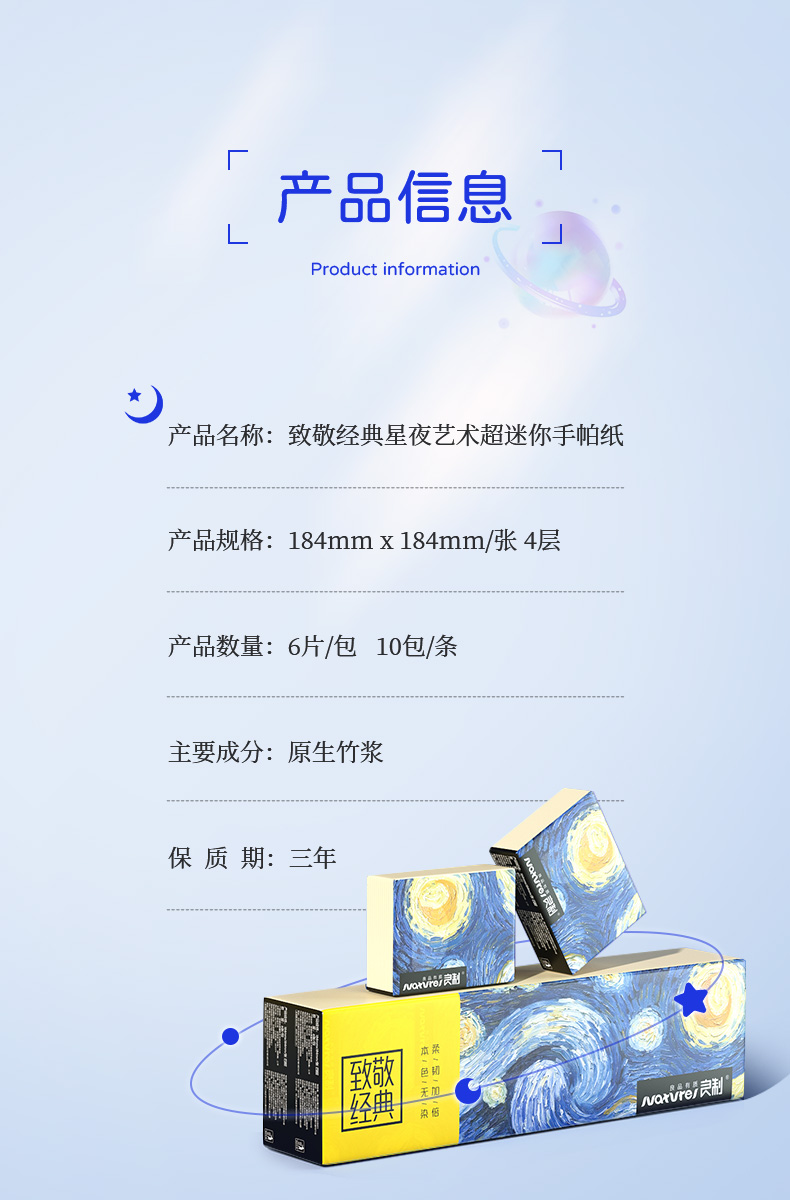 商品名称:LZ3S01A06A致敬经典星夜艺术超迷你手帕纸1件10包6条
