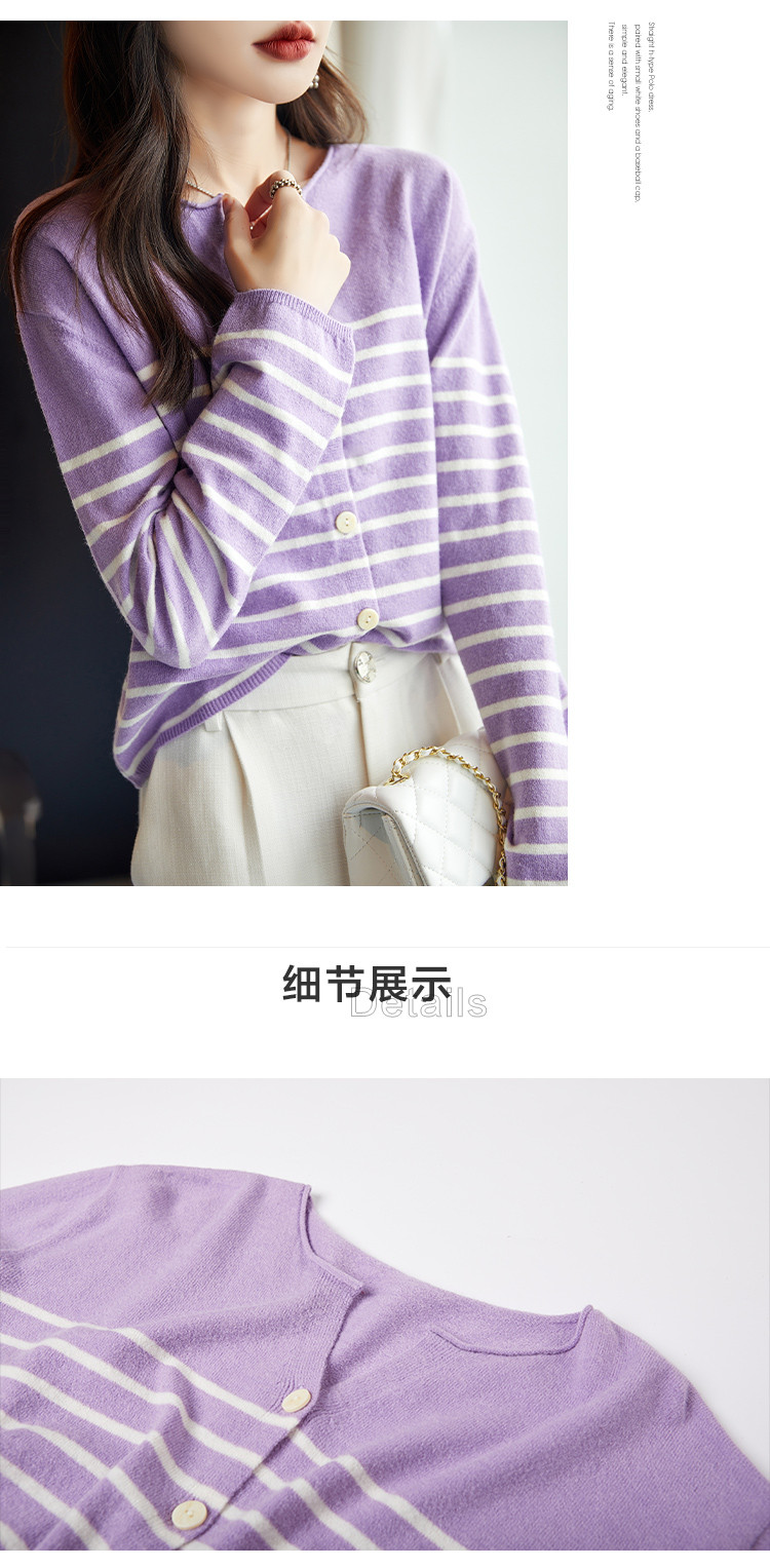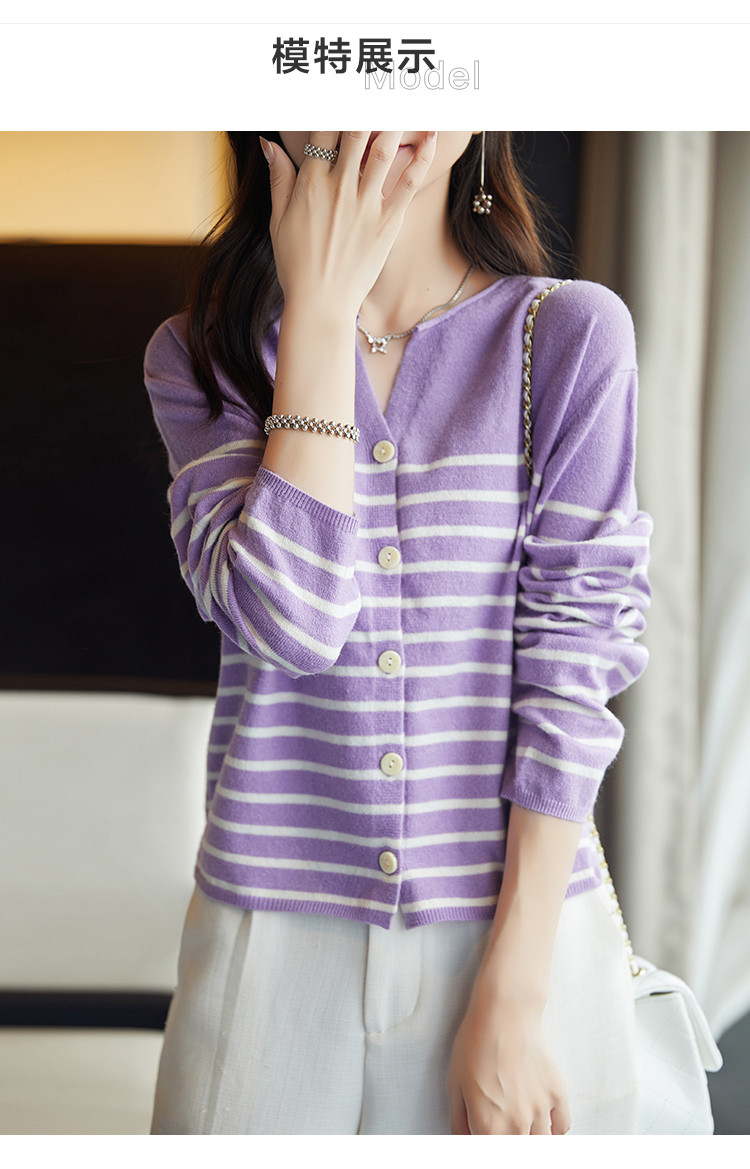 商品名称:【通勤纤绒纱条纹开衫】春秋V领气质长袖针织衫女上衣 654977