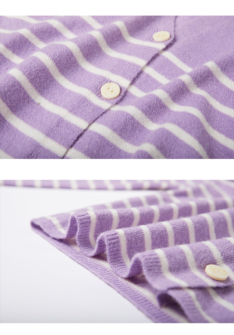 【通勤纤绒纱条纹开衫】春秋V领气质长袖针织衫女上衣 654977