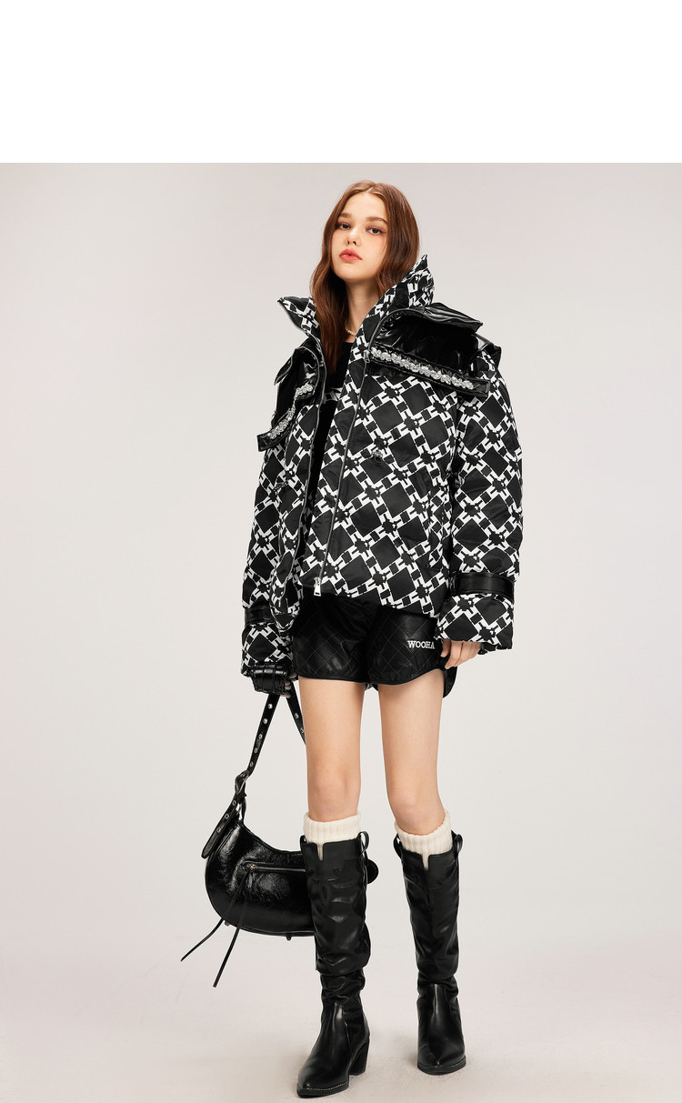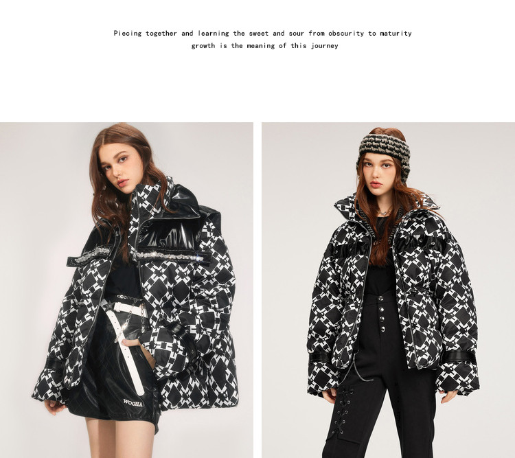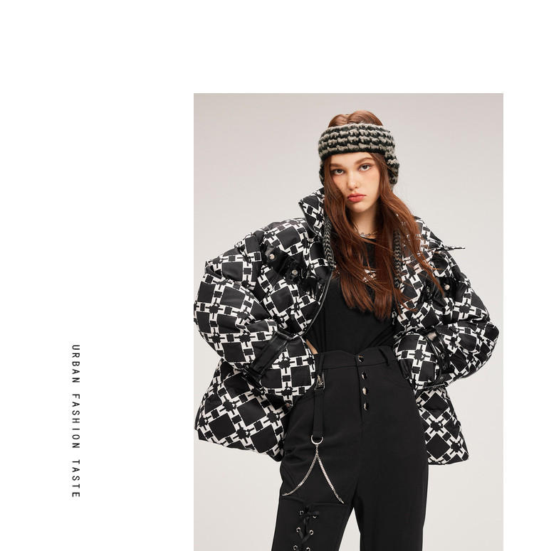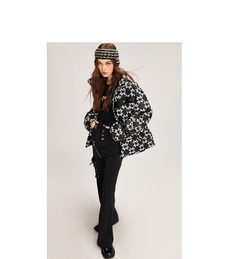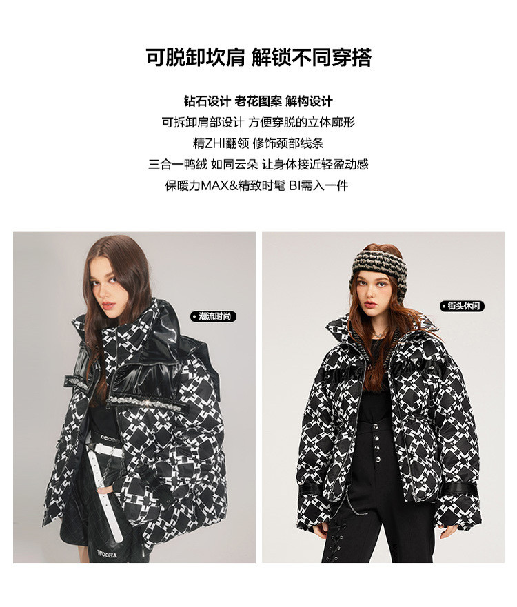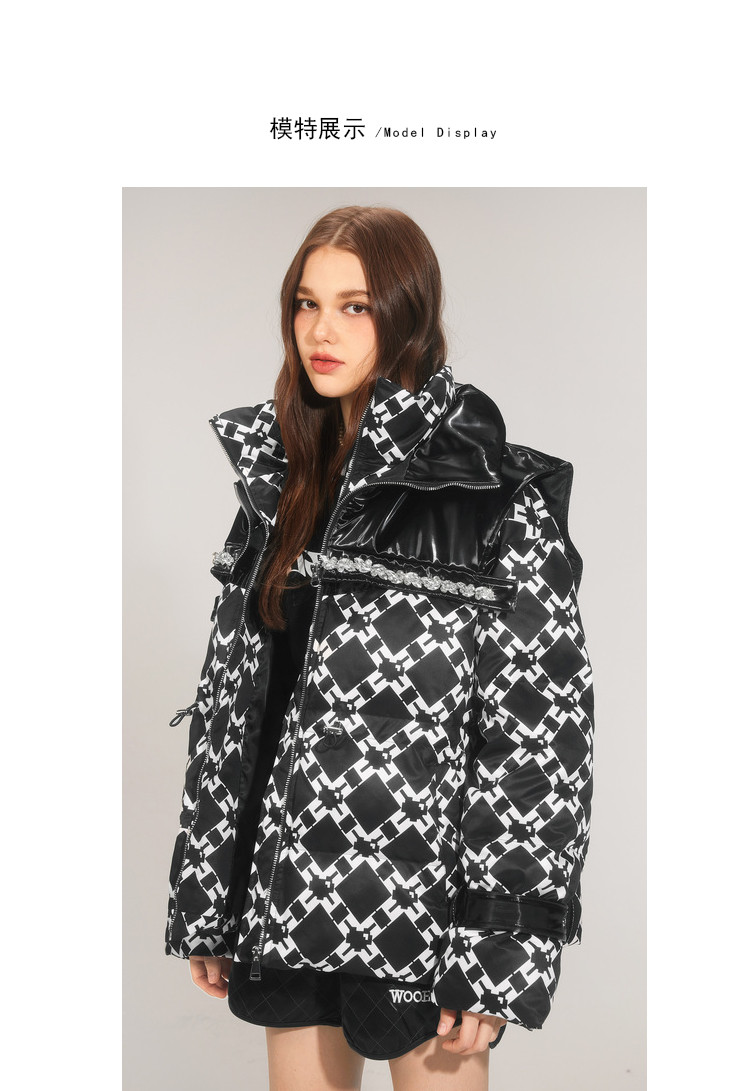 商品名称:冬季复古短款羽绒服女带钻老花设计感外套 582164