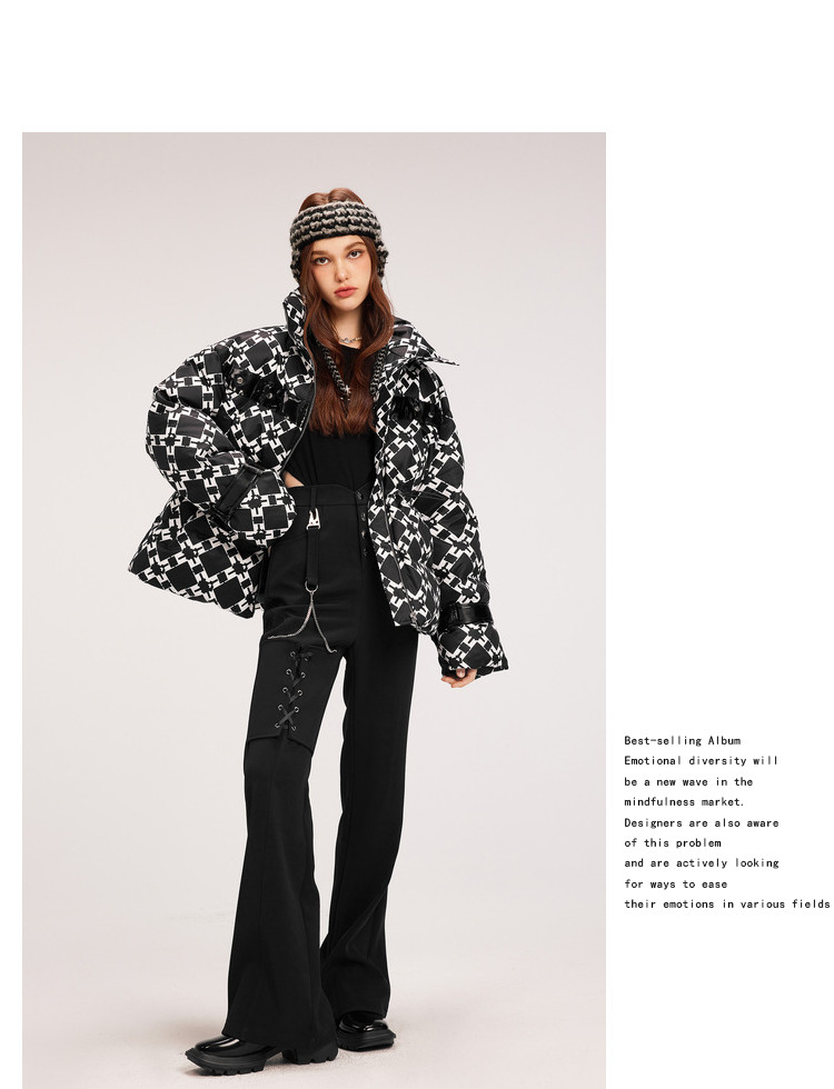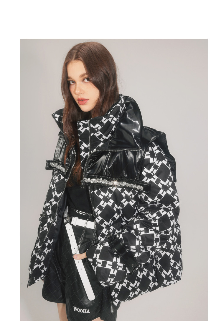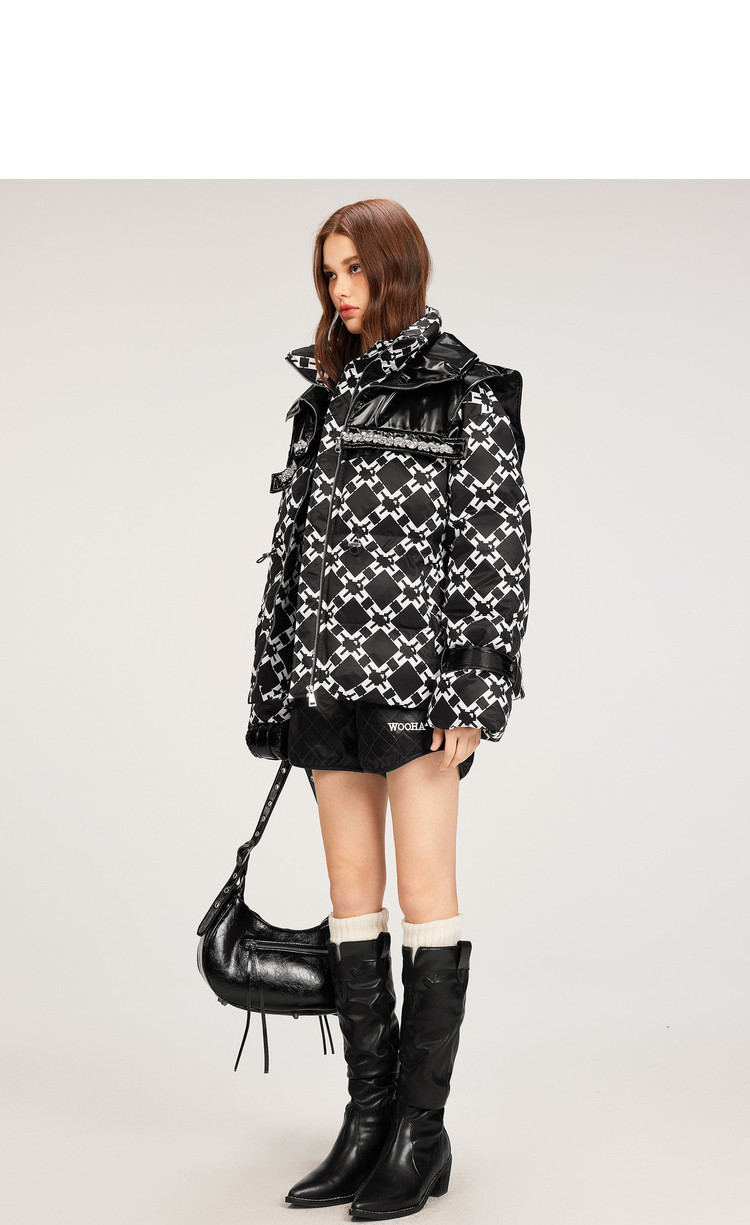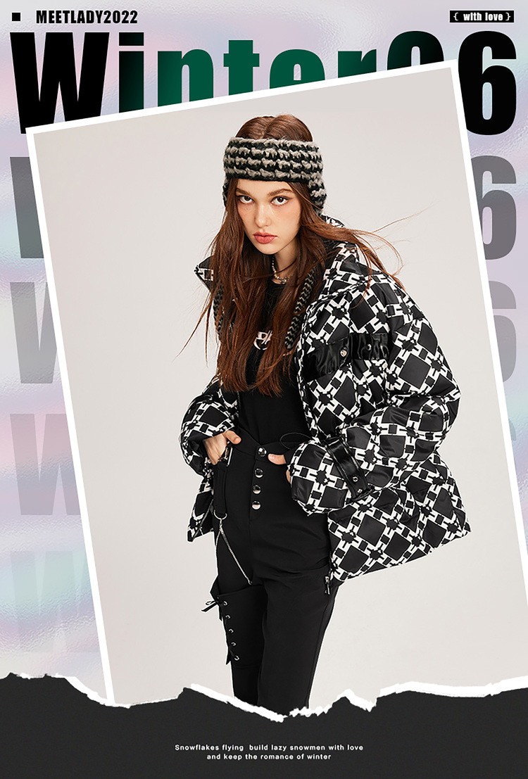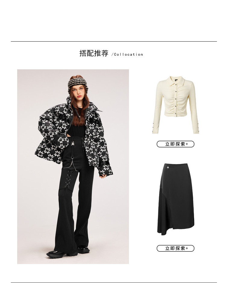 商品名称:冬季复古短款羽绒服女带钻老花设计感外套 582164