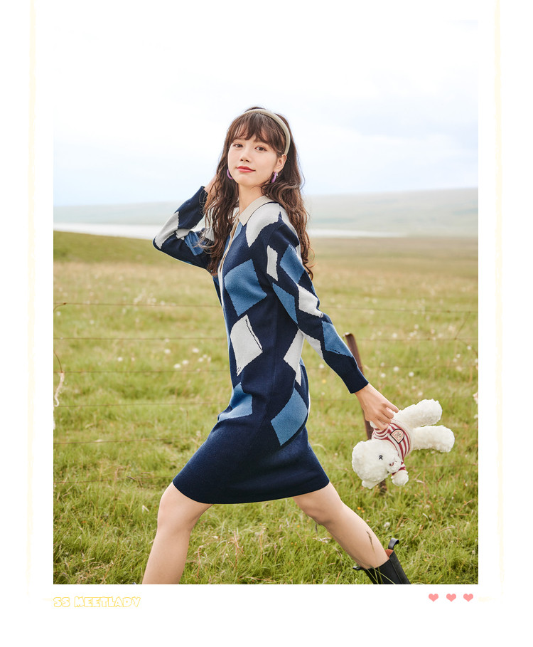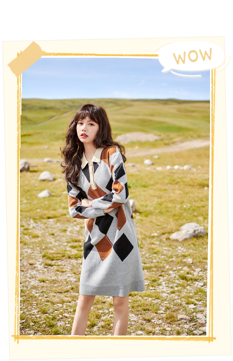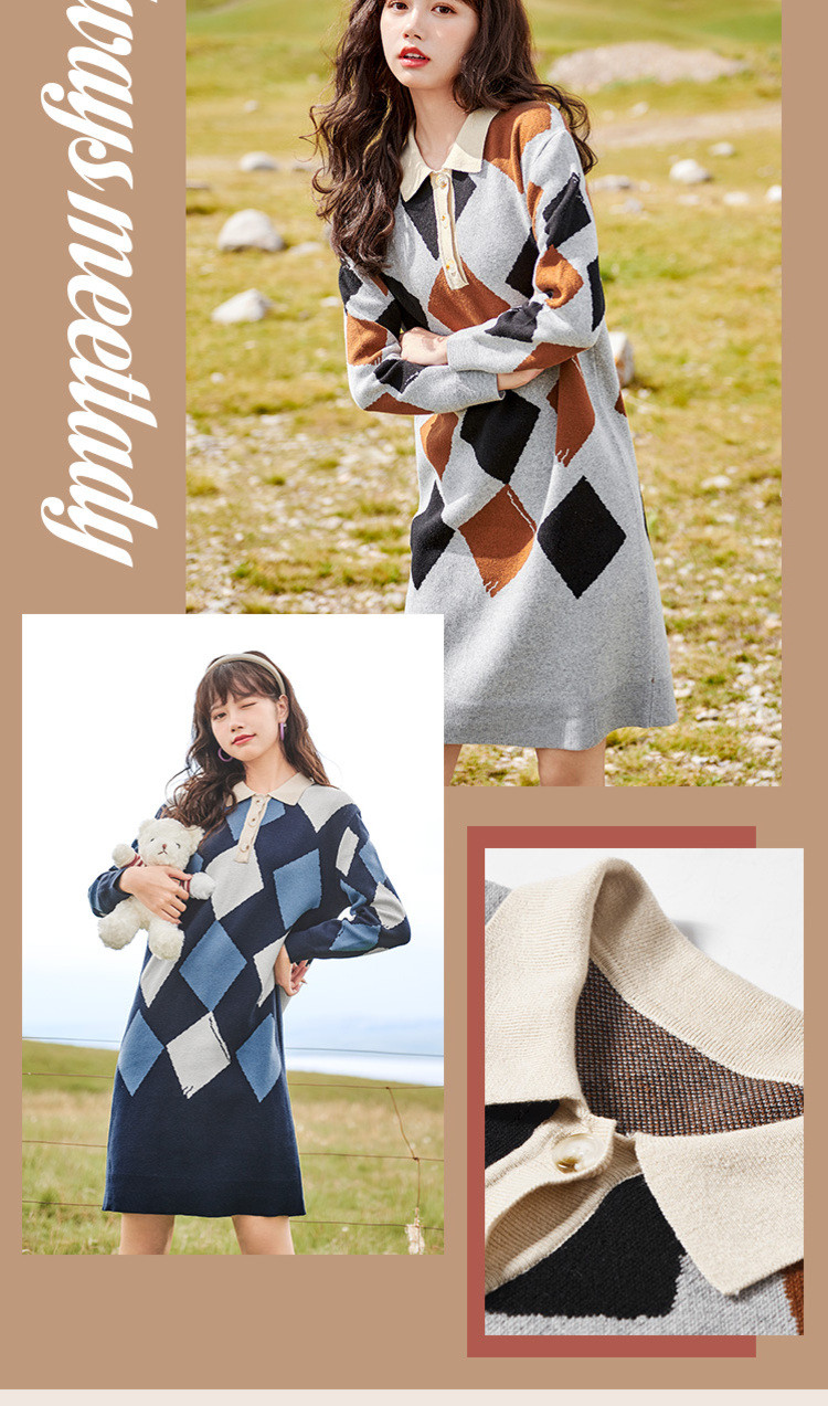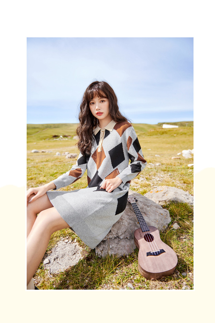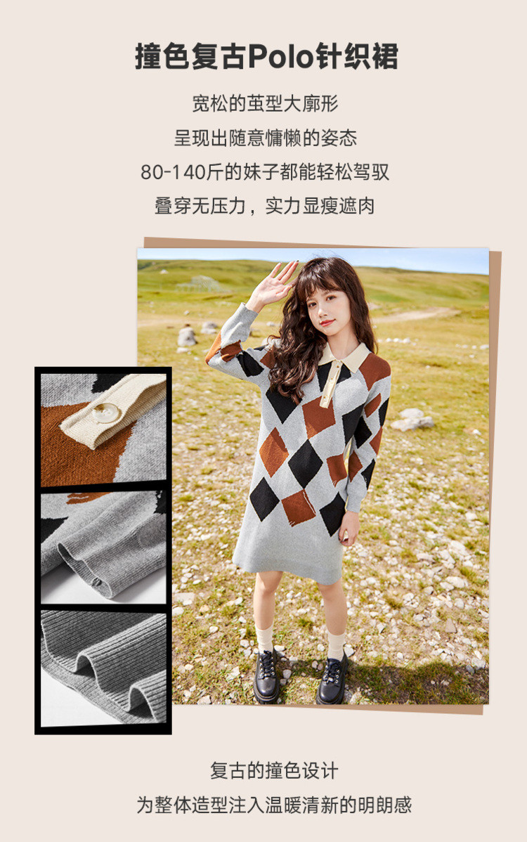 冬复古针织连衣裙女polo领直筒裙包芯纱套头裙 174740