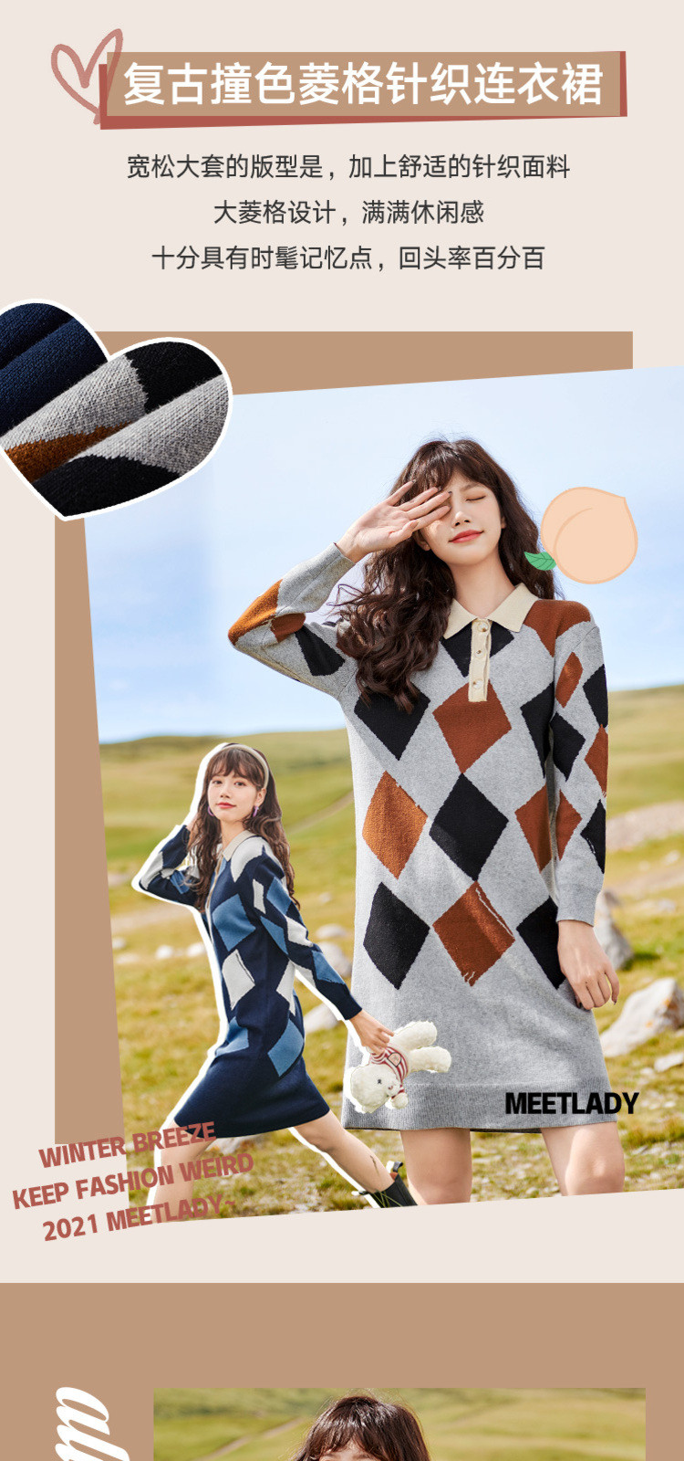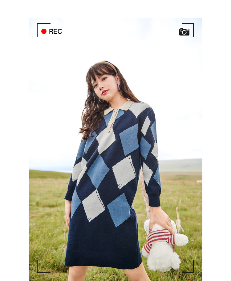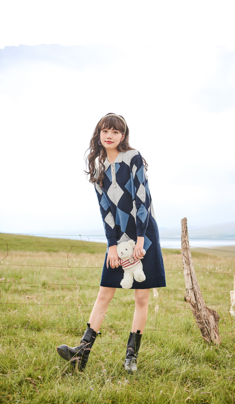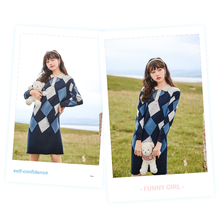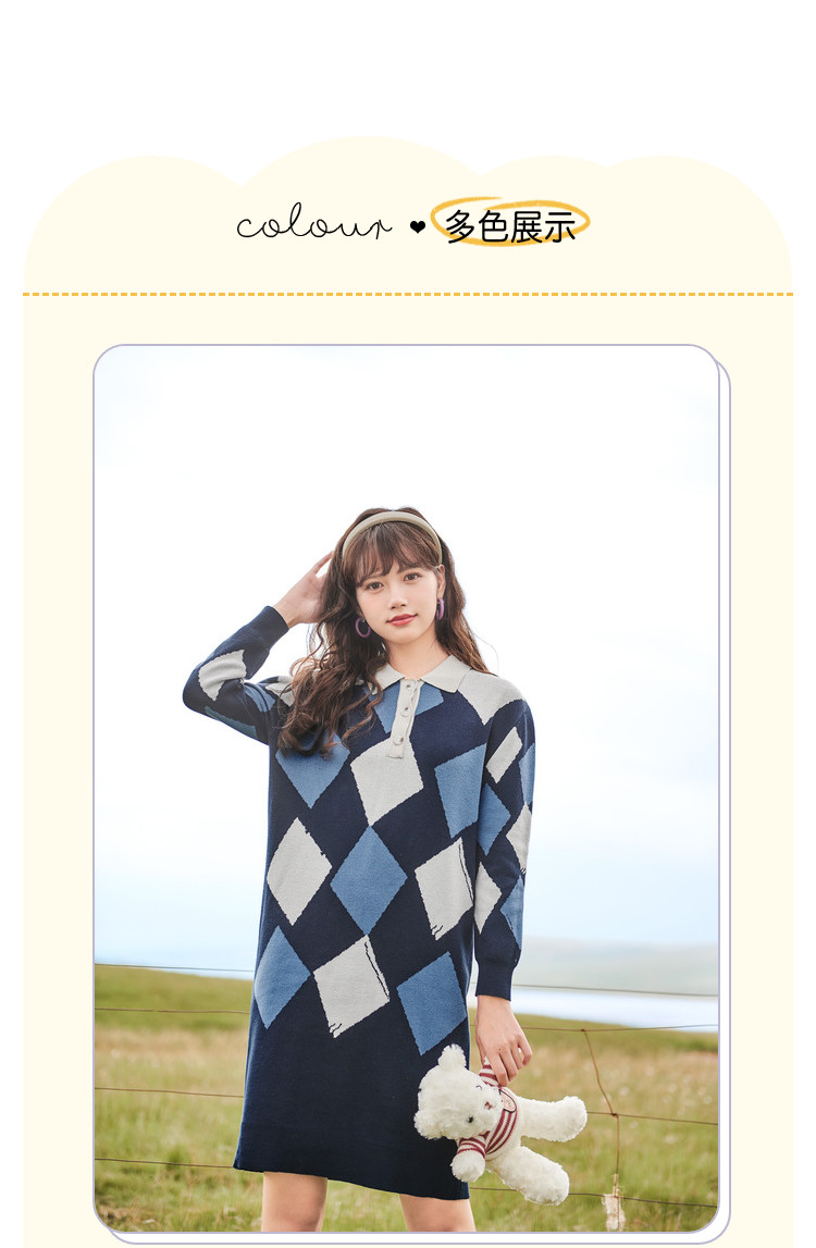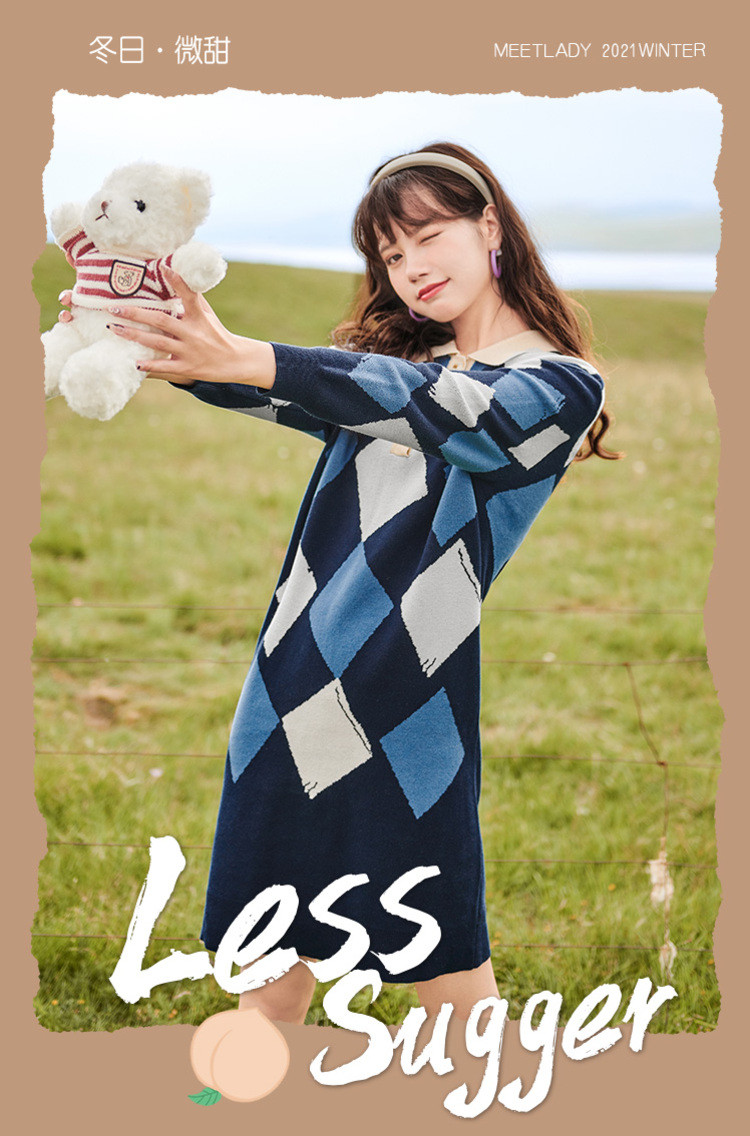 冬复古针织连衣裙女polo领直筒裙包芯纱套头裙 174740