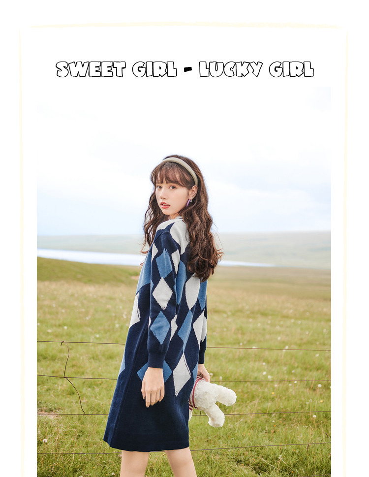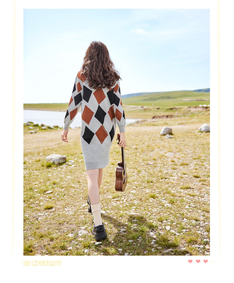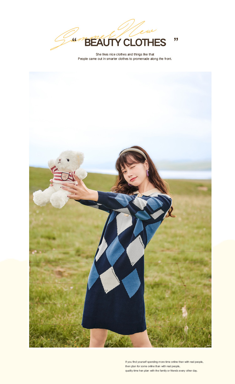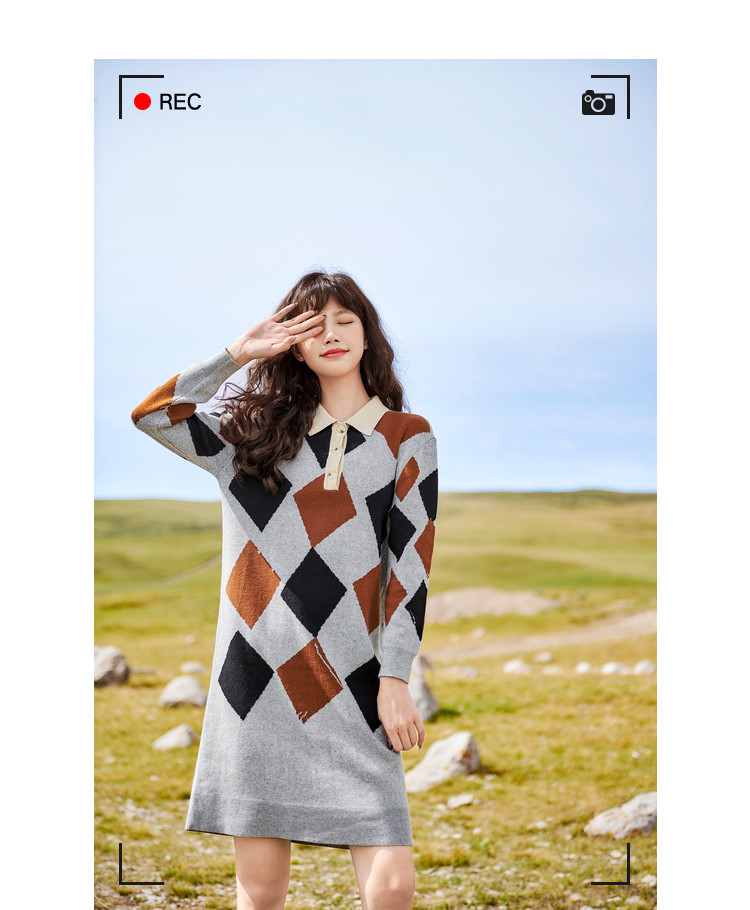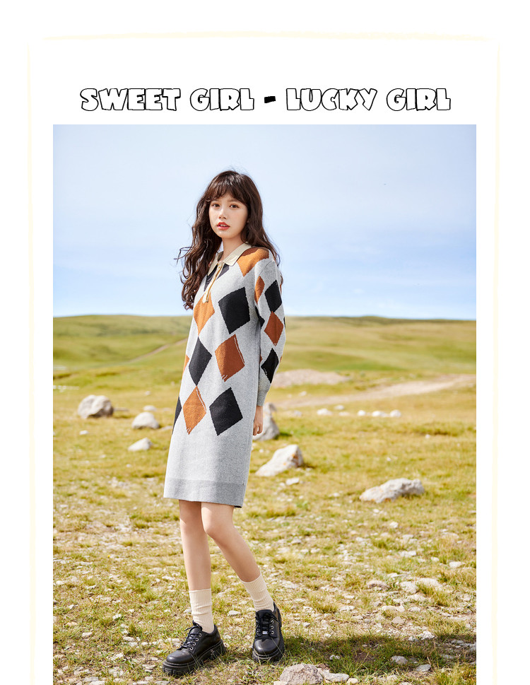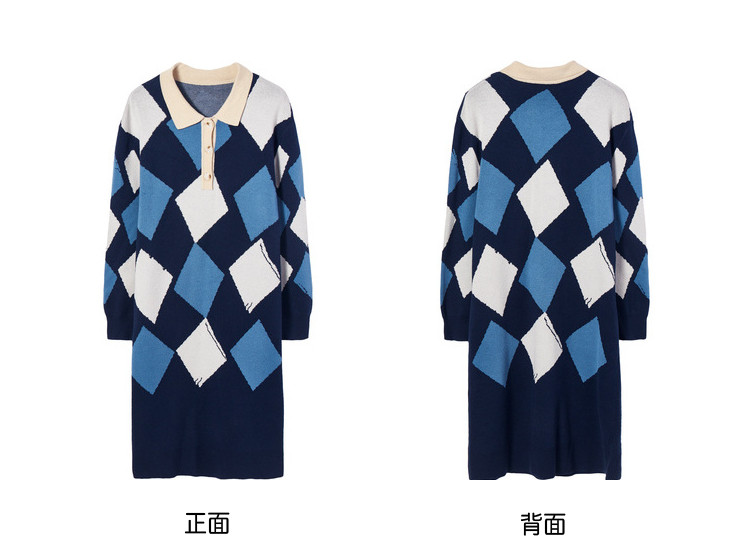 商品名称:冬复古针织连衣裙女polo领直筒裙包芯纱套头裙 174740