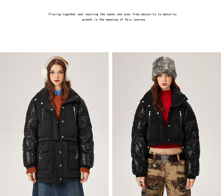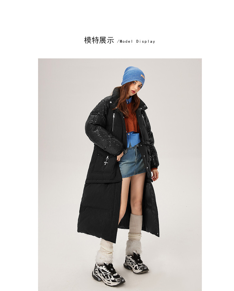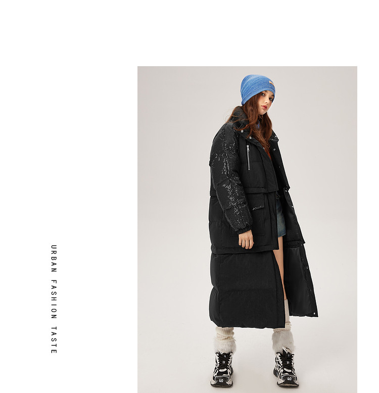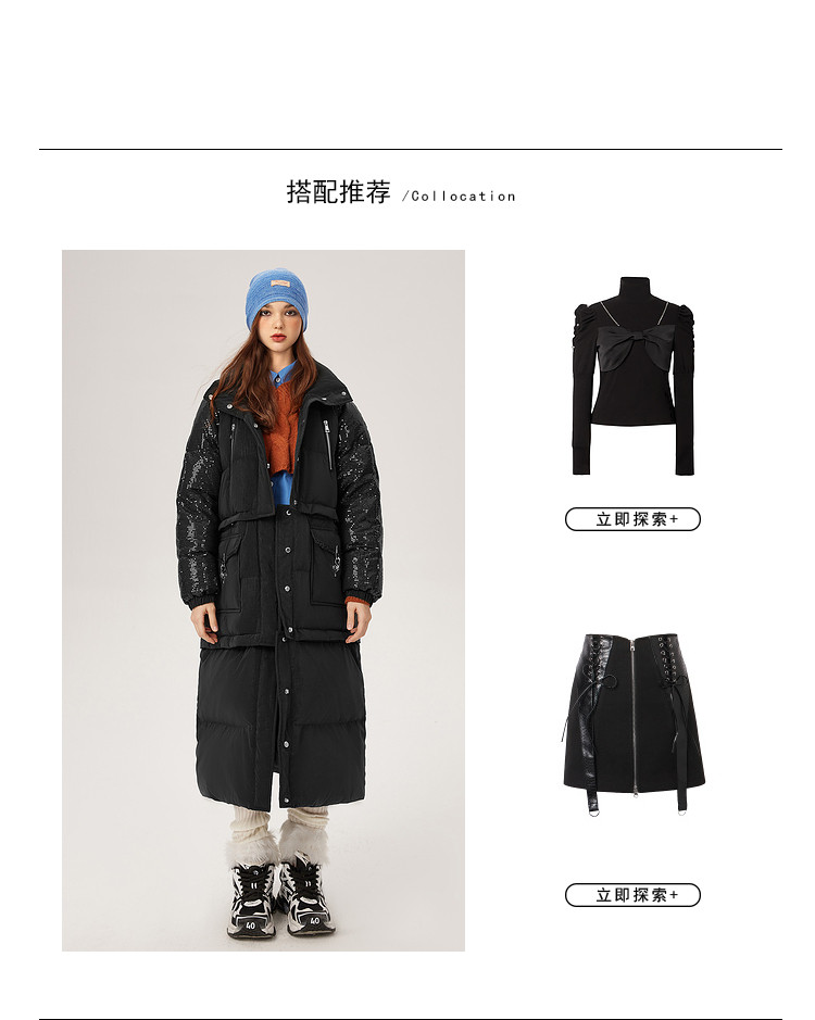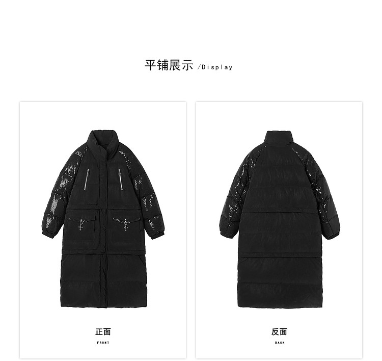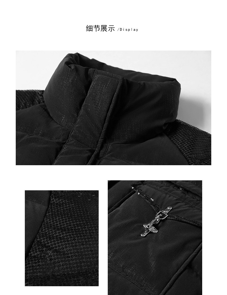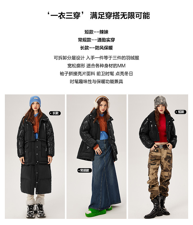 商品名称:【可拆卸三合一】冬季90白鸭绒羽绒服女亮片设计小众保暖外套 541076