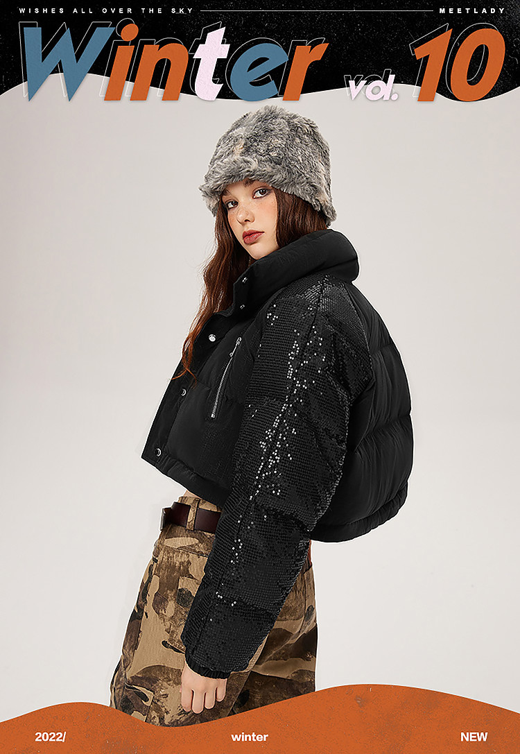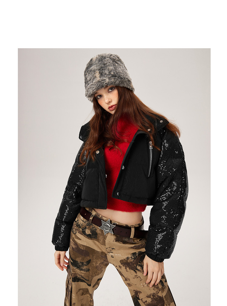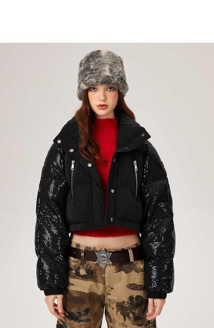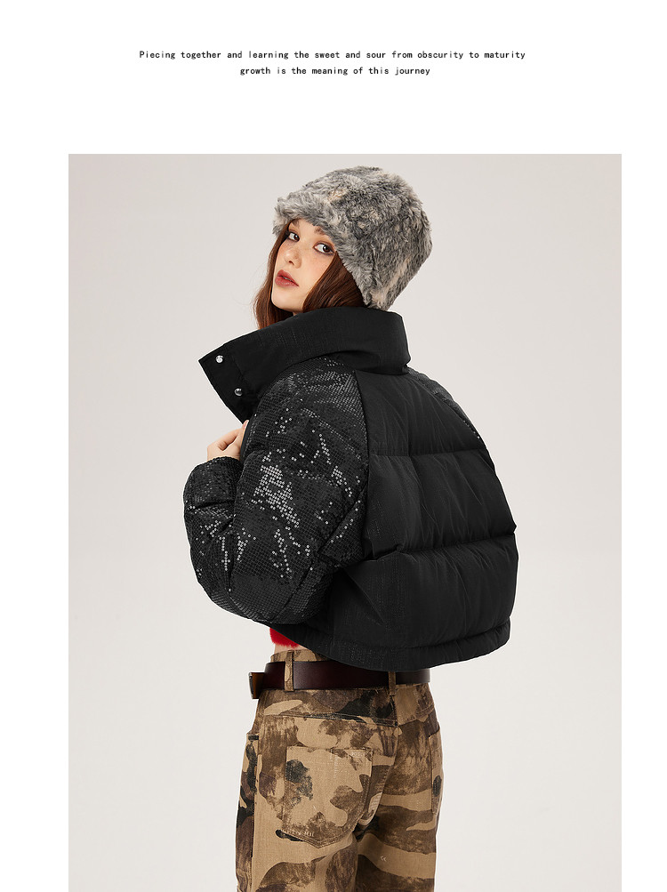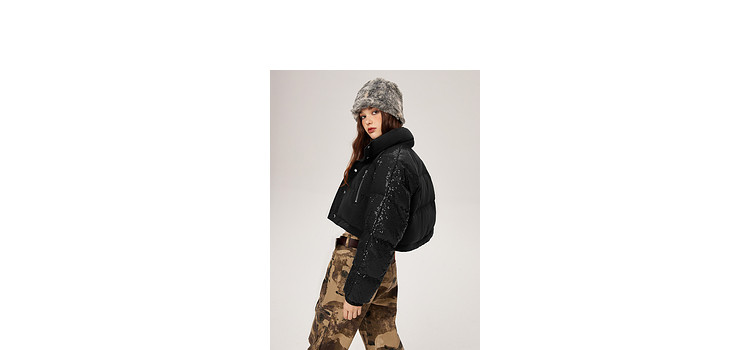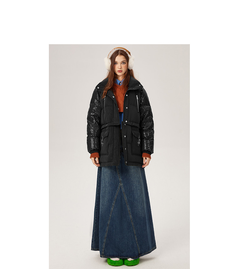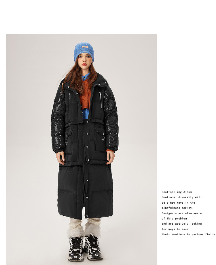 商品名称:【可拆卸三合一】冬季90白鸭绒羽绒服女亮片设计小众保暖外套 541076