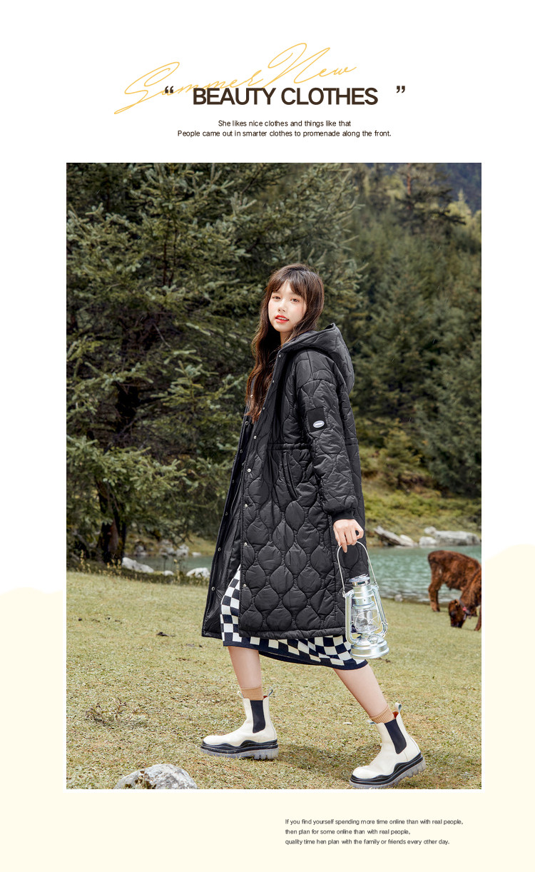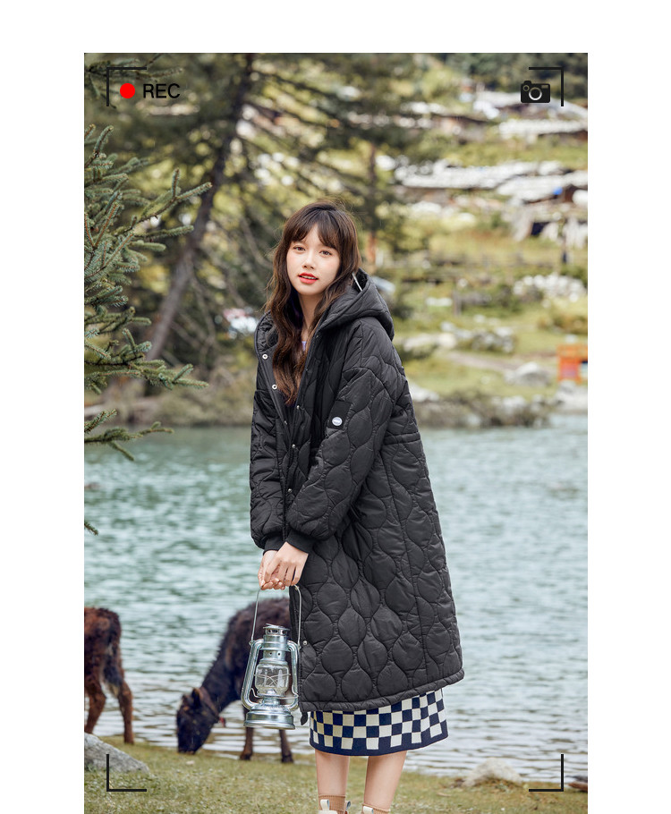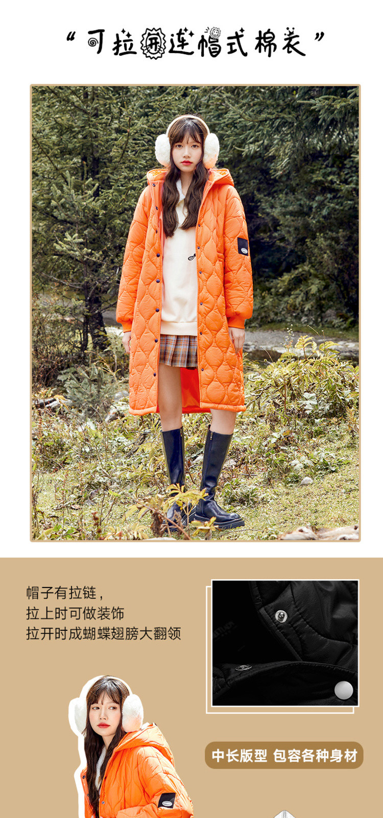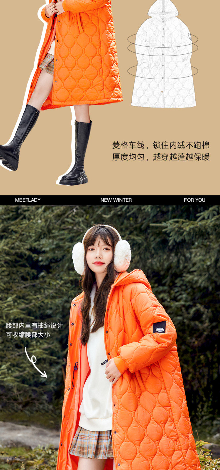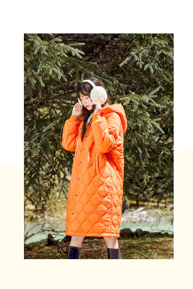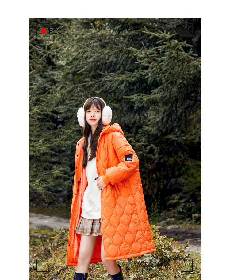 商品名称:冬连帽棉服女中长款宽松纯色长袖保暖棉衣外套潮 944212