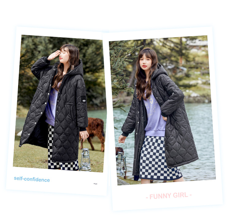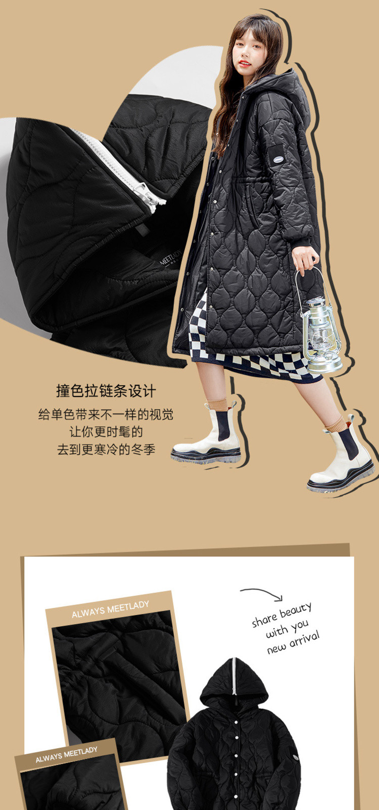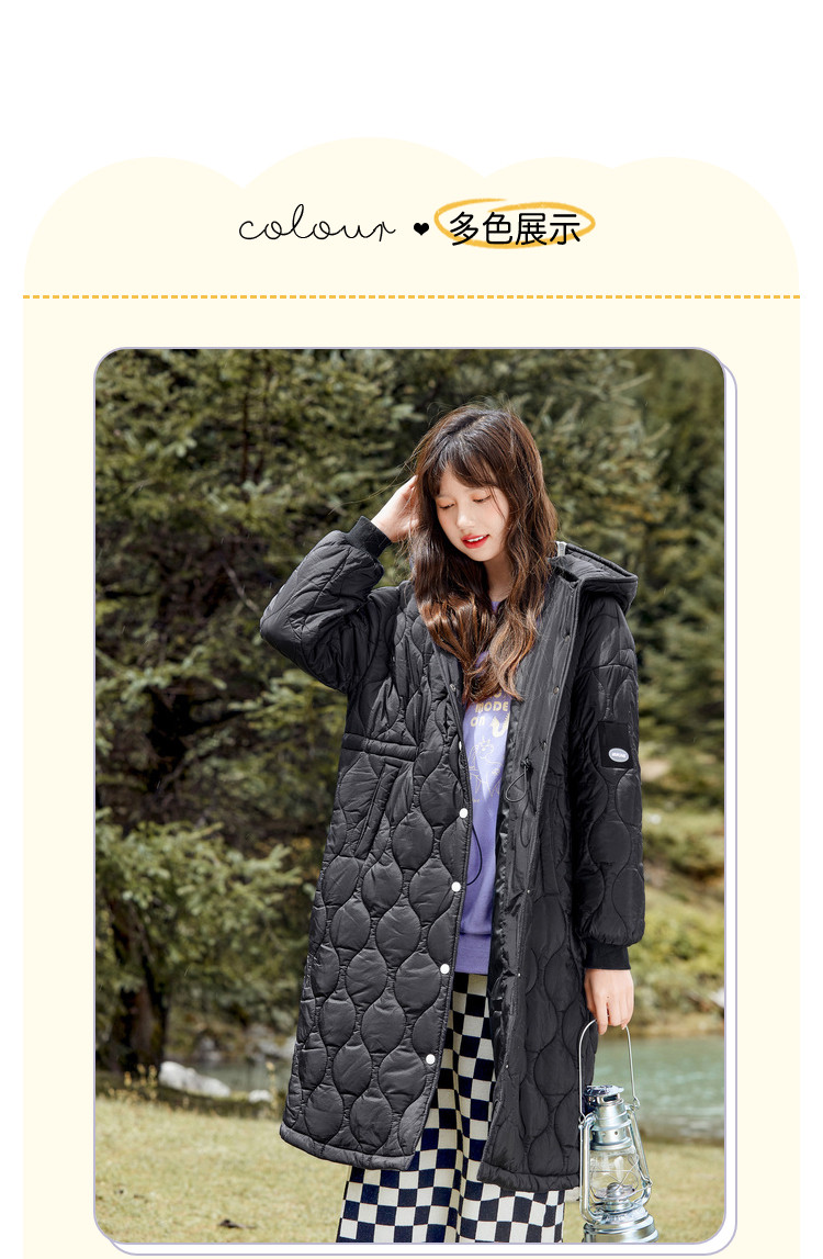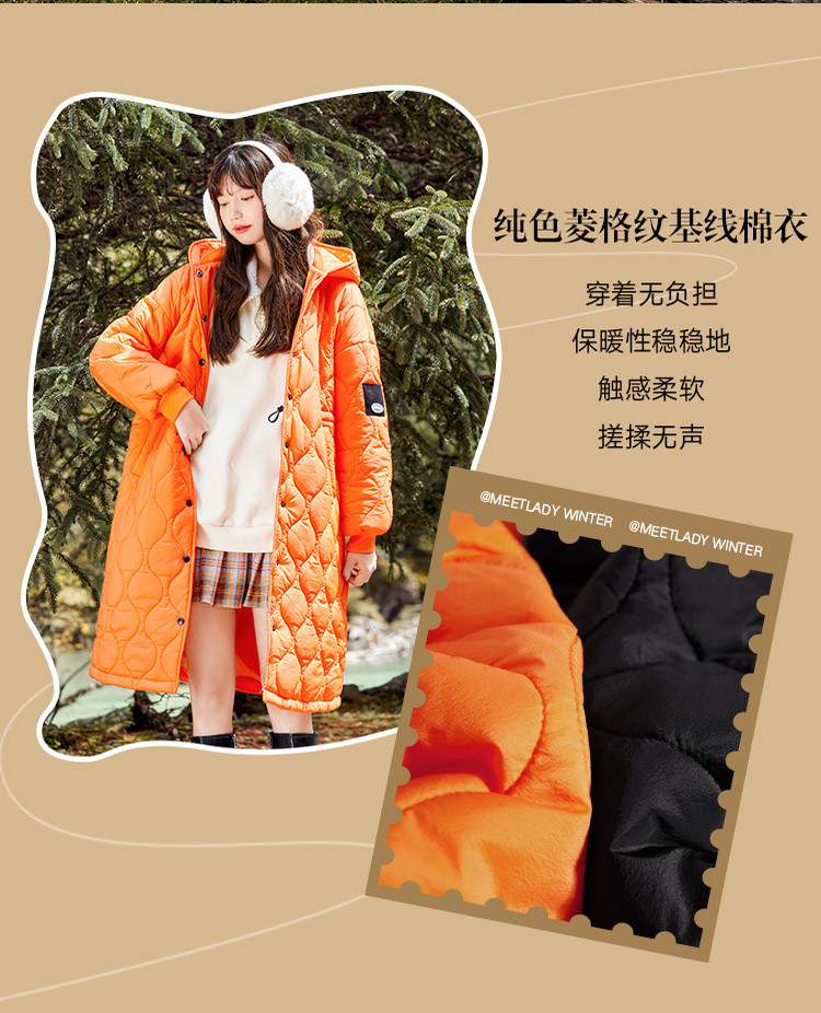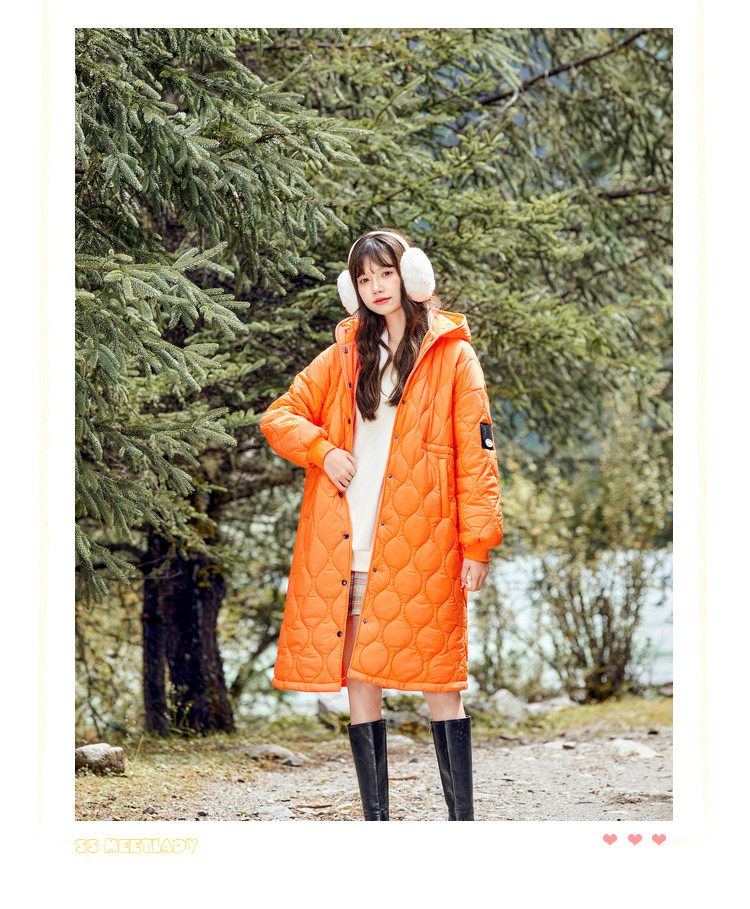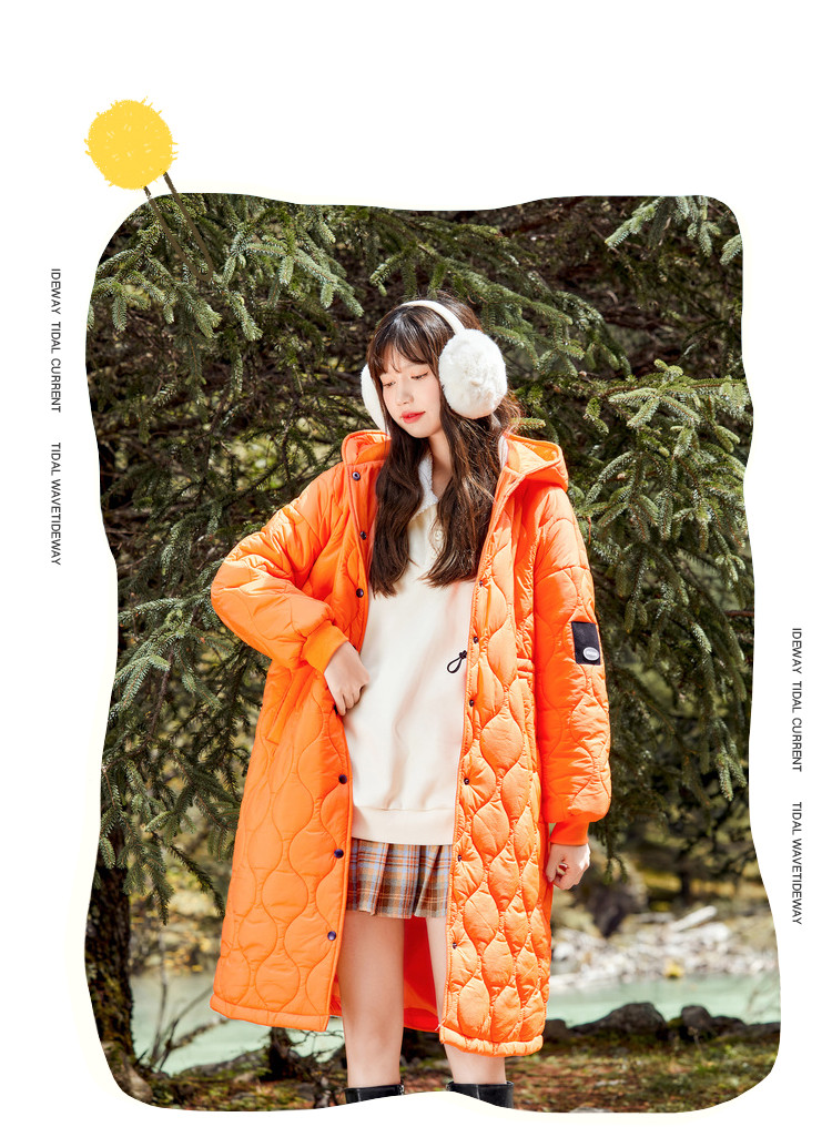 商品名称:冬连帽棉服女中长款宽松纯色长袖保暖棉衣外套潮 944212