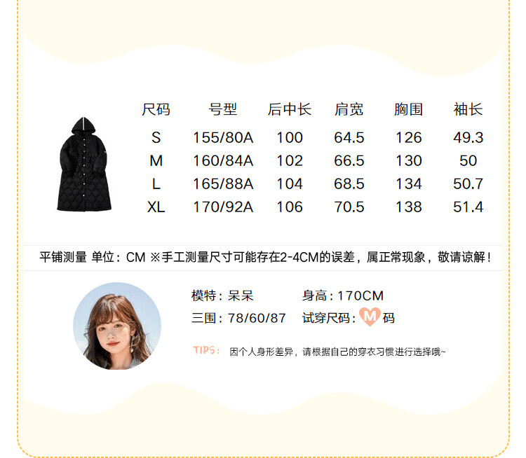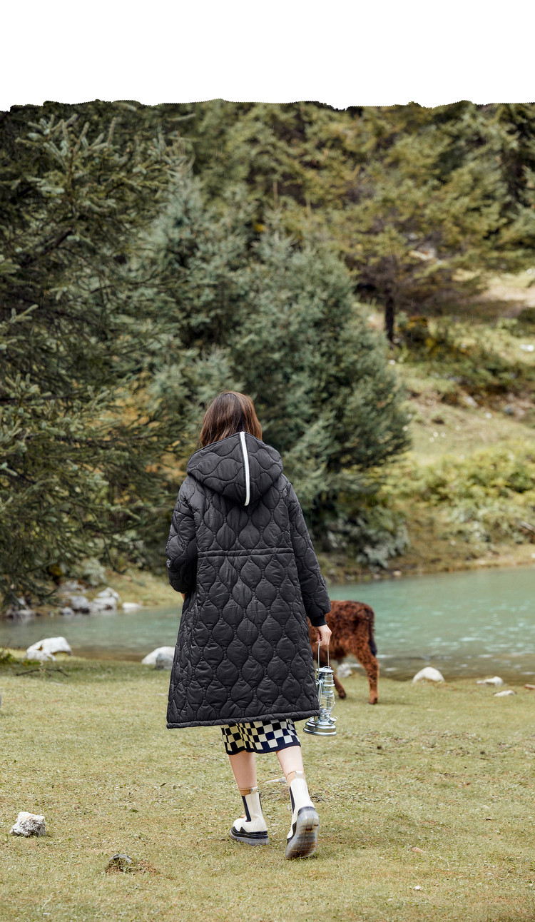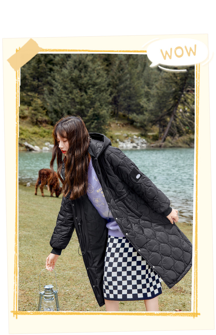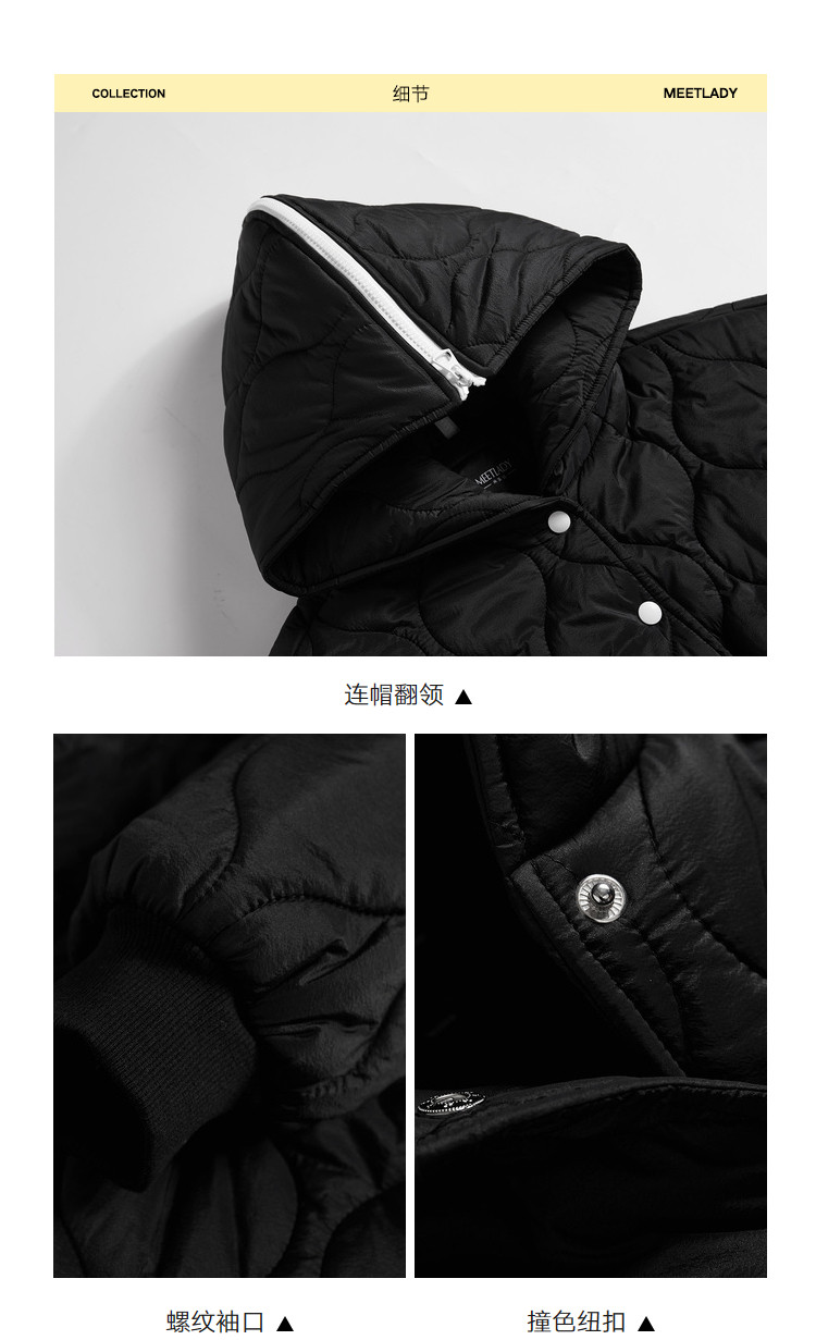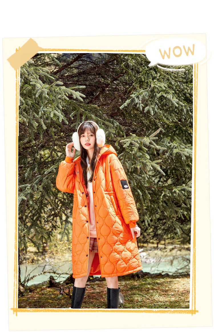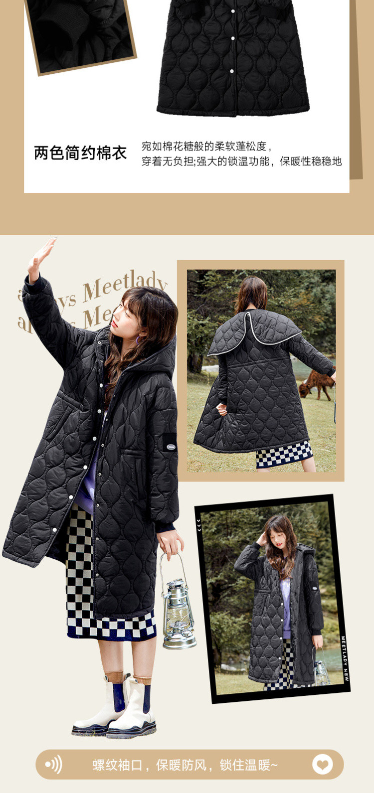 商品名称:冬连帽棉服女中长款宽松纯色长袖保暖棉衣外套潮 944212