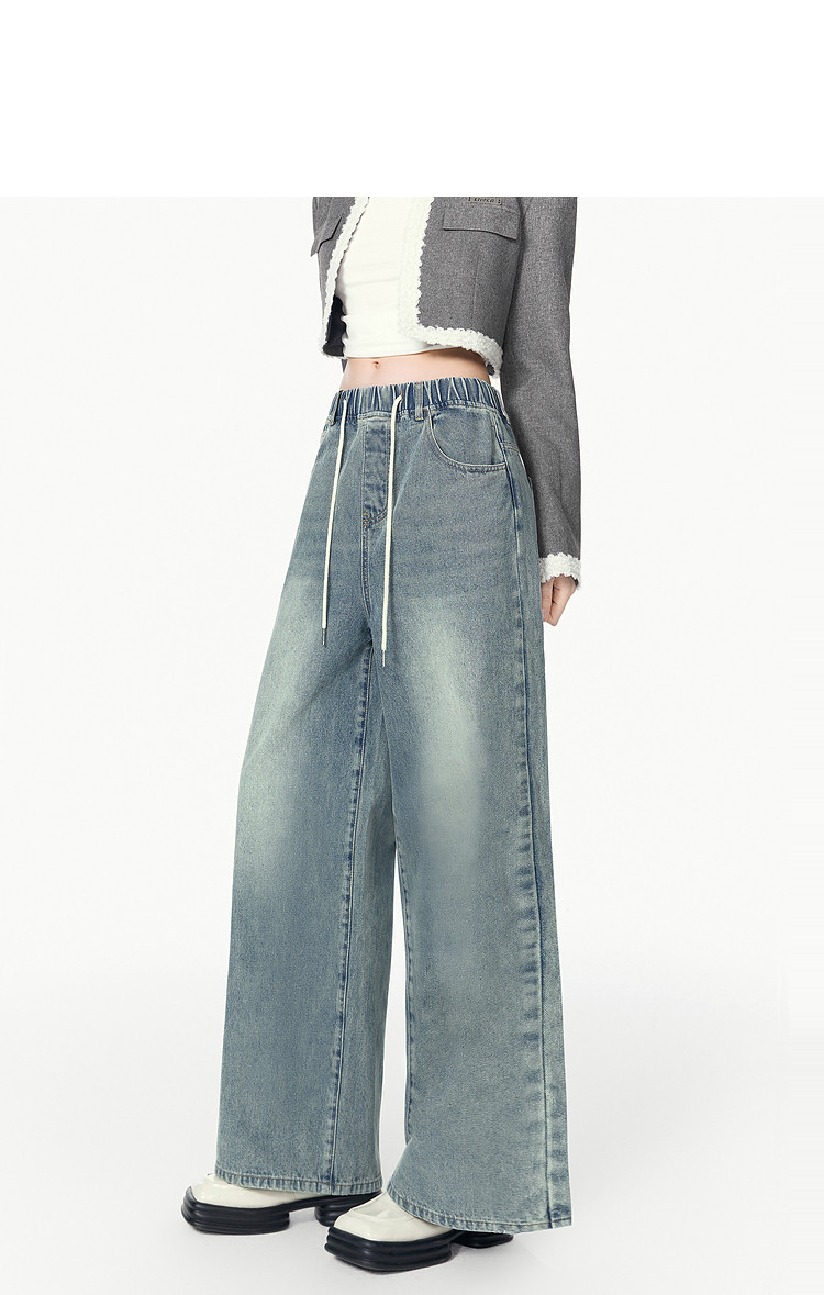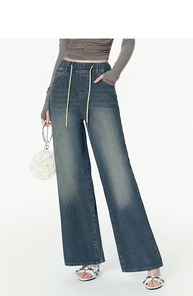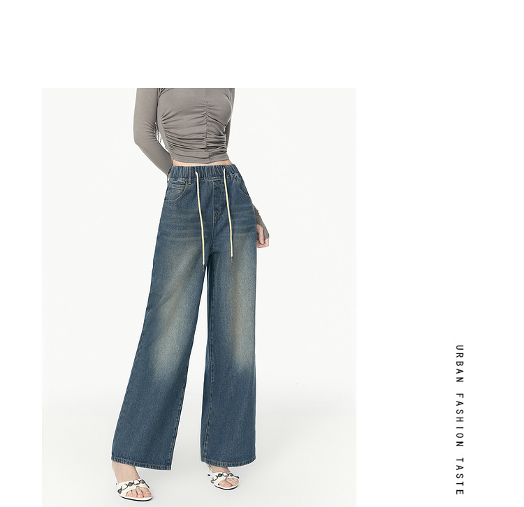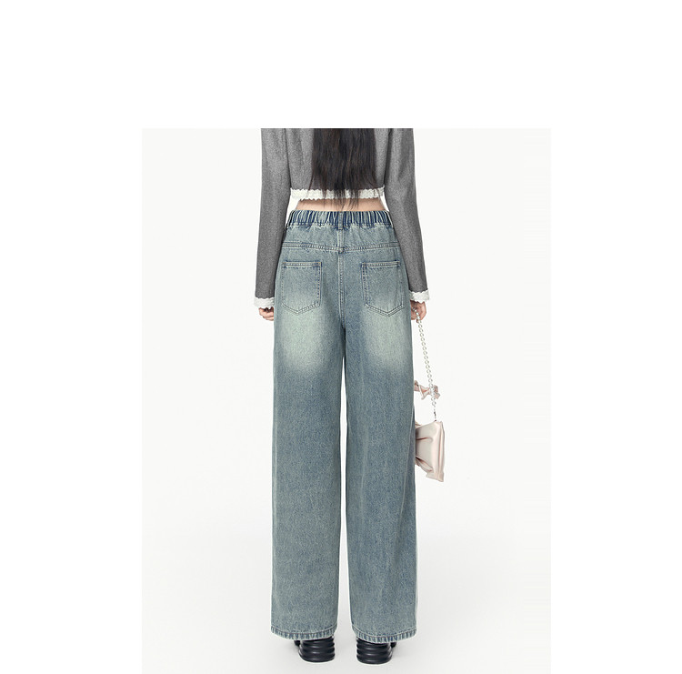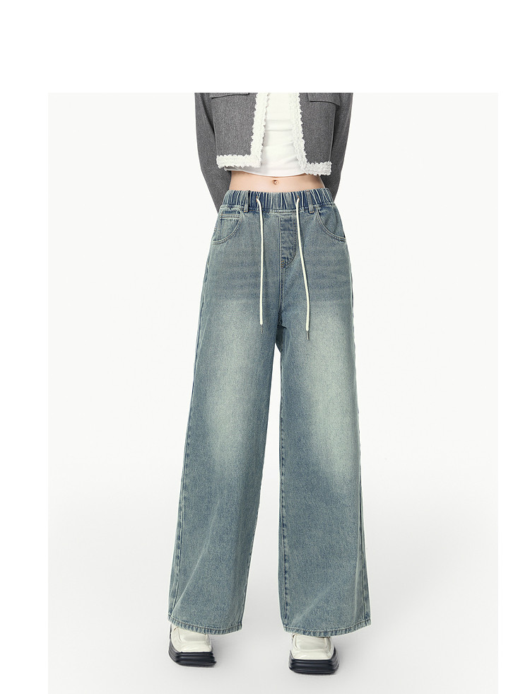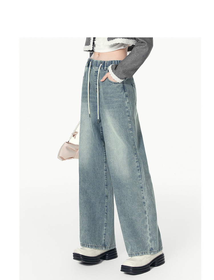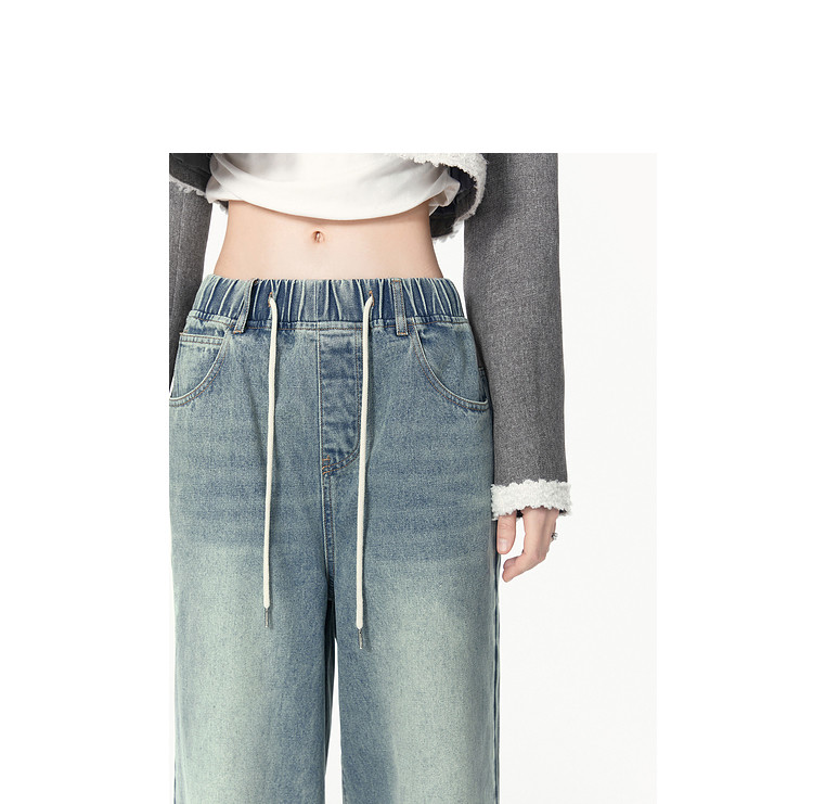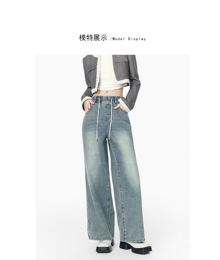 商品名称:春秋时尚休闲松紧带设计感牛仔裤女宽松直筒长裤 672660