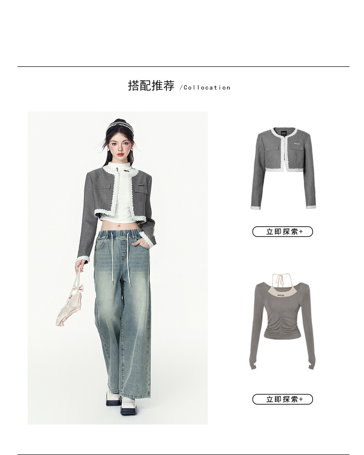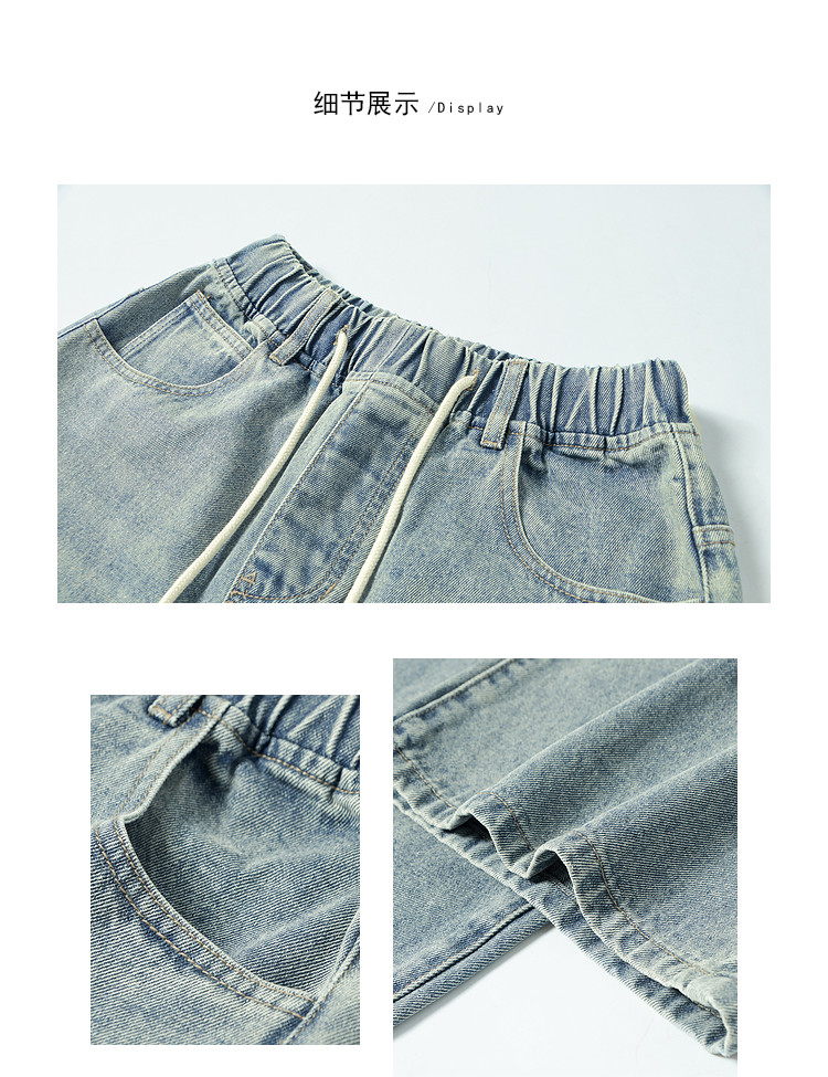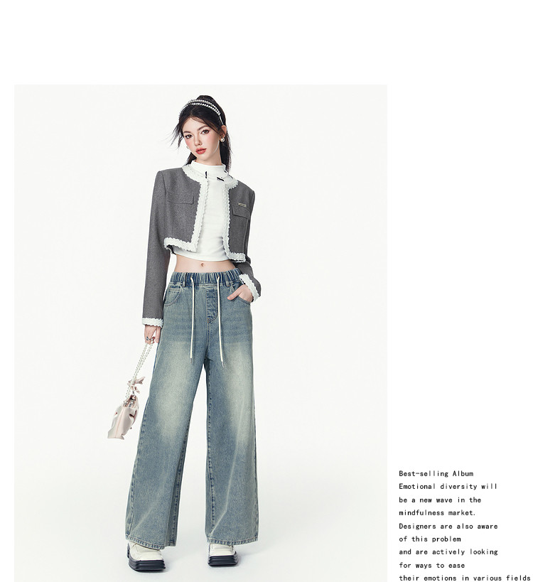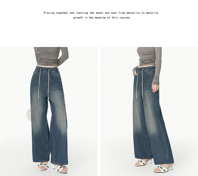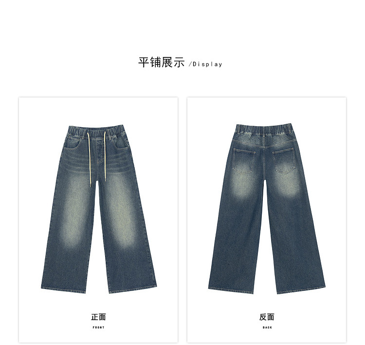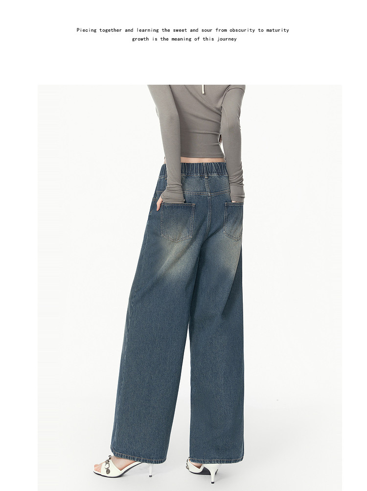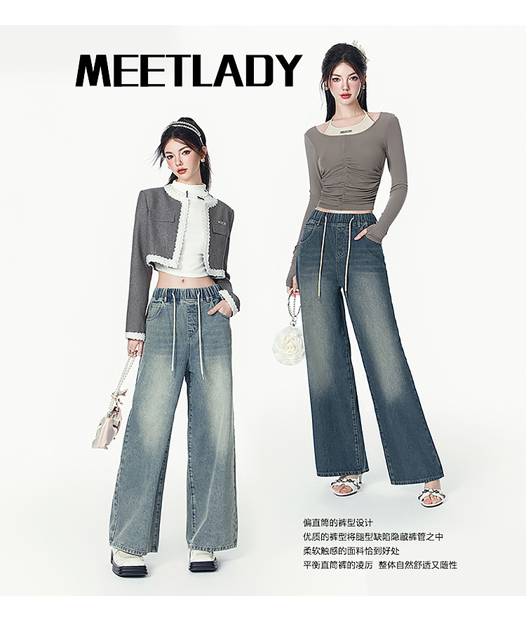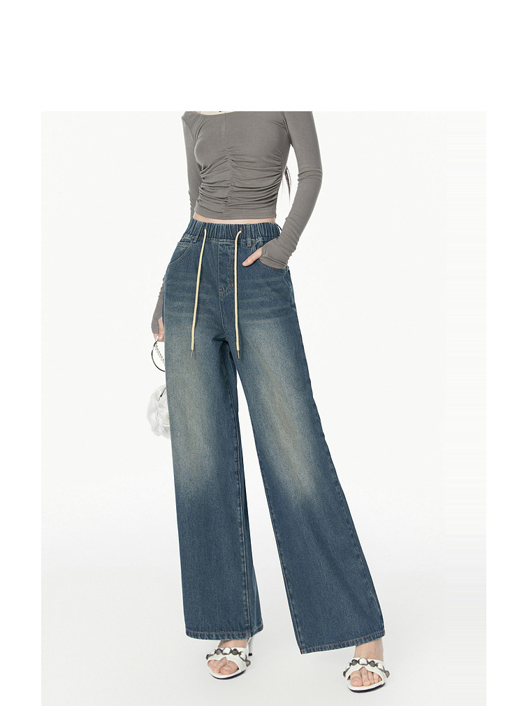 商品名称:春秋时尚休闲松紧带设计感牛仔裤女宽松直筒长裤 672660