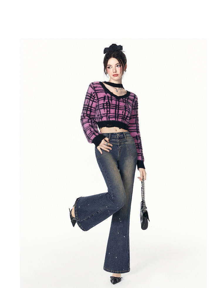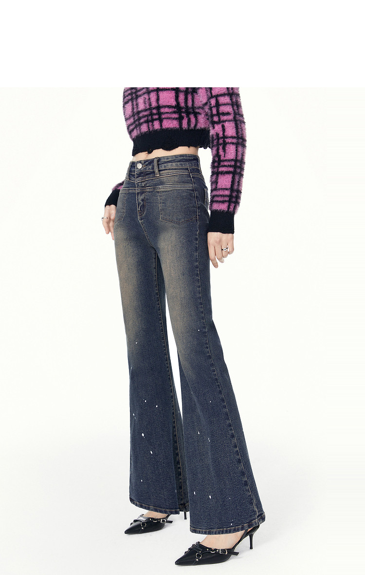 春秋复古时尚休闲百搭微喇牛仔裤女美式通勤长裤 262932