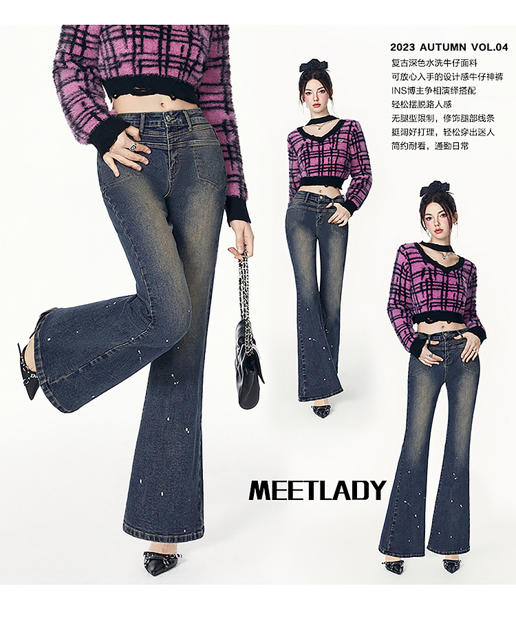 商品名称:春秋复古时尚休闲百搭微喇牛仔裤女美式通勤长裤 262932