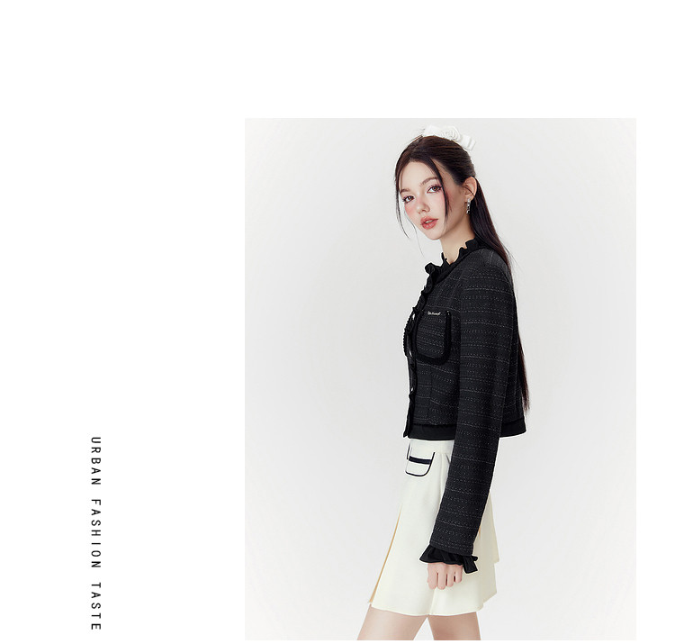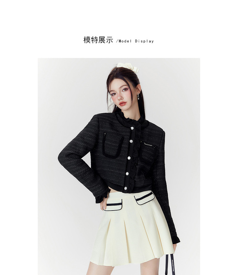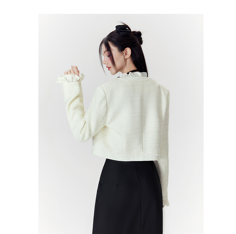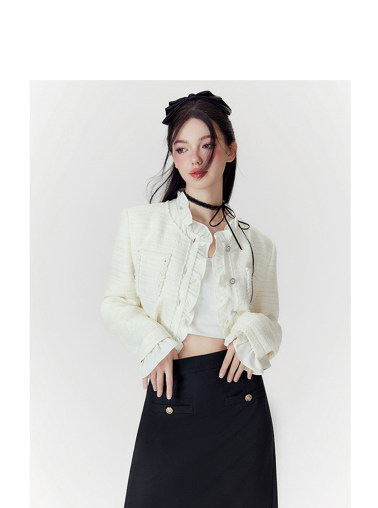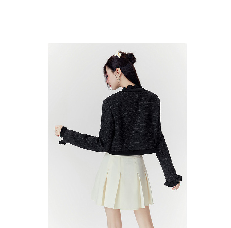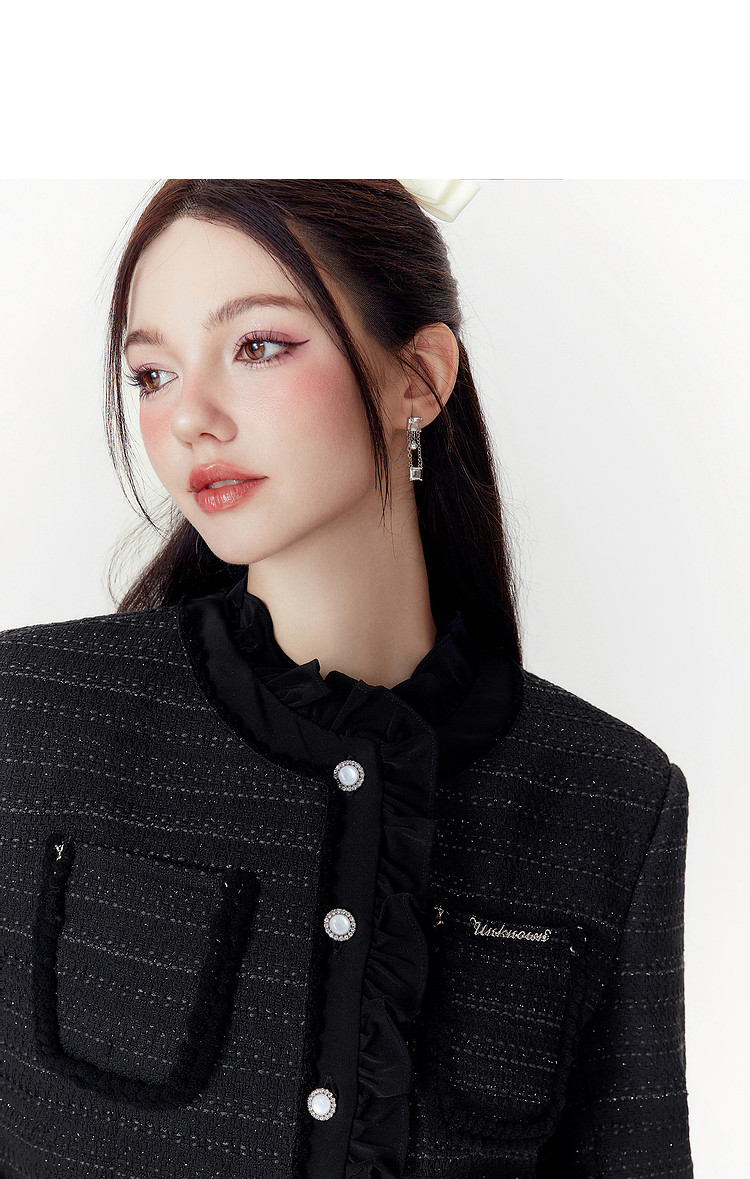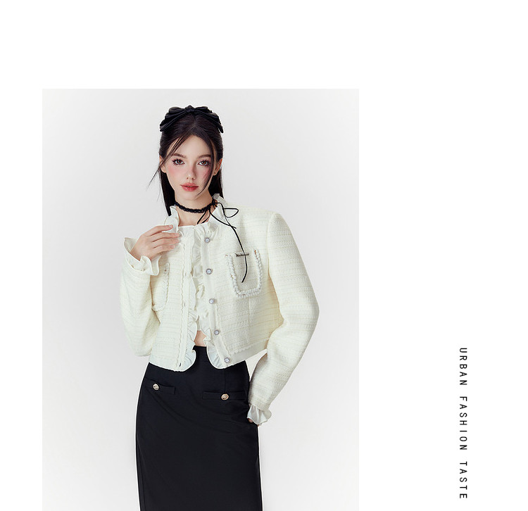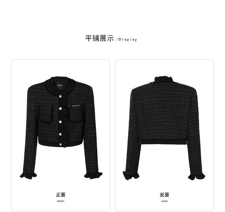 商品名称:春秋金属扣木耳边小香风外套女拼接设计感上衣 294932