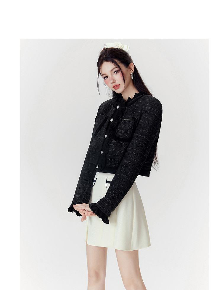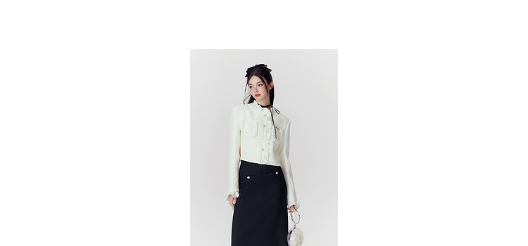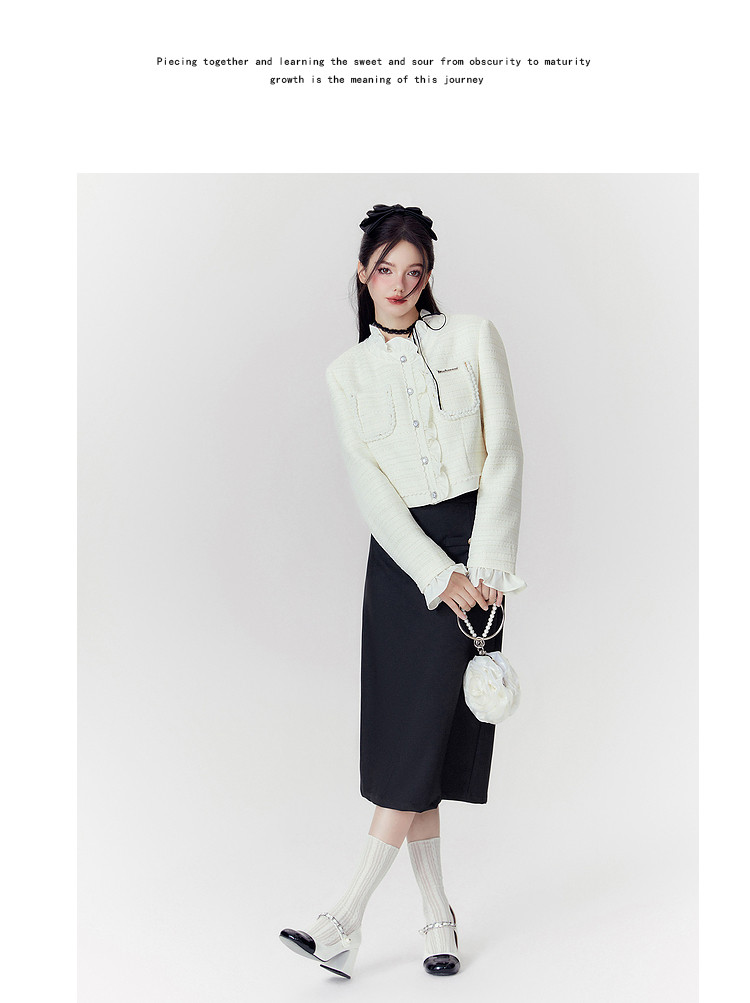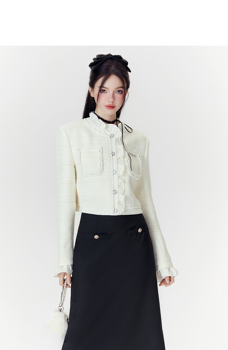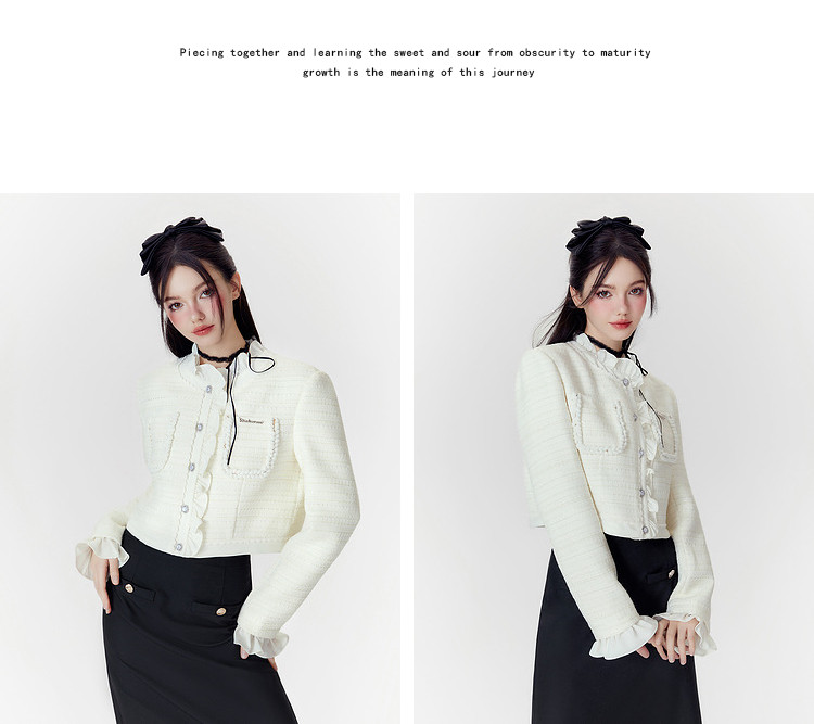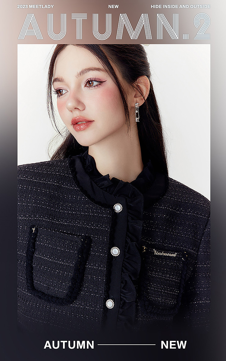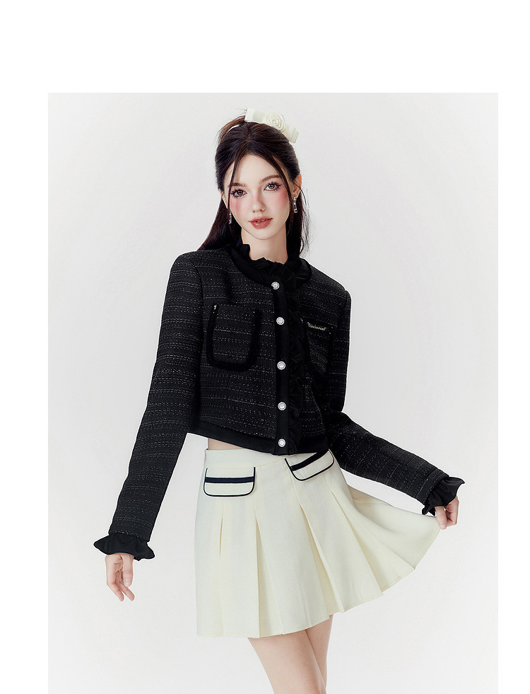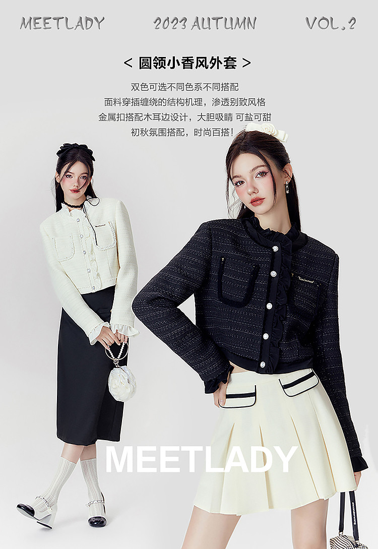 商品名称:春秋金属扣木耳边小香风外套女拼接设计感上衣 294932
