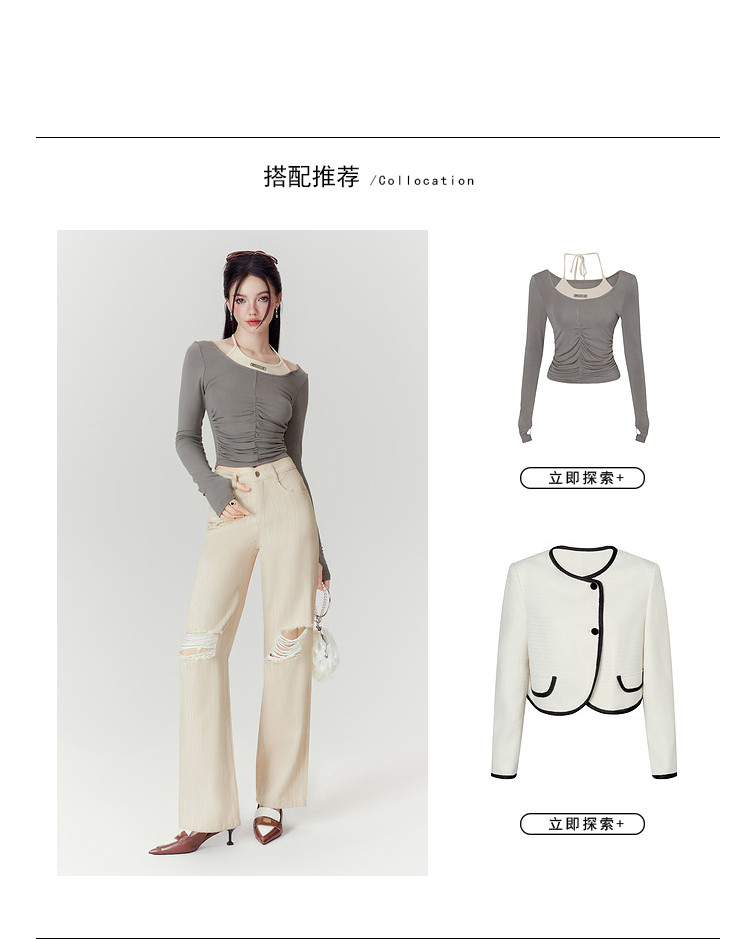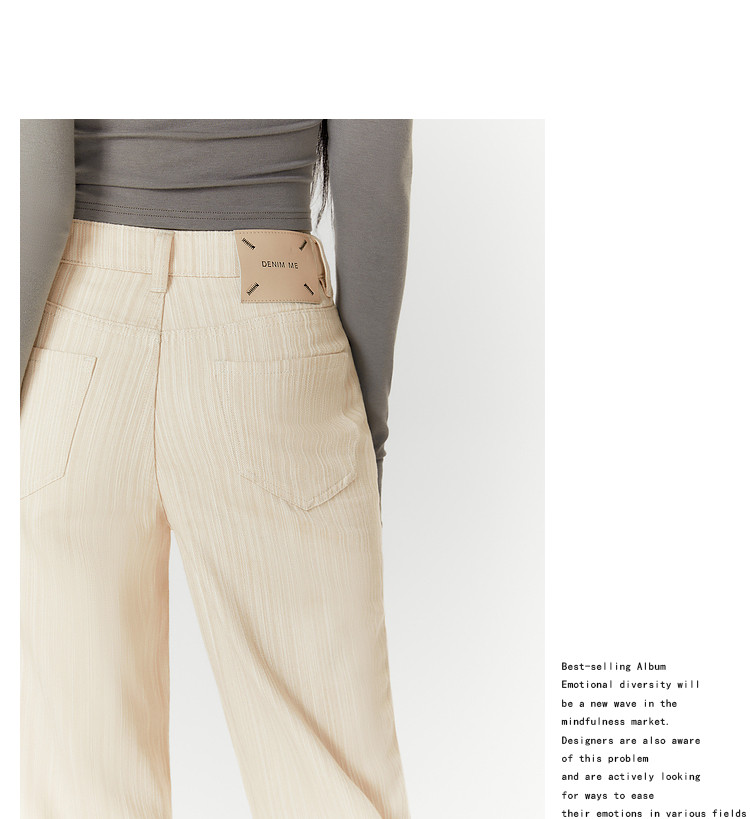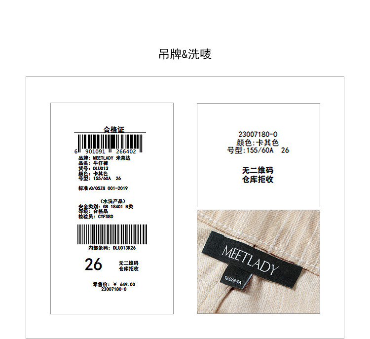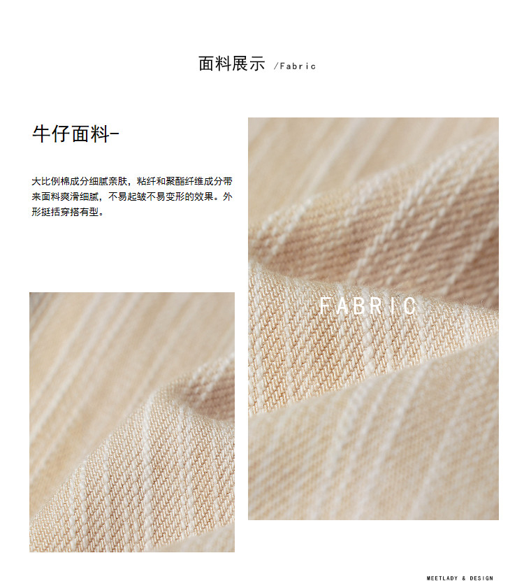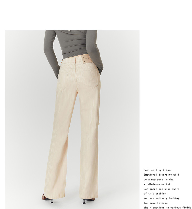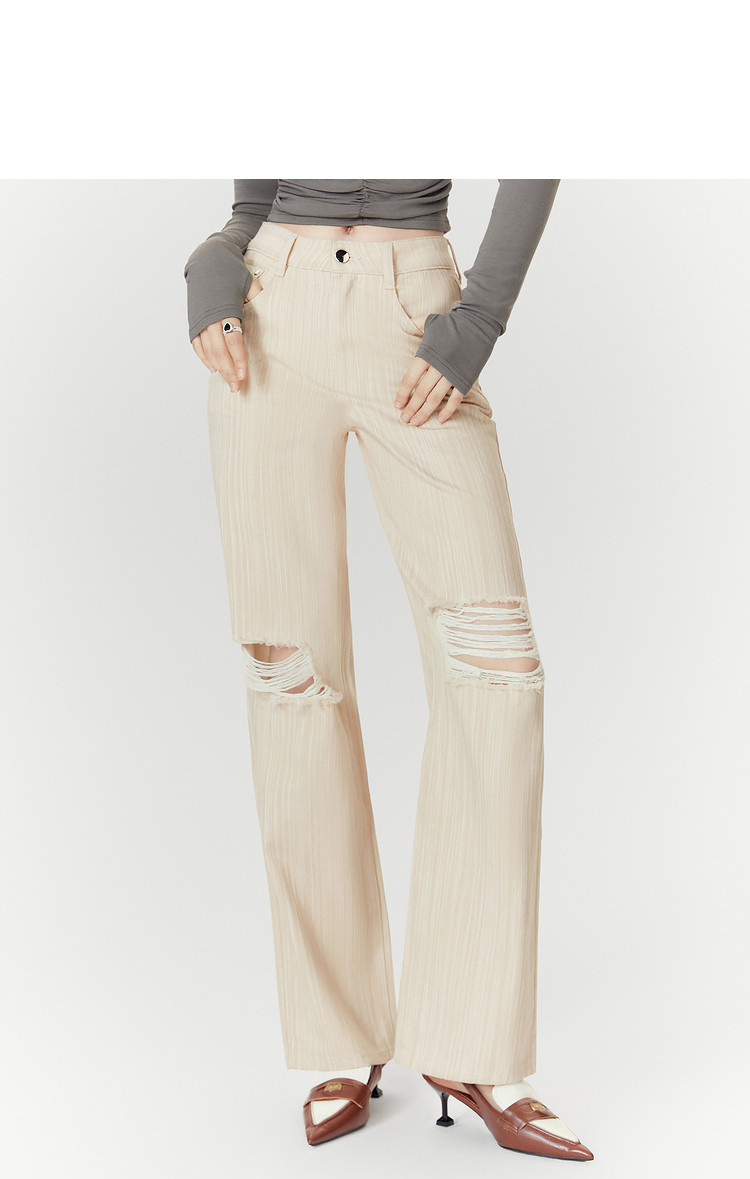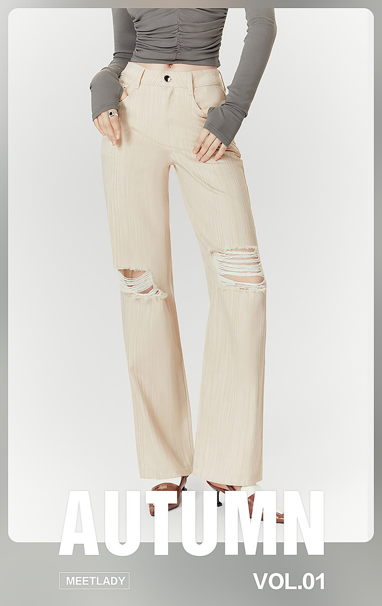 商品名称:春秋高腰显瘦条纹破洞卡其色牛仔裤女百搭直筒裤 869140