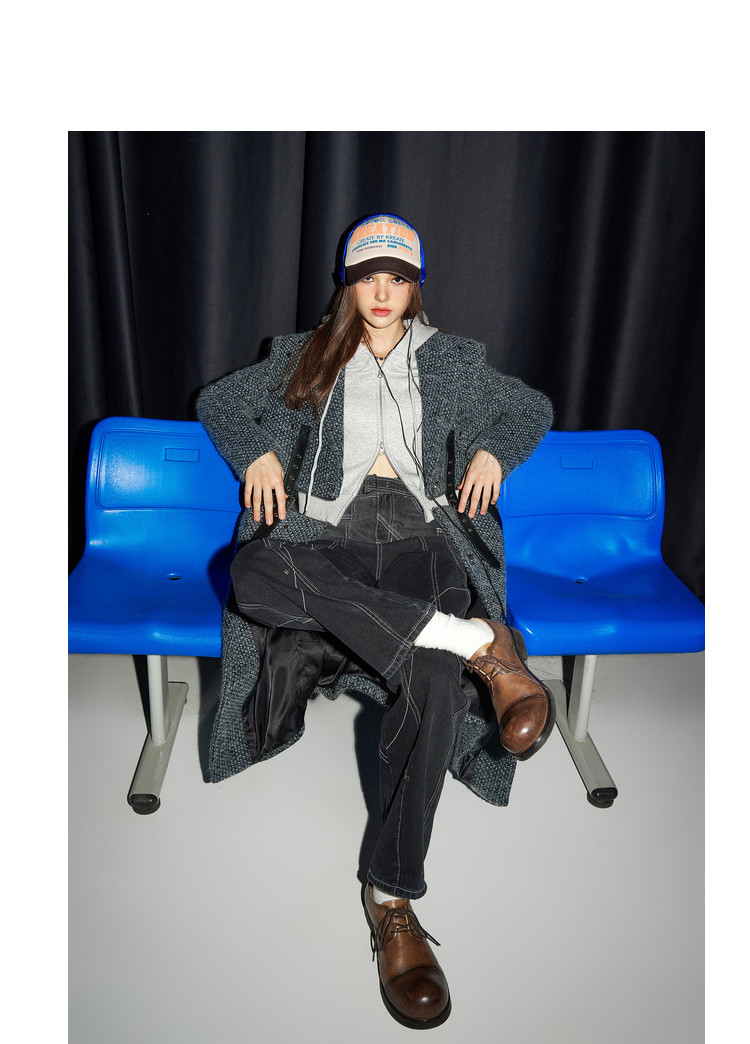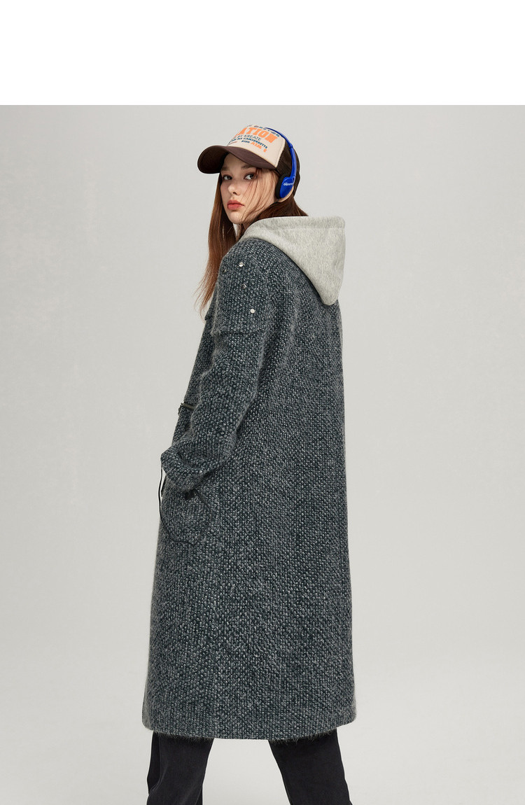 毛呢大衣外套女百搭拼接高级感今年流行长款上衣 381908