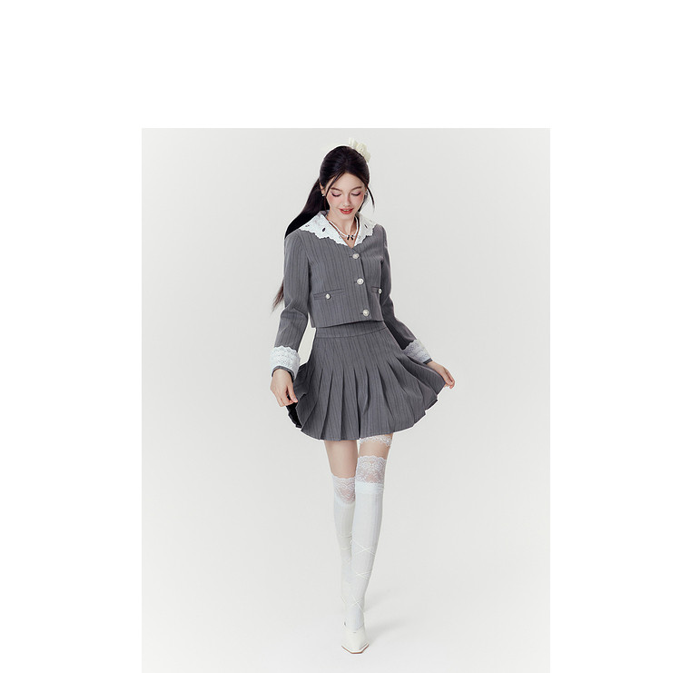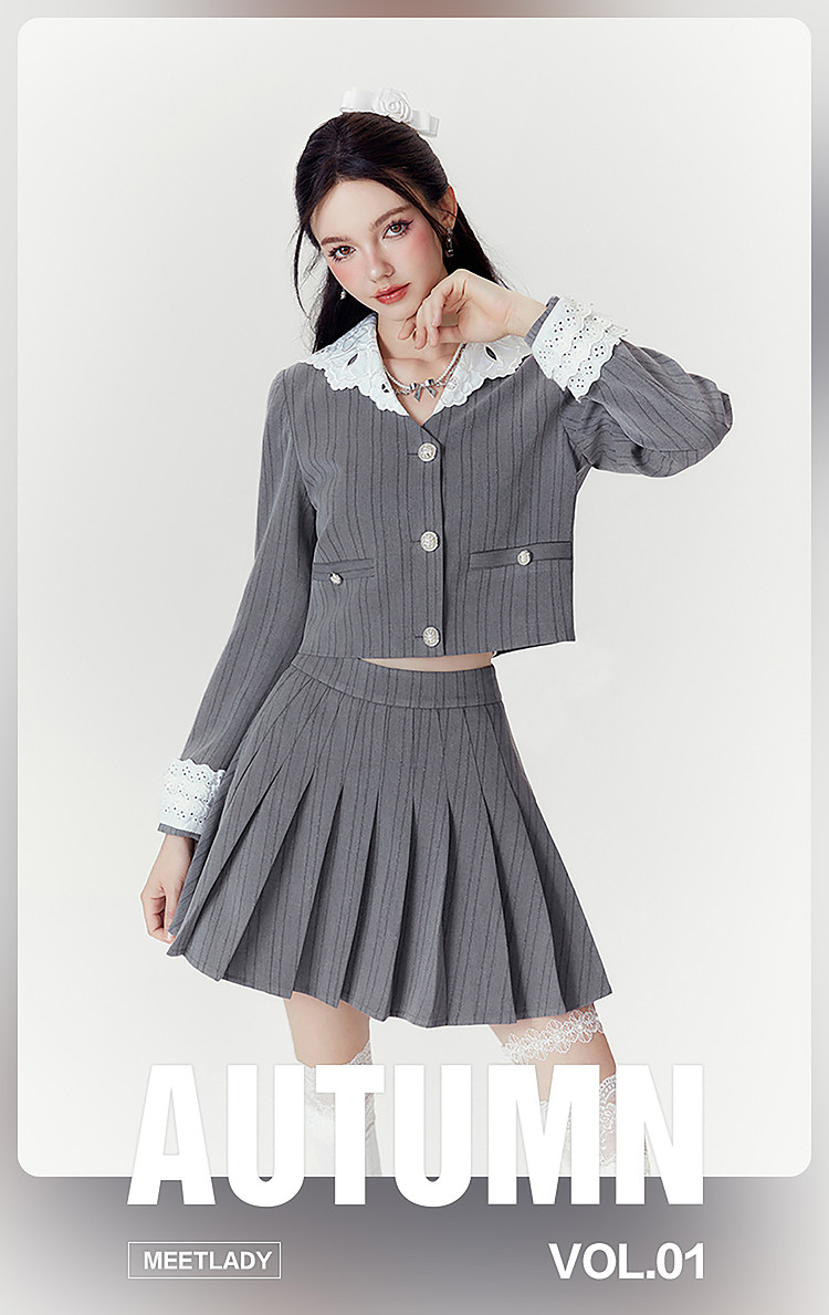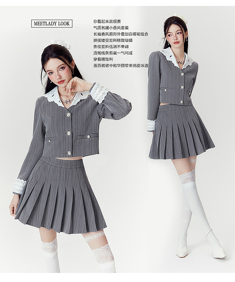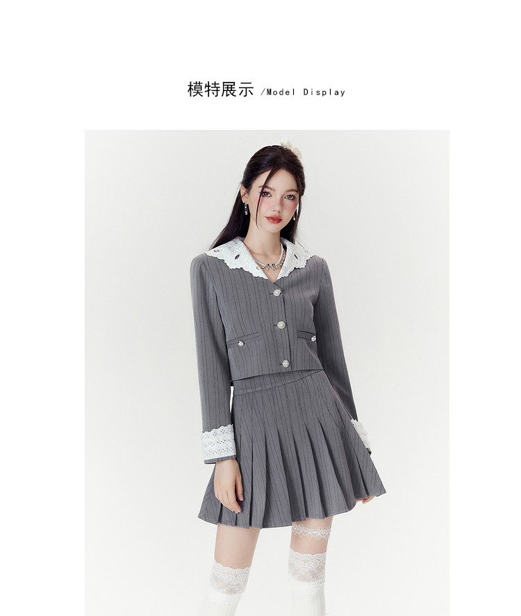 2024秋季【两件套】千金风气质甜美拼接西装外套短裙套装裙女 063252