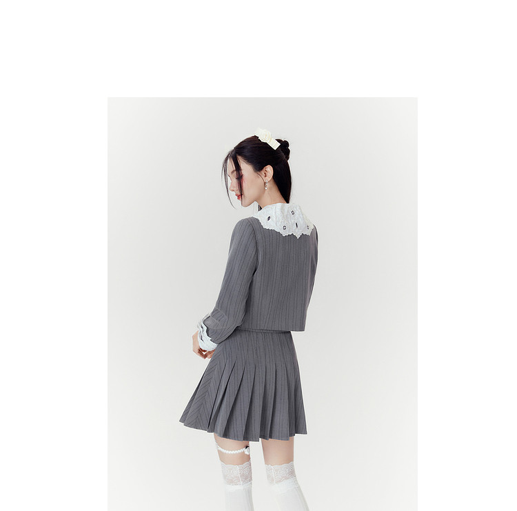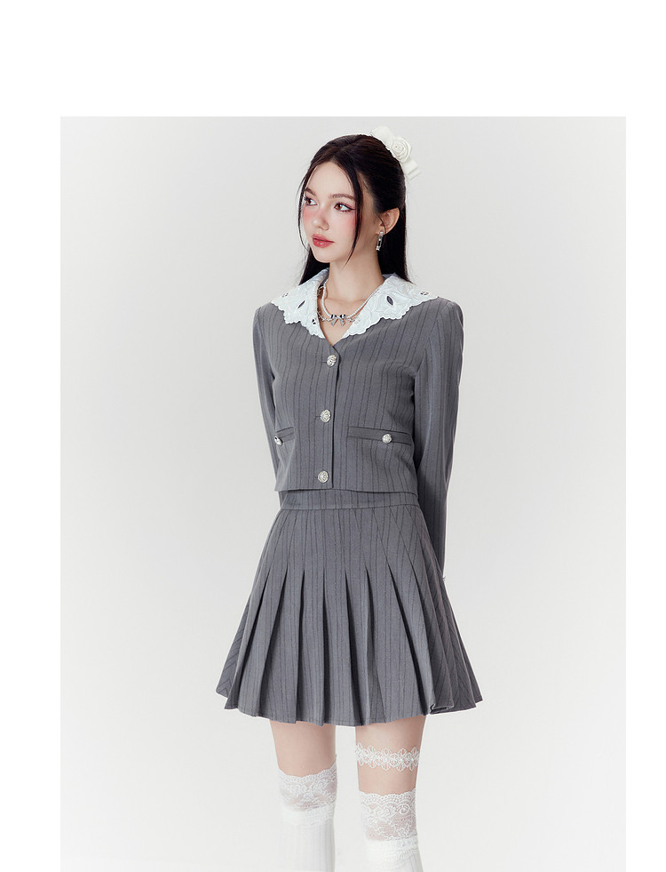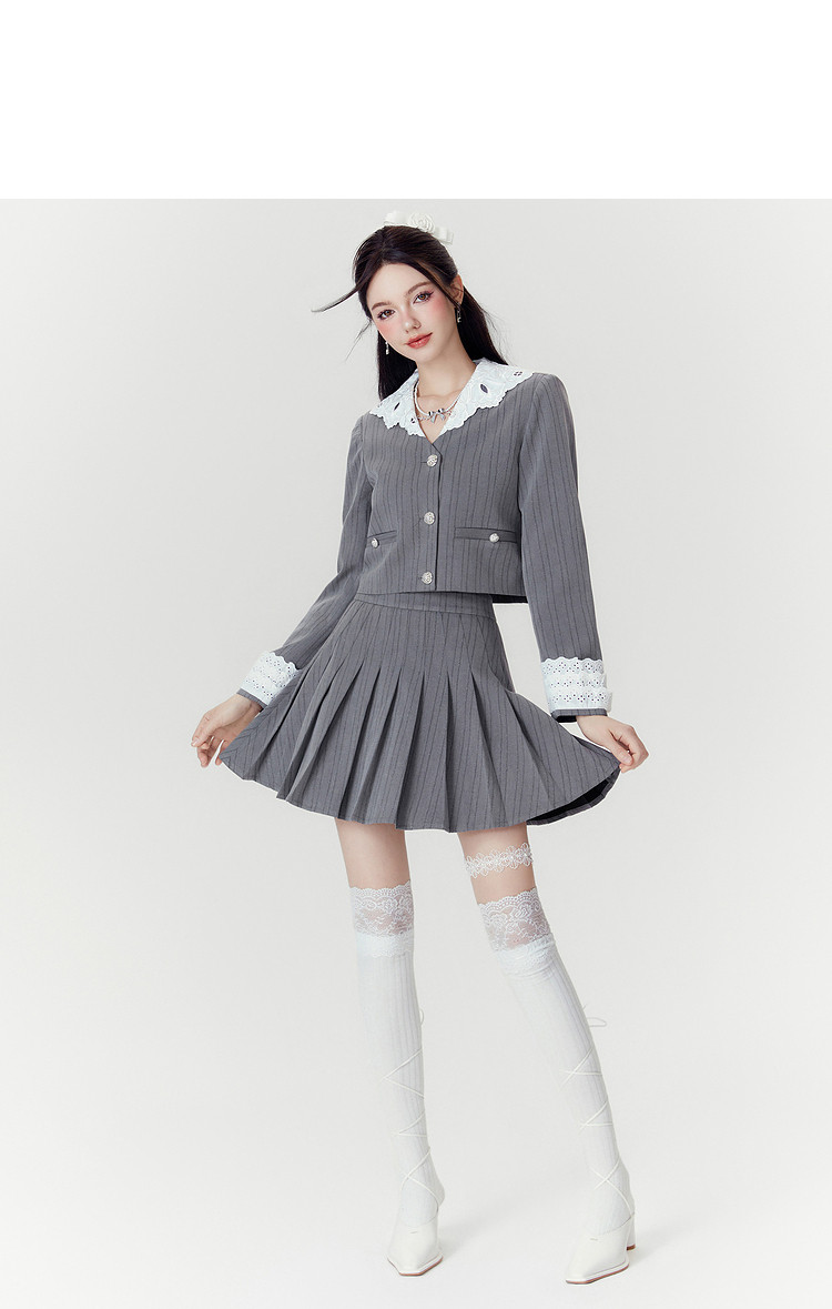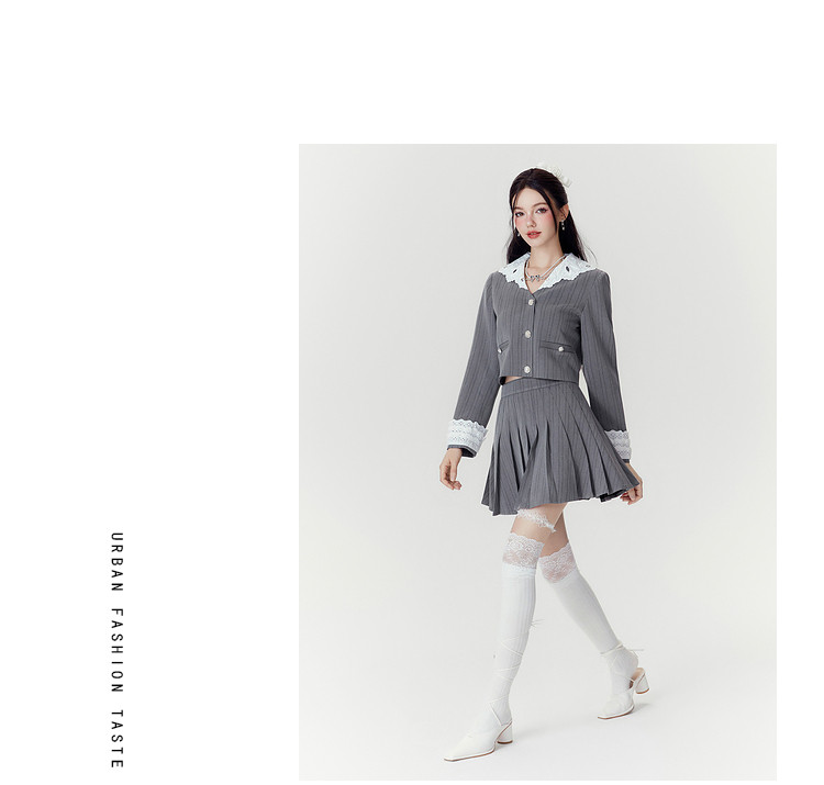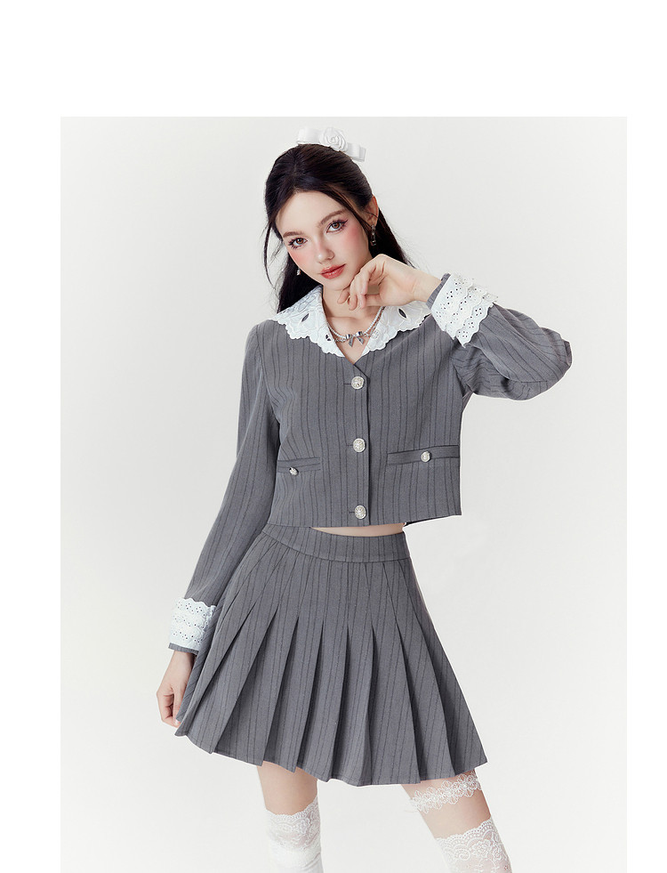 2024秋季【两件套】千金风气质甜美拼接西装外套短裙套装裙女 063252