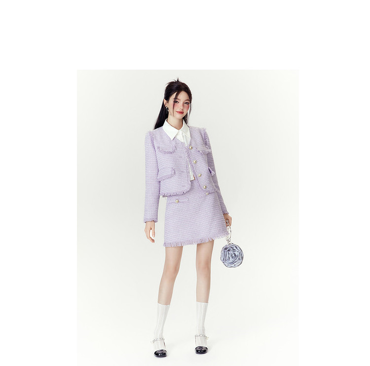 【两件套】2024秋季千金小香风优雅气质外套+短裙高级感套装 286740