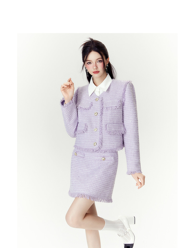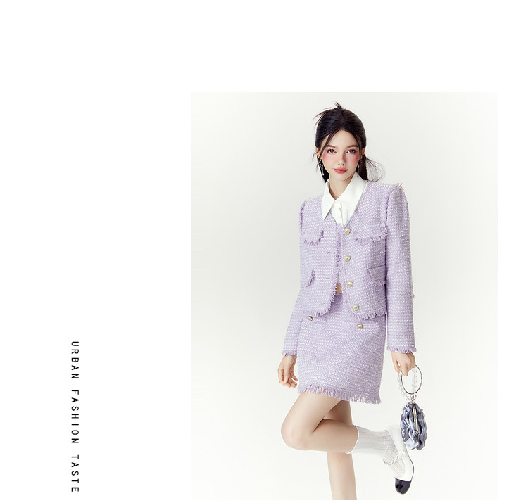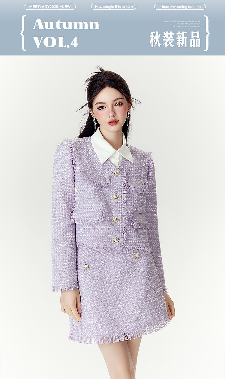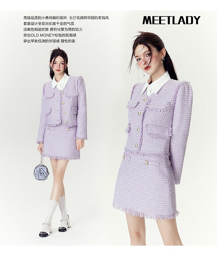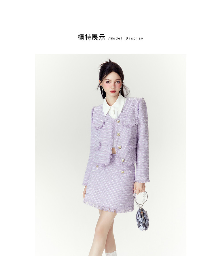 商品名称:【两件套】2024秋季千金小香风优雅气质外套+短裙高级感套装 286740