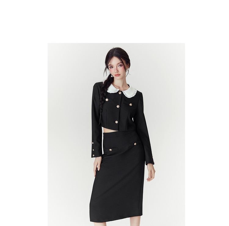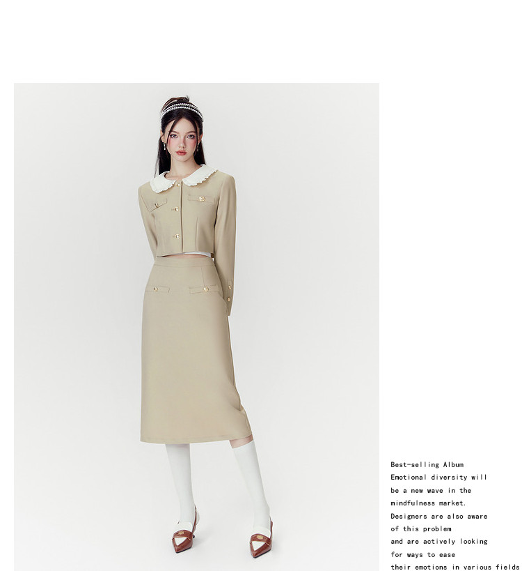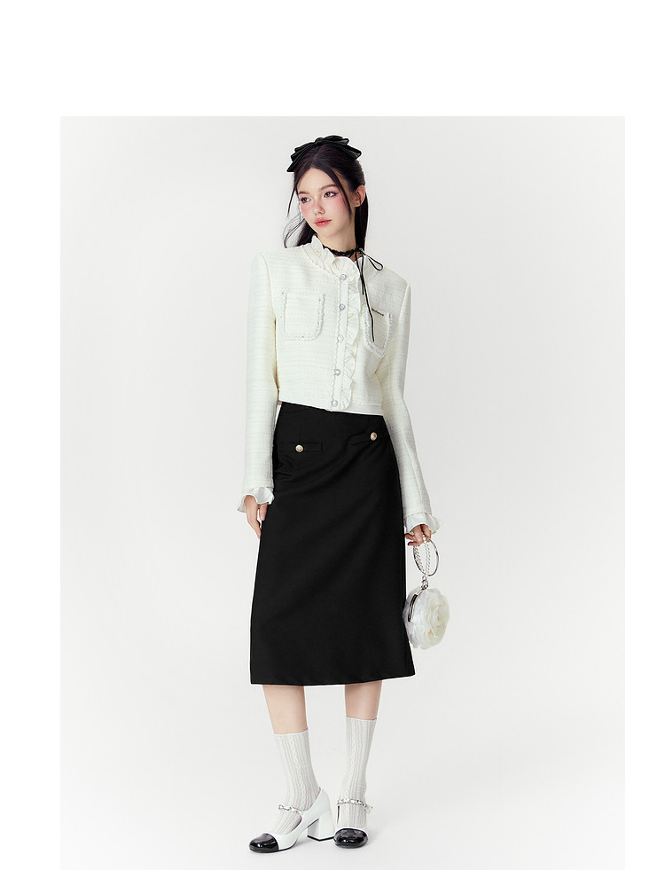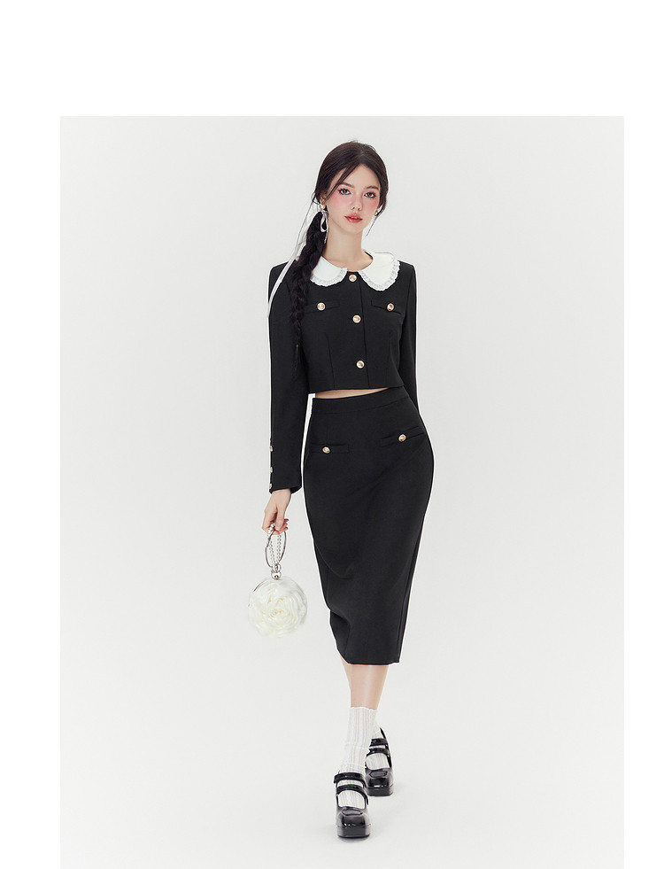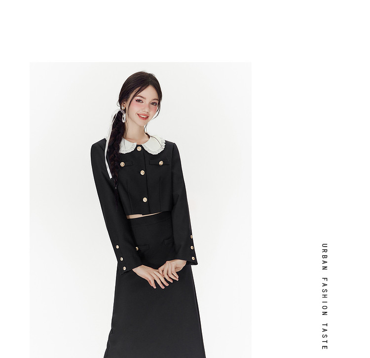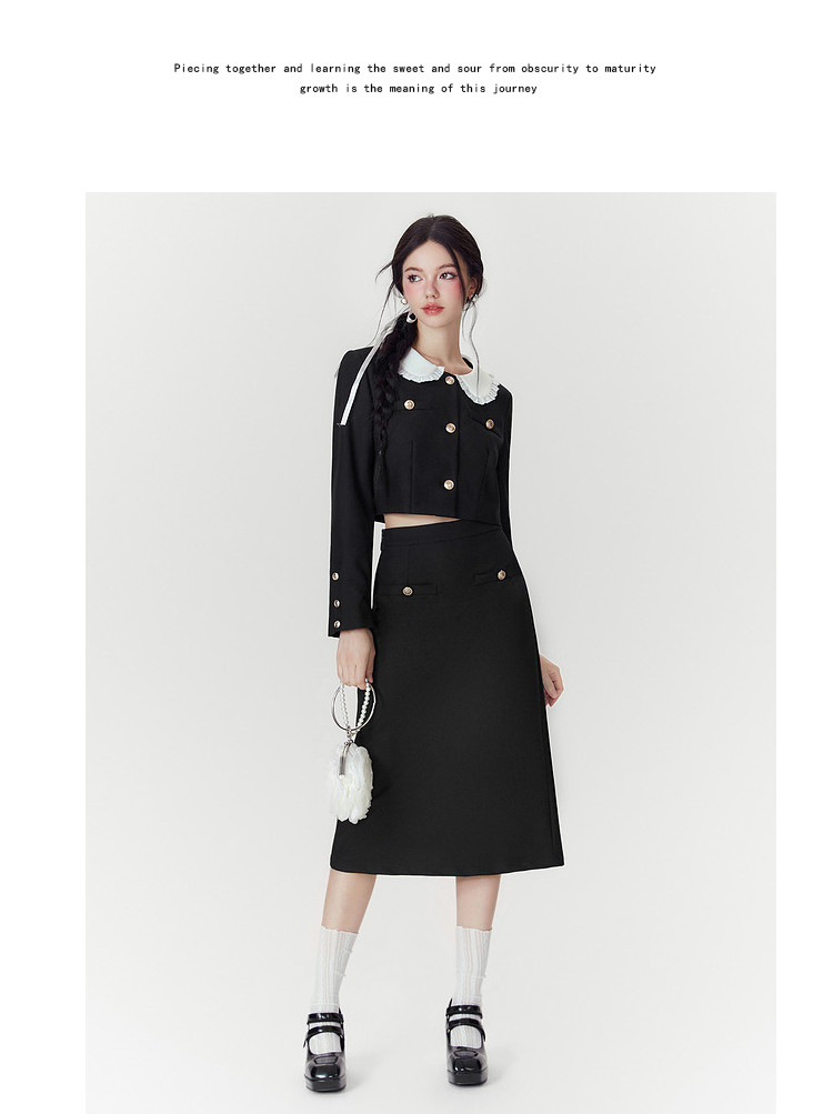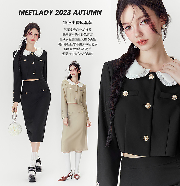 商品名称:【秋装两件套】春秋小香风设计感甜美气质半裙套装女通勤外套上衣 046868