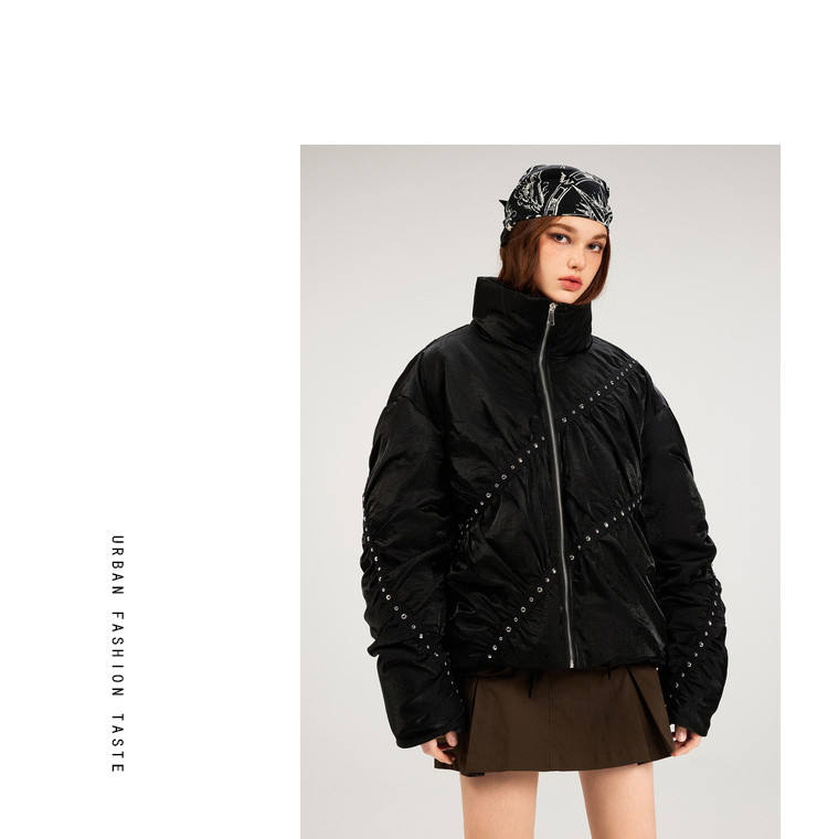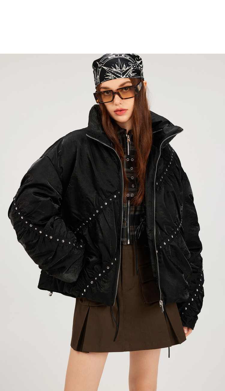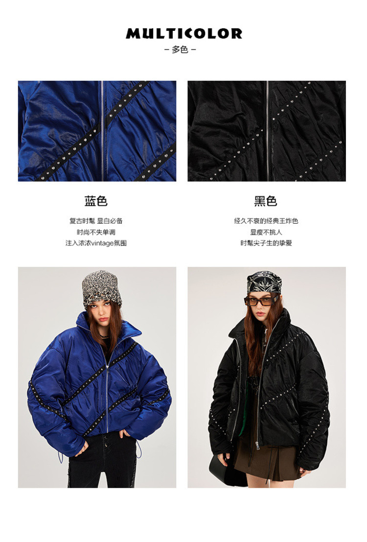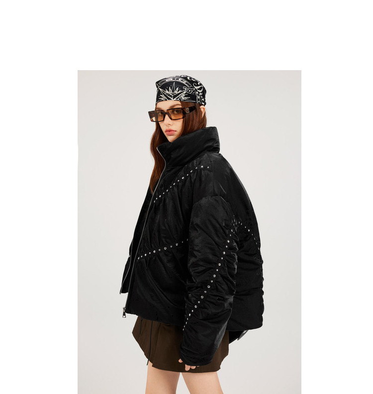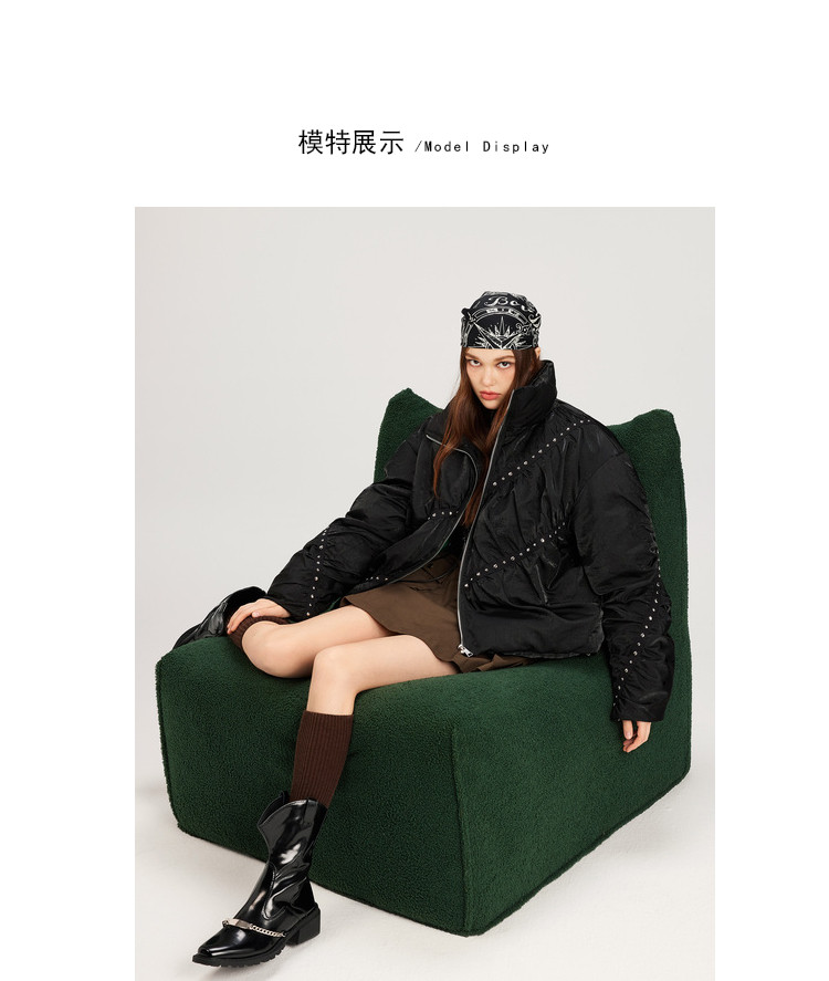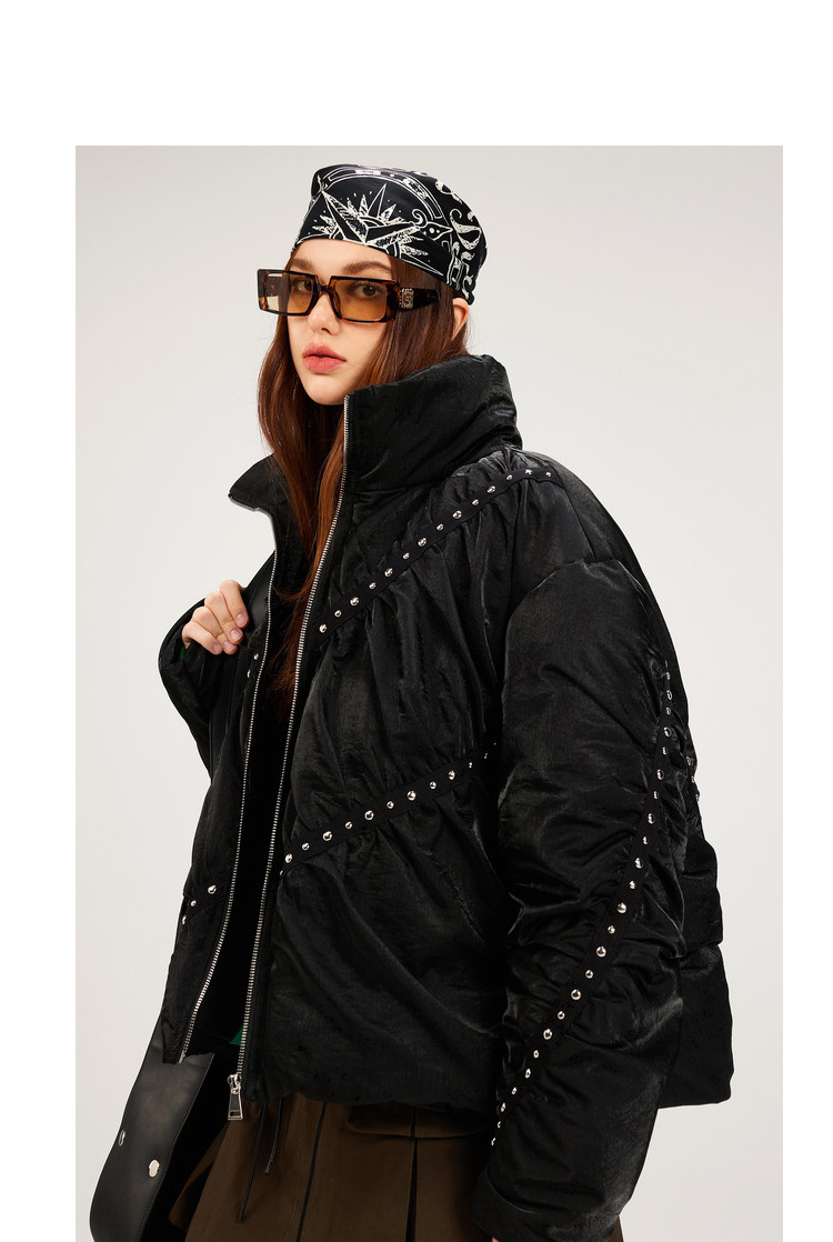 商品名称:【保暖立领】冬季复古铆钉短款羽绒服解构设计感小众外套 573972