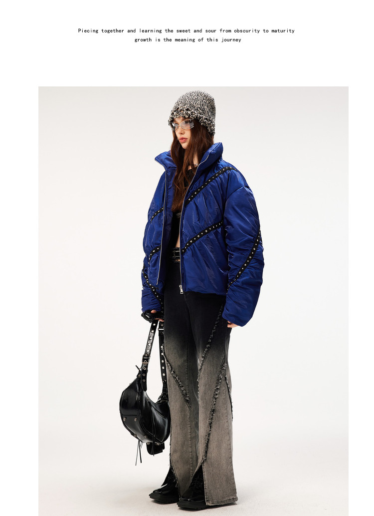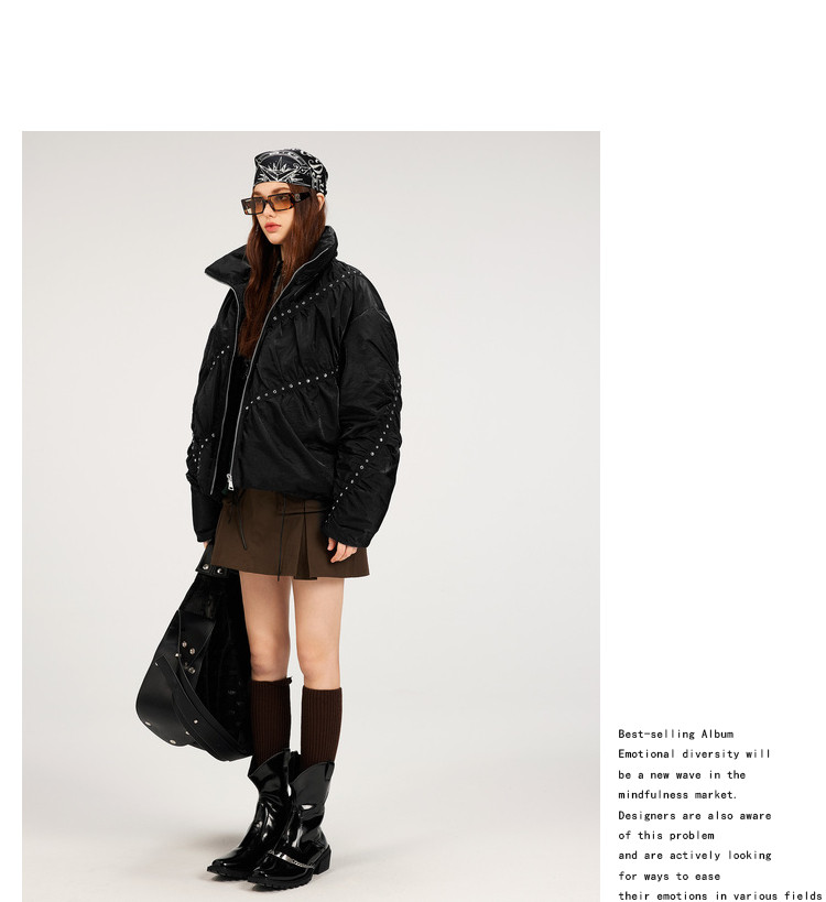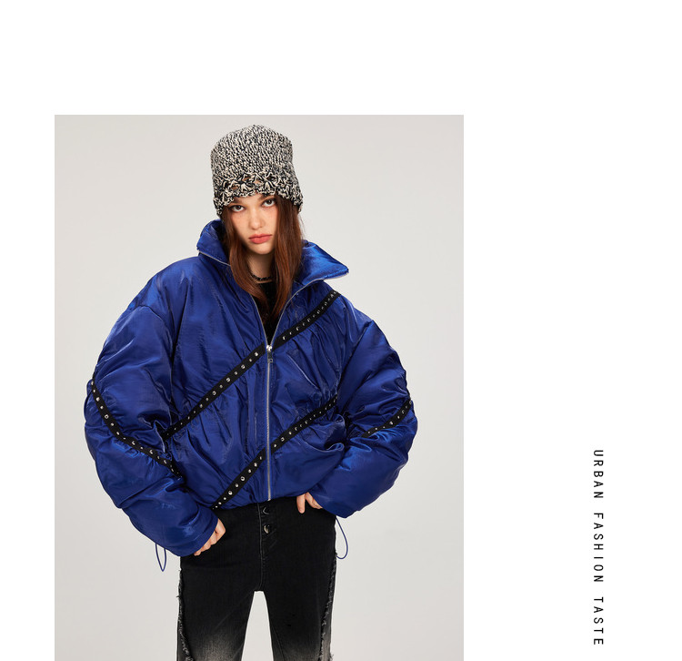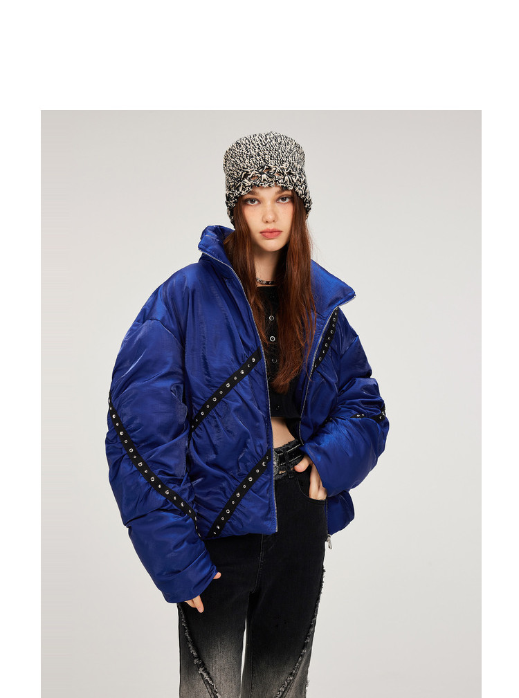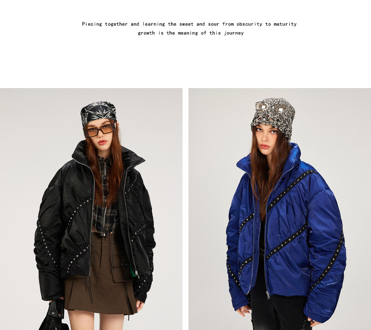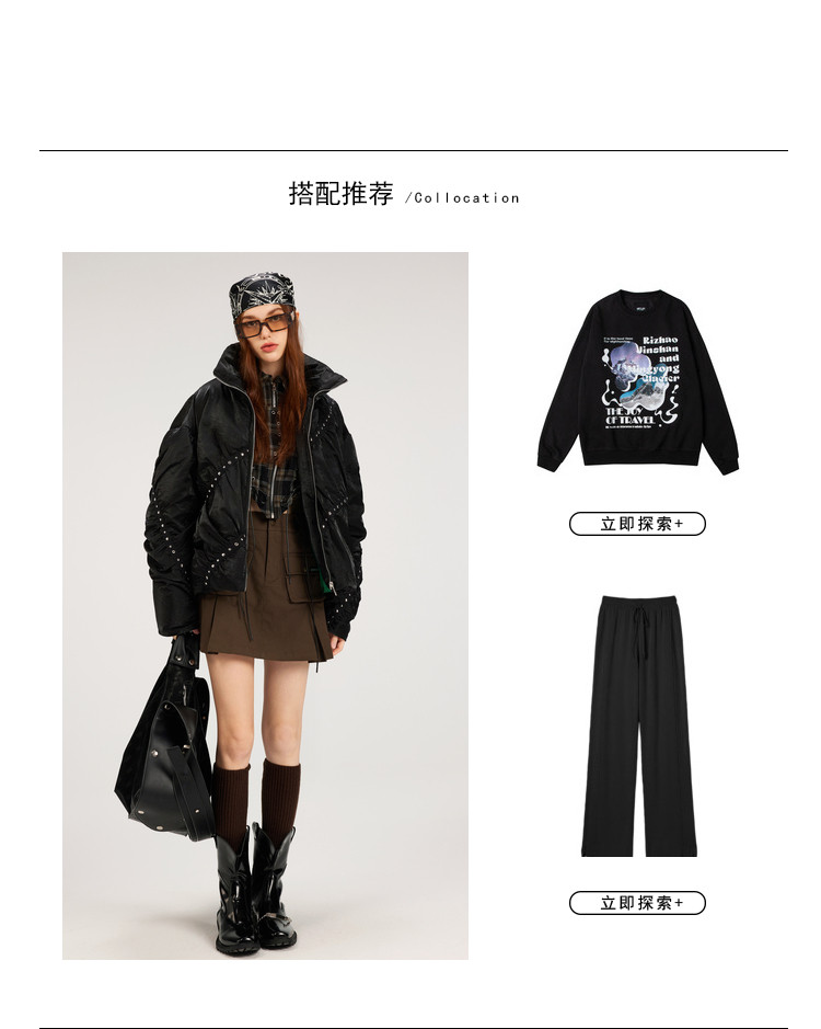 商品名称:【保暖立领】冬季复古铆钉短款羽绒服解构设计感小众外套 573972