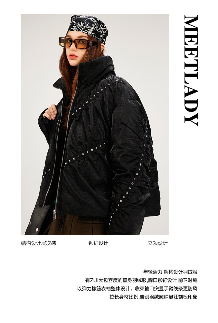 【保暖立领】冬季复古铆钉短款羽绒服解构设计感小众外套 573972