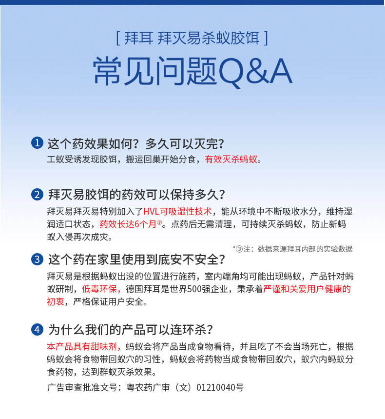 商品名称:德国拜耳蚂蚁药全窝端家用室内厨房神器无蚁灭蚁毒饵除杀红小蚂蚁