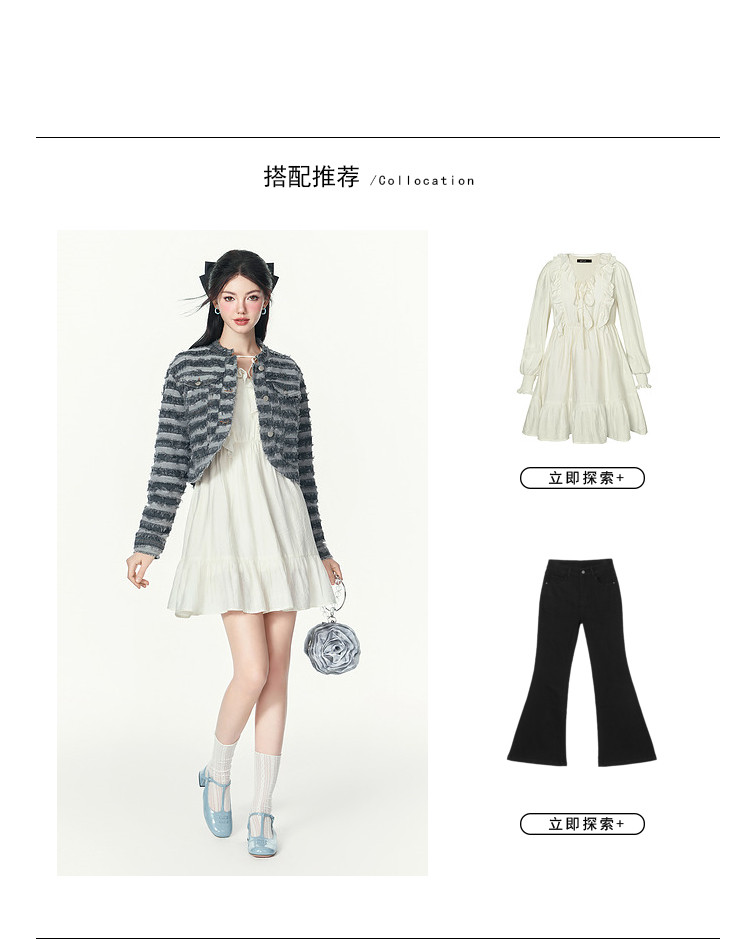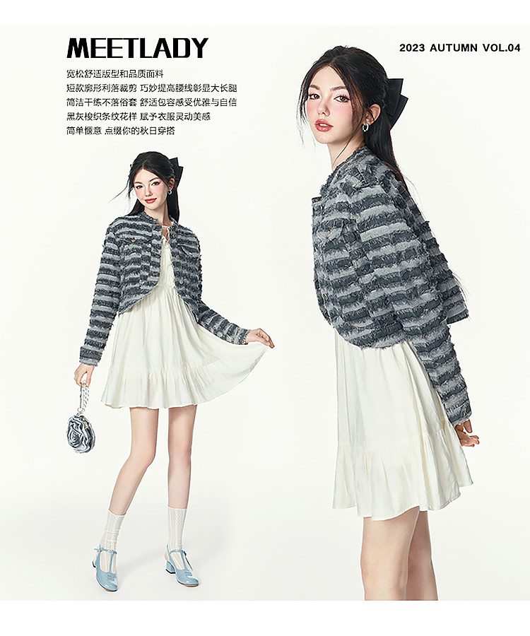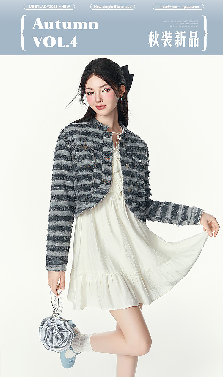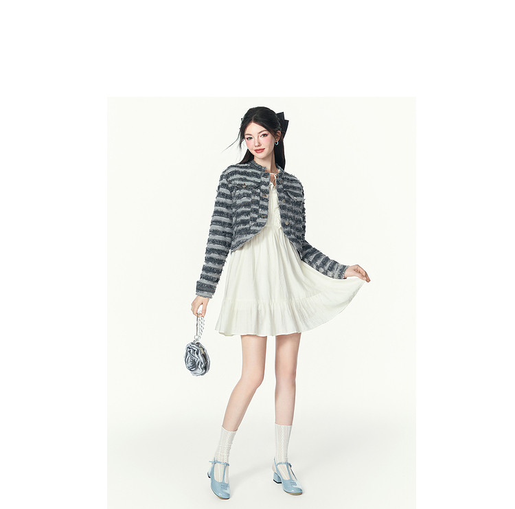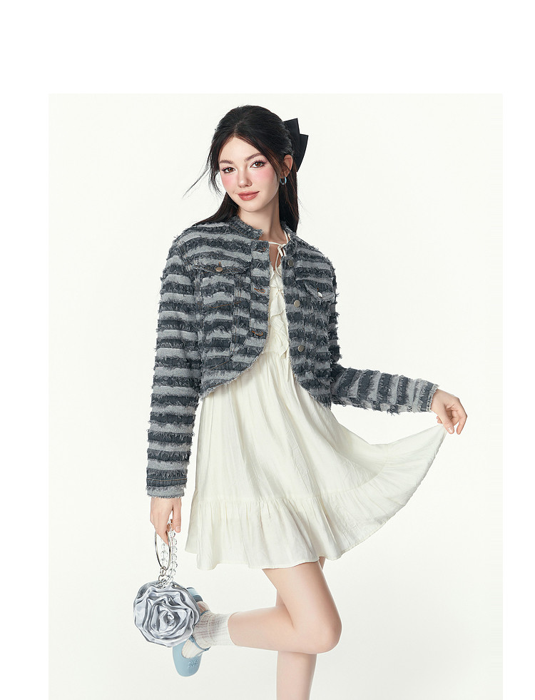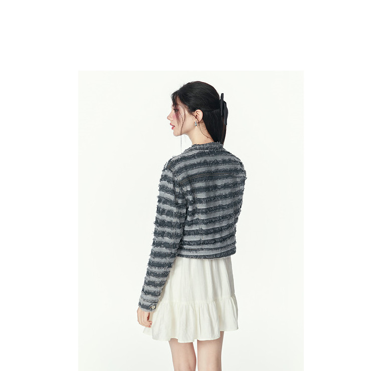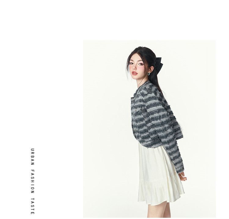 商品名称:春秋条纹撞色宽松显瘦休闲短外套女小众设计感 270356