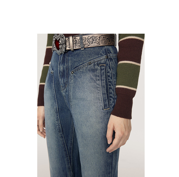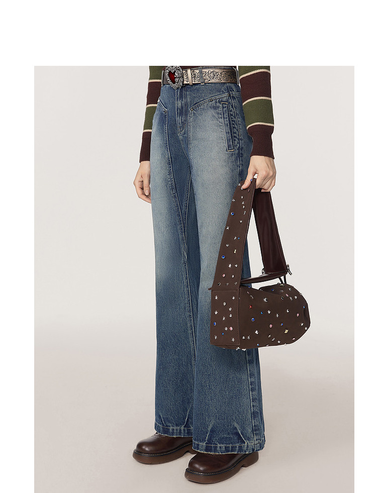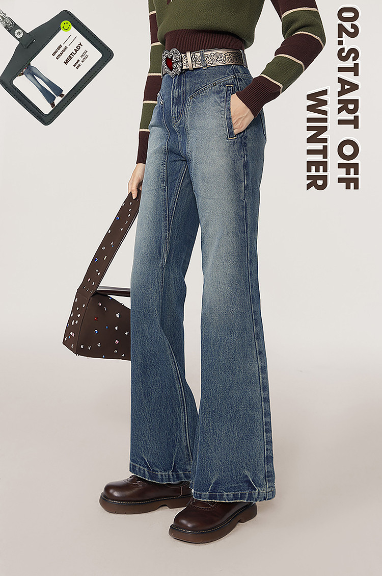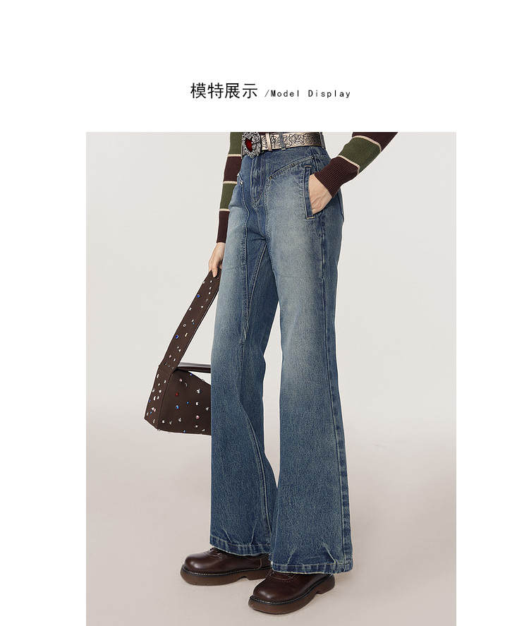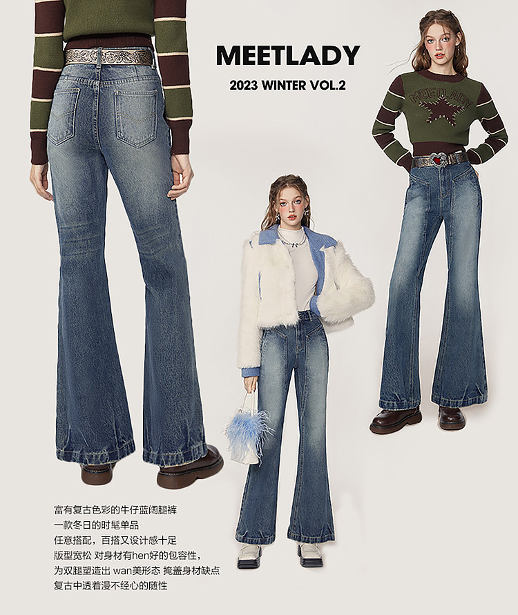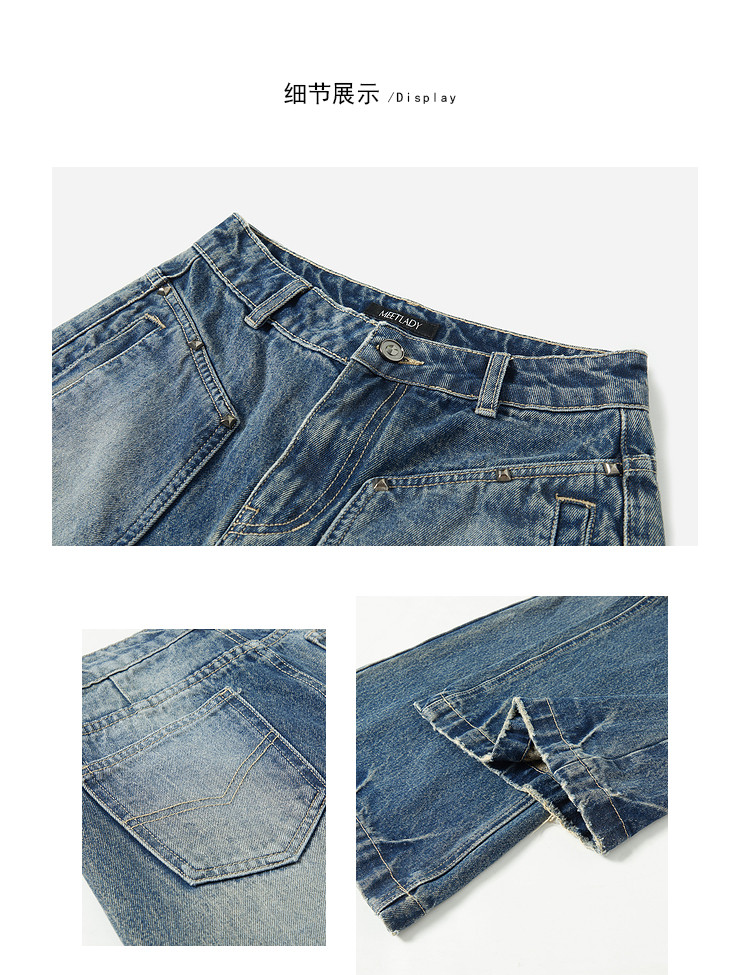 商品名称:春秋美式高街复古阔腿牛仔裤女梨形身材宽松直筒裤子 369620