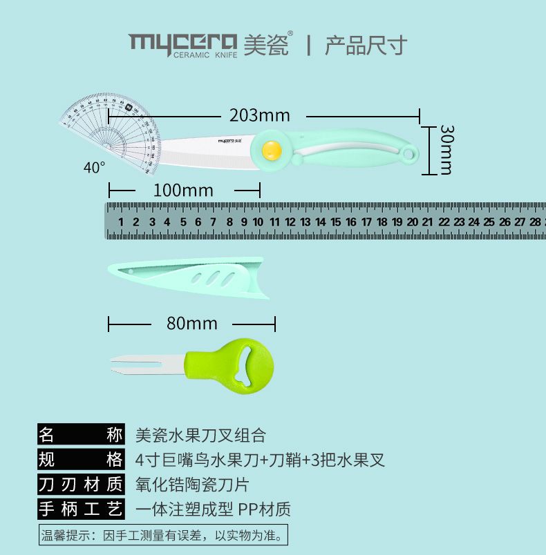 商品名称:美瓷 mycera 陶瓷刀陶瓷水果刀陶瓷水果叉四件套装JZ04