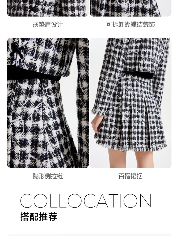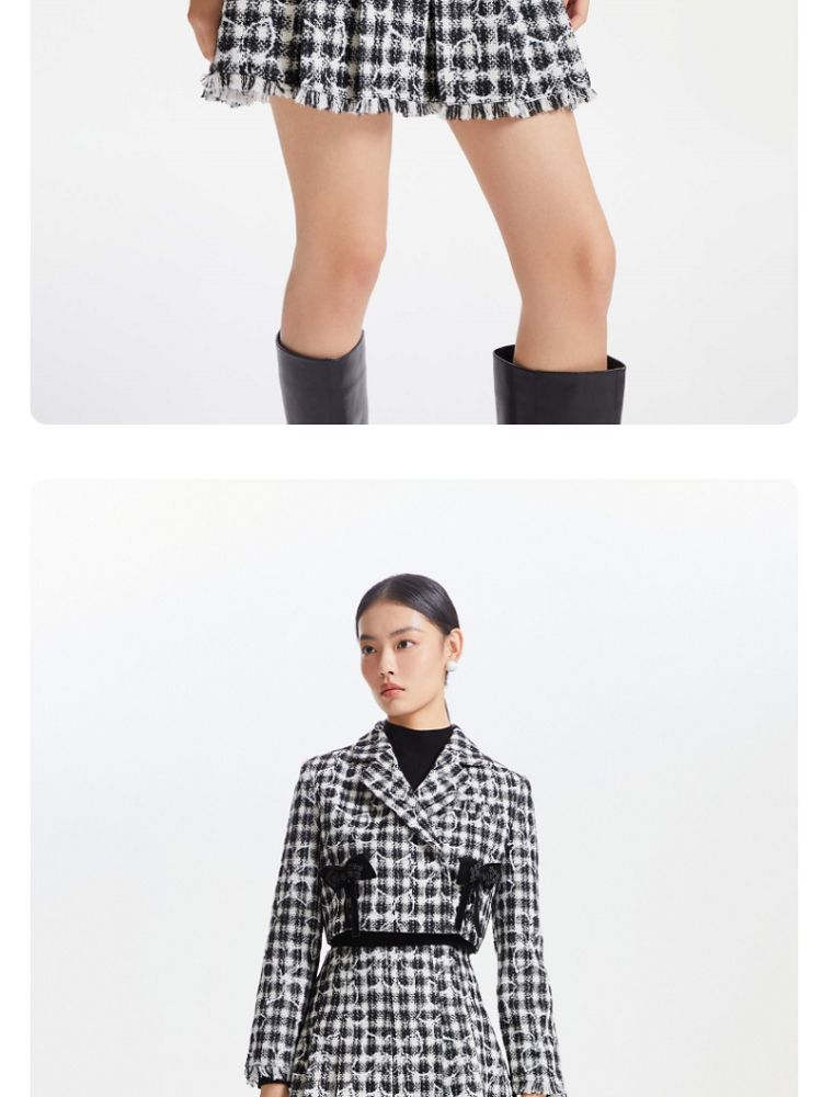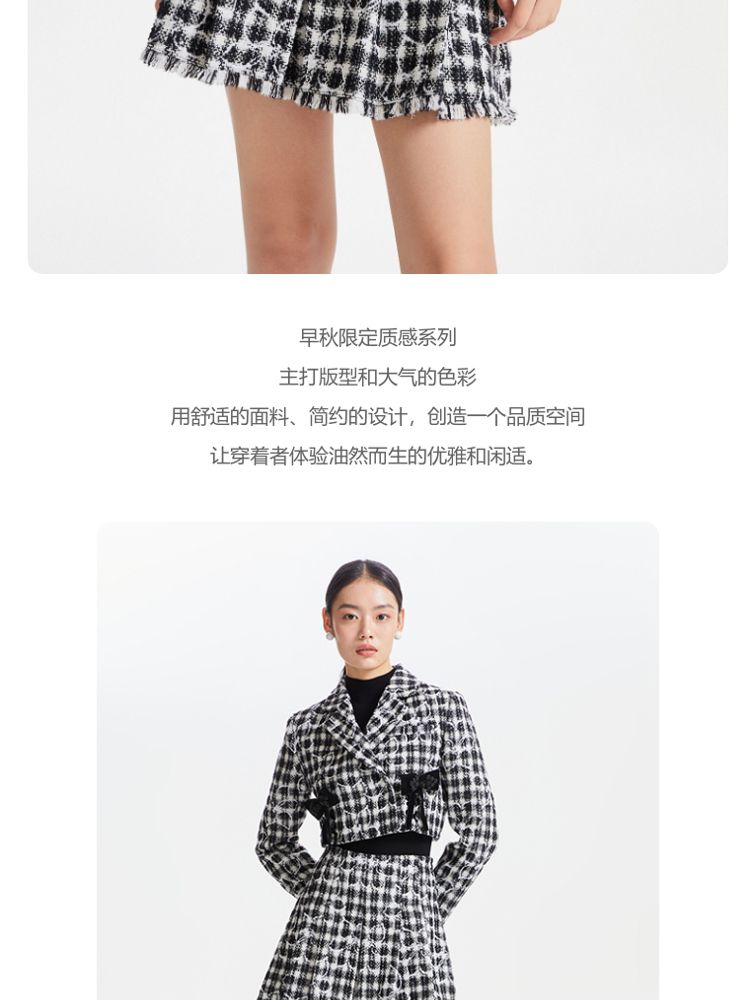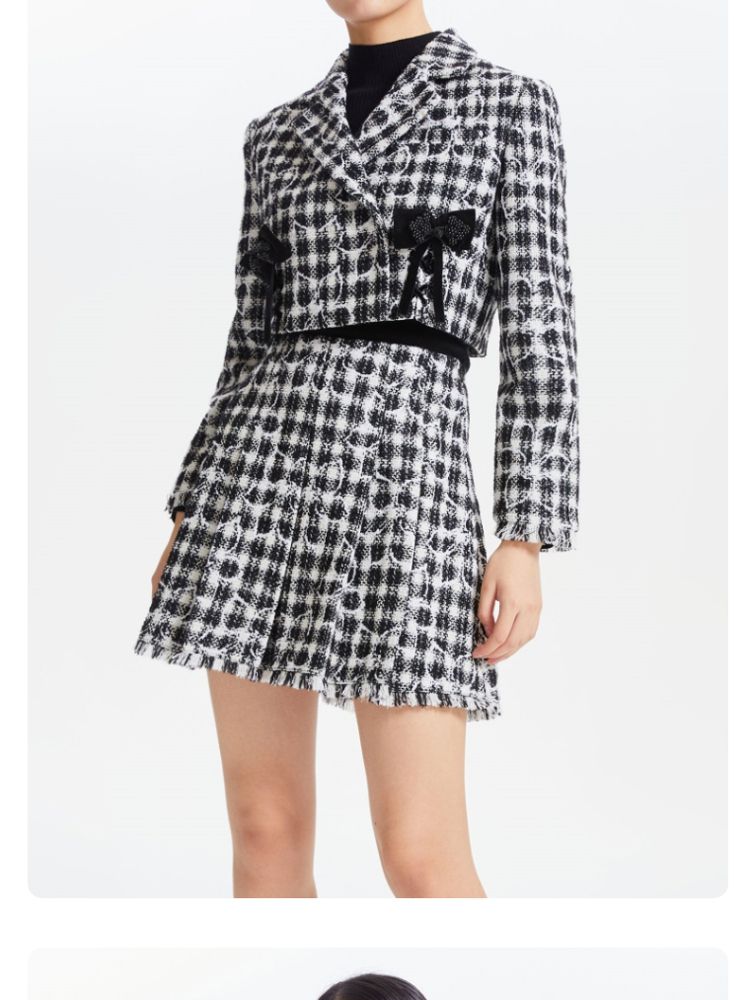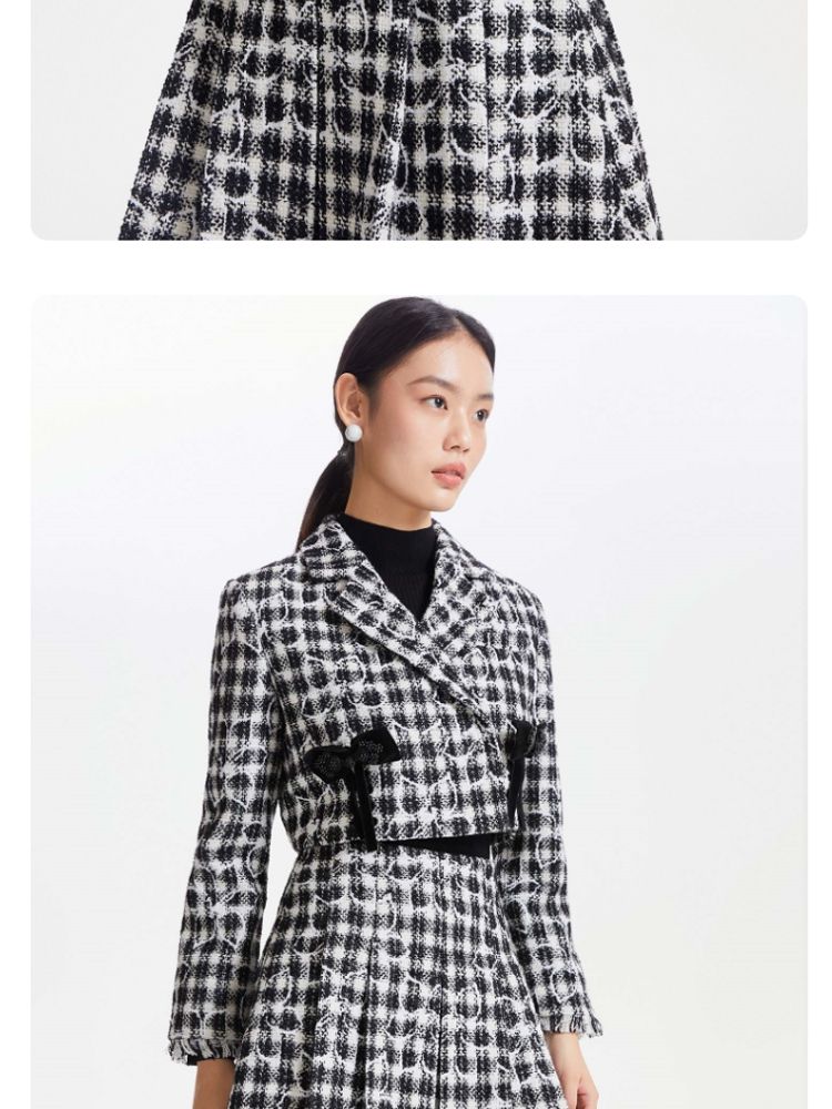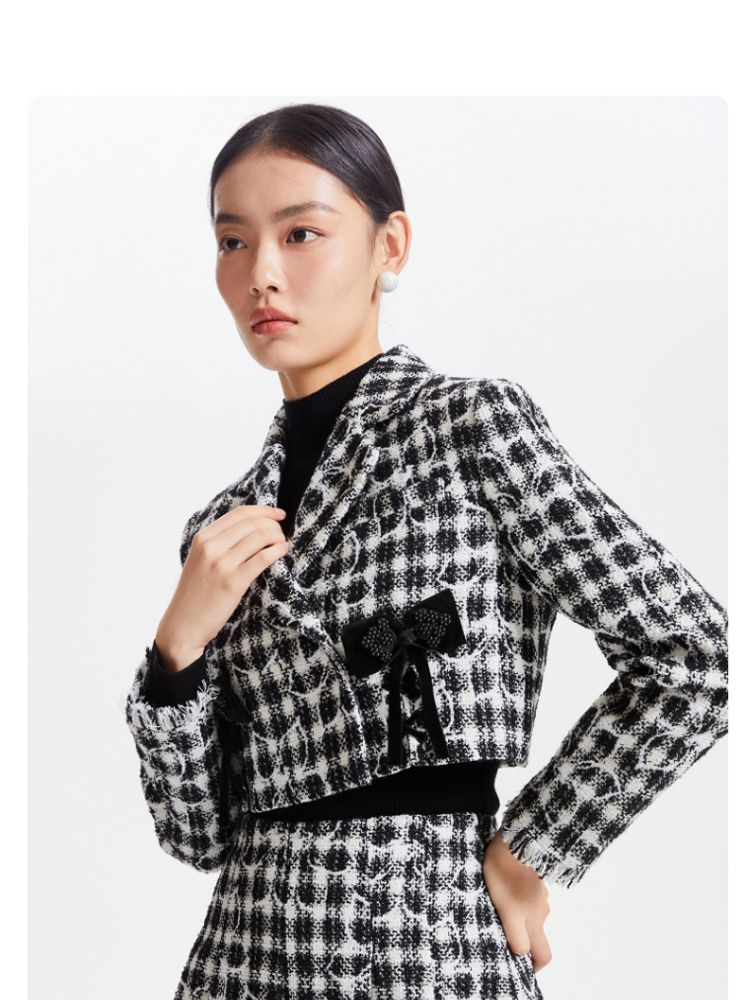 商品名称:【可拆卸蝴蝶结装饰】黑白格纹甜美直筒短款气质外套 490385