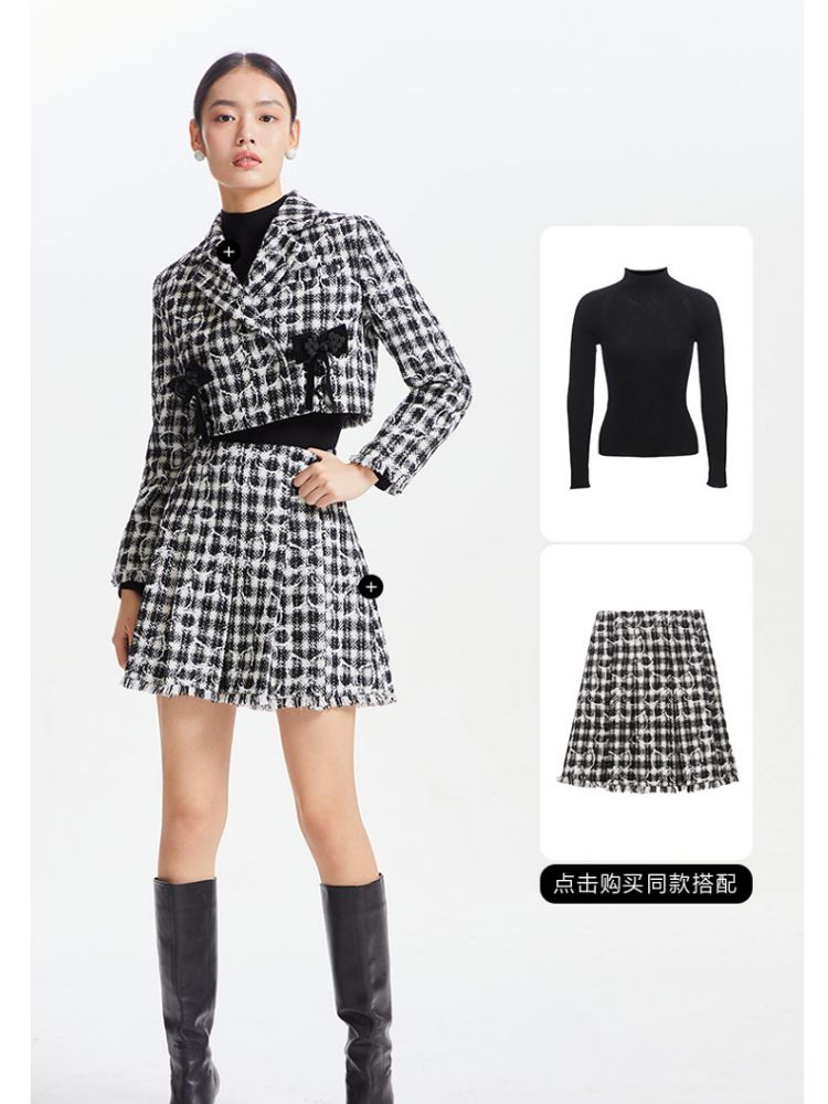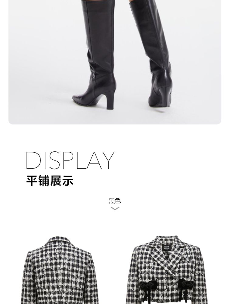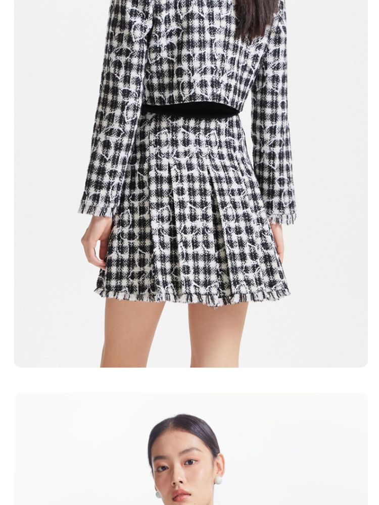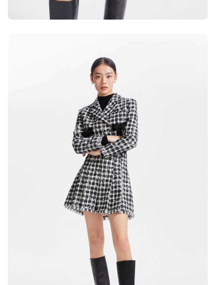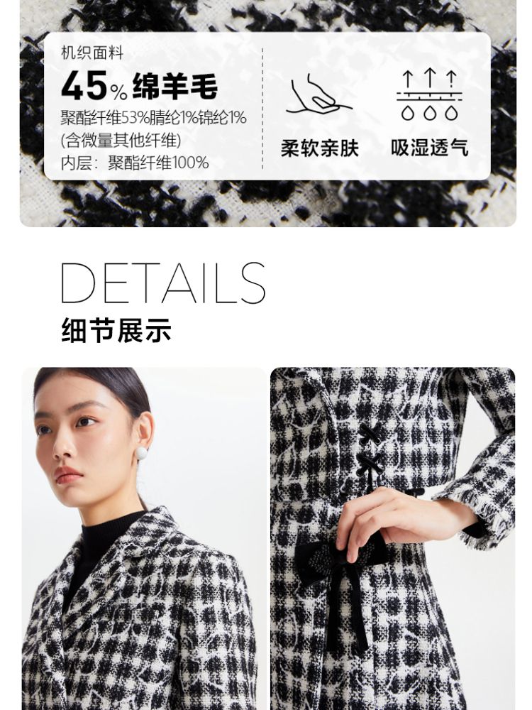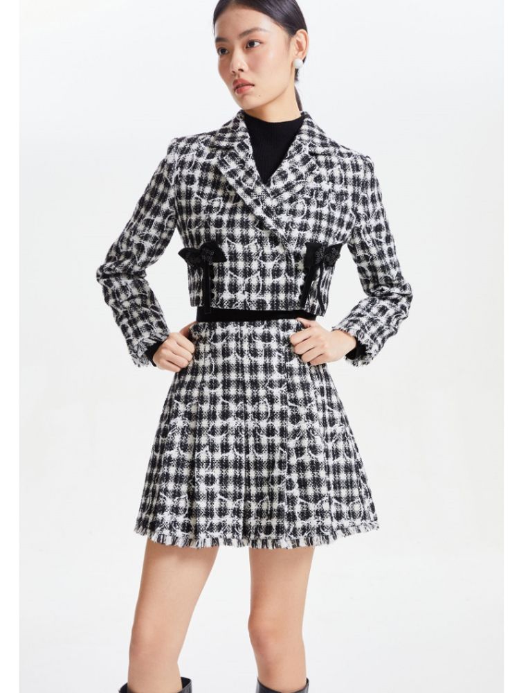 商品名称:【可拆卸蝴蝶结装饰】黑白格纹甜美直筒短款气质外套 490385