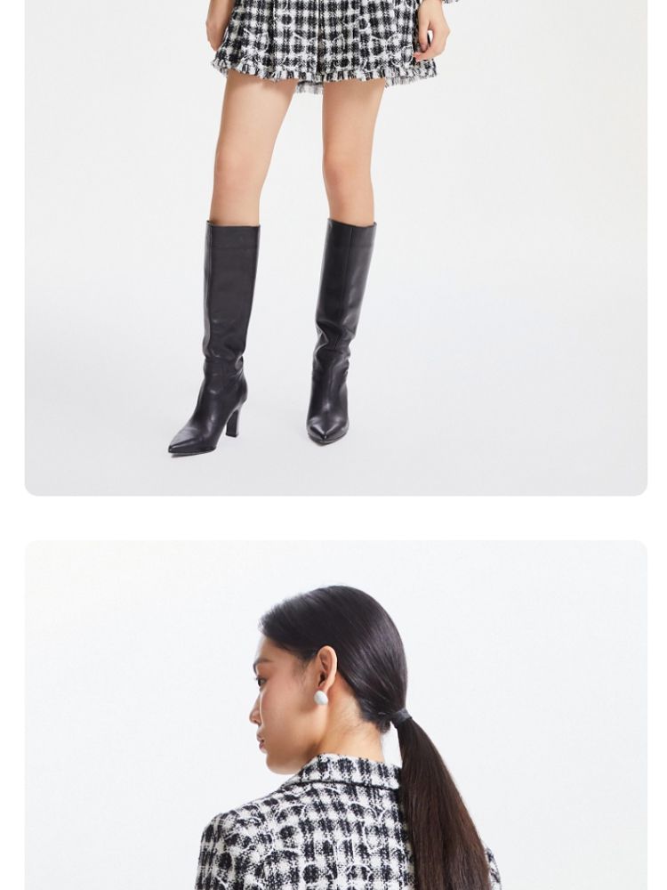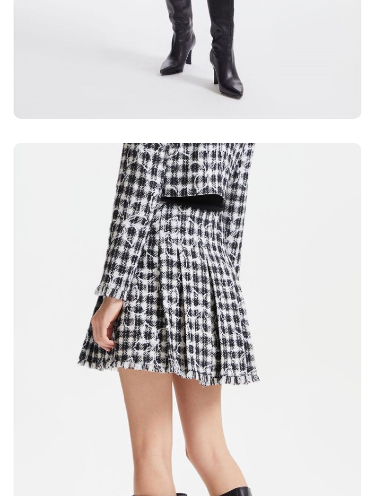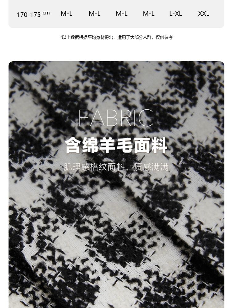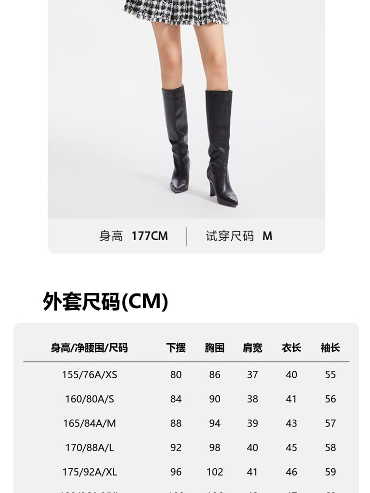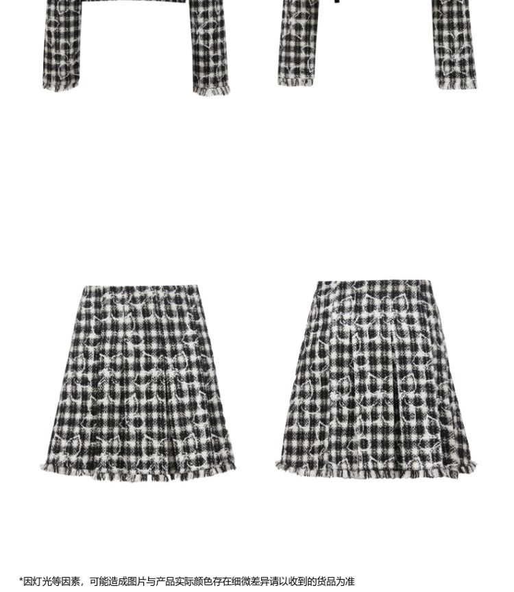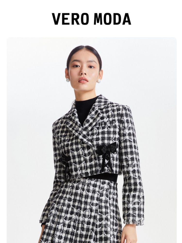 商品名称:【可拆卸蝴蝶结装饰】黑白格纹甜美直筒短款气质外套 490385