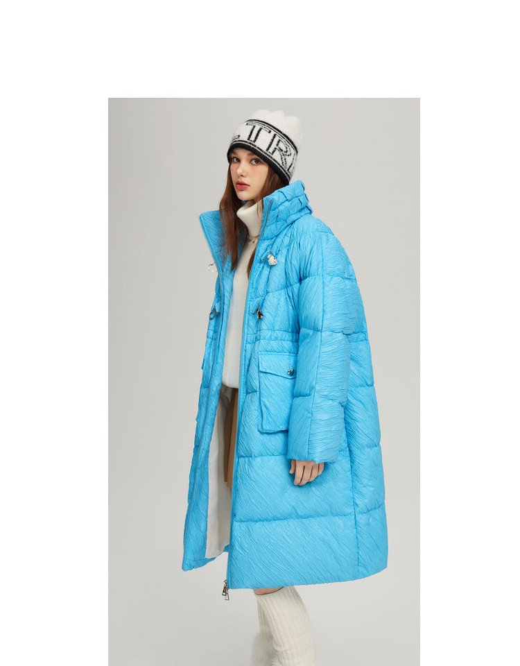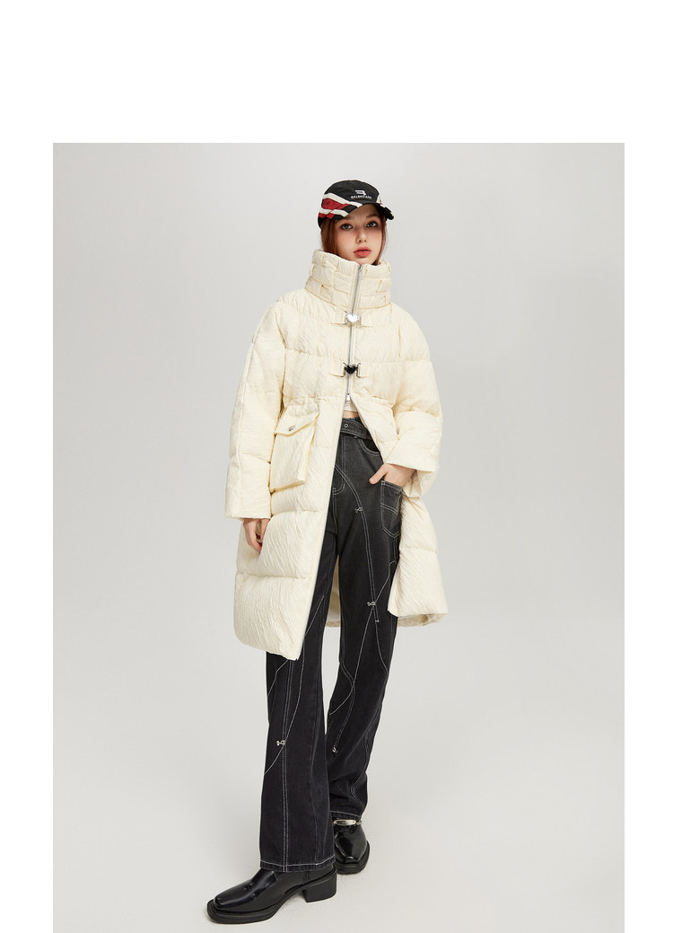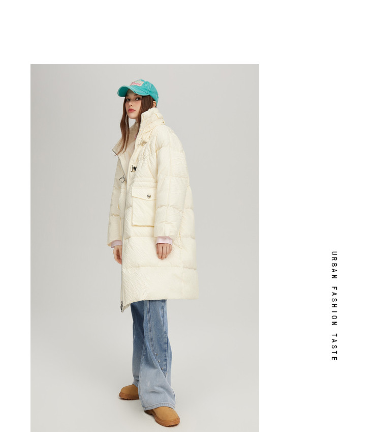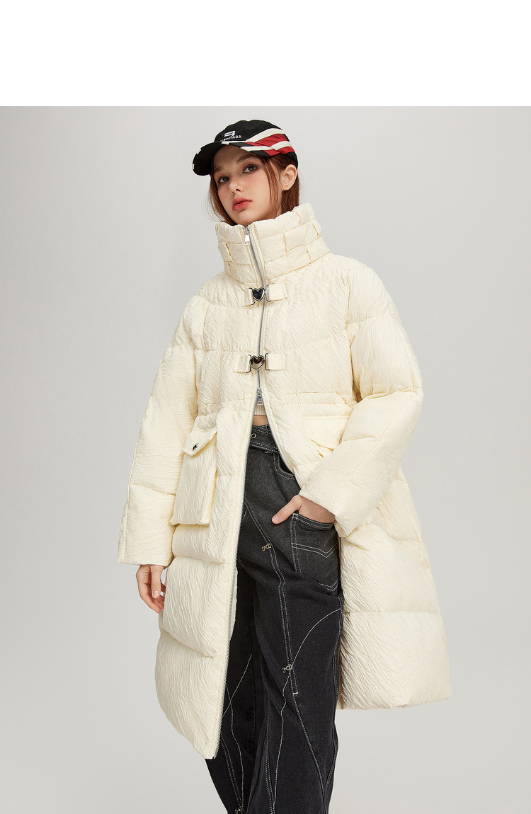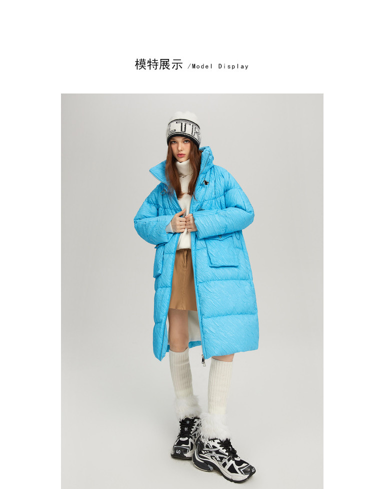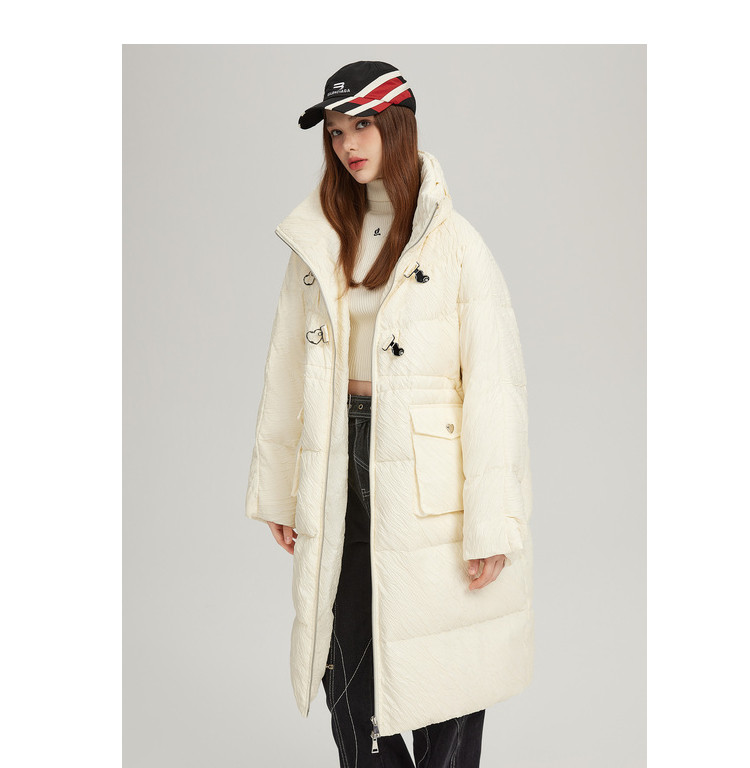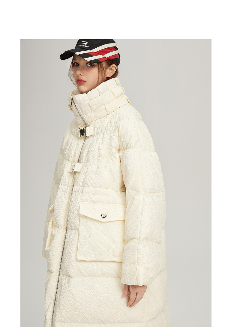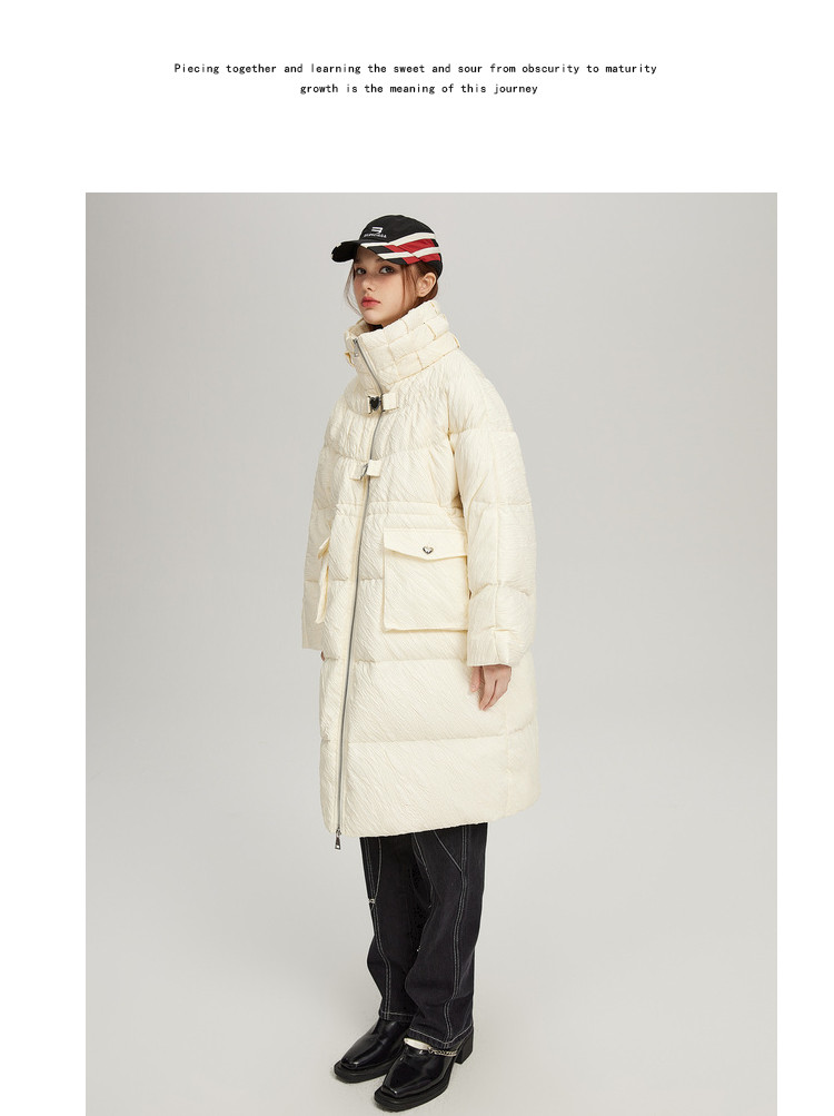 简约时尚压皱肌理感白鸭绒长款羽绒服女冬季保暖外套 412564