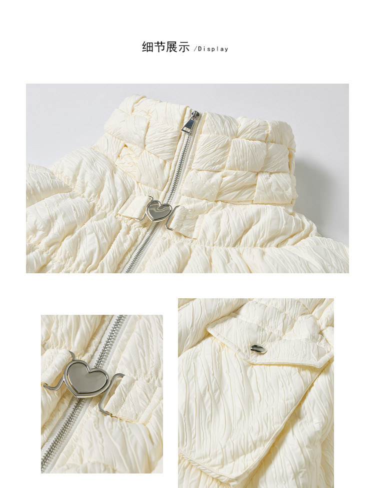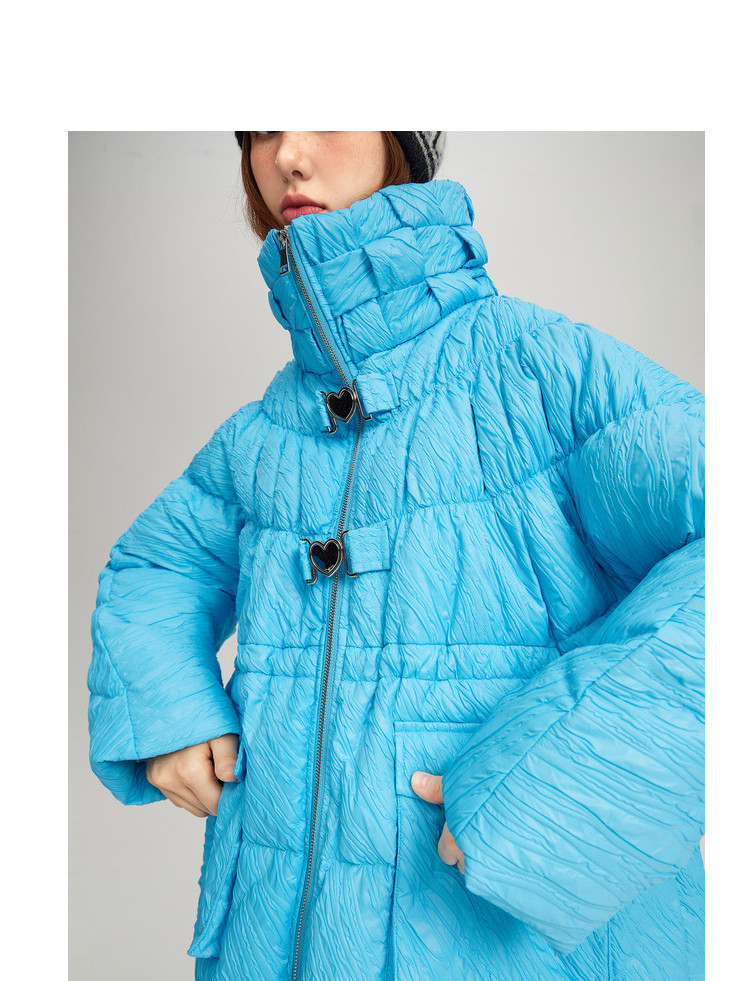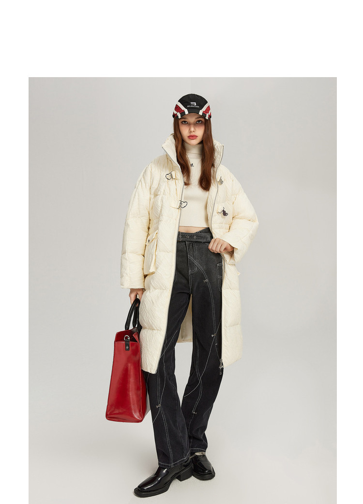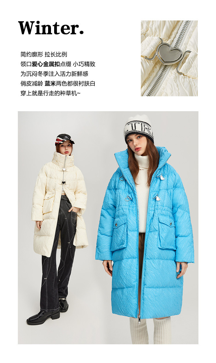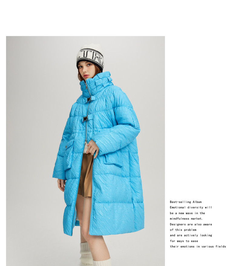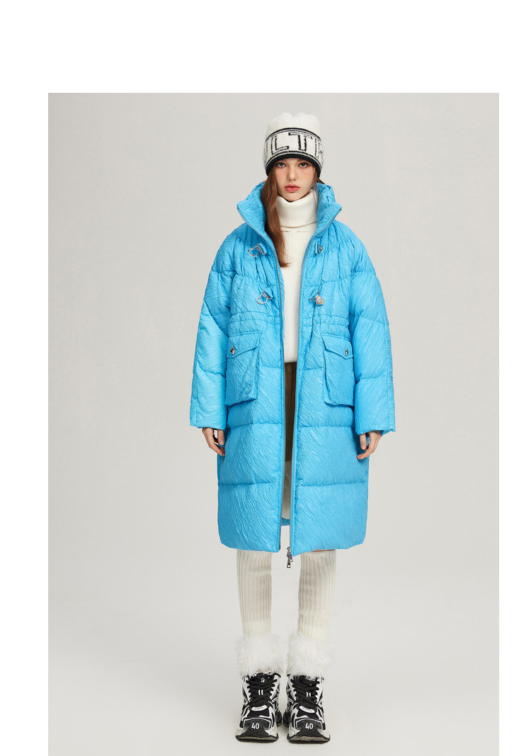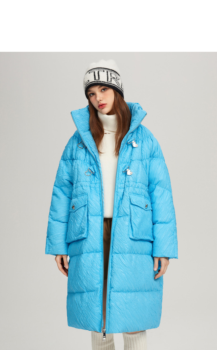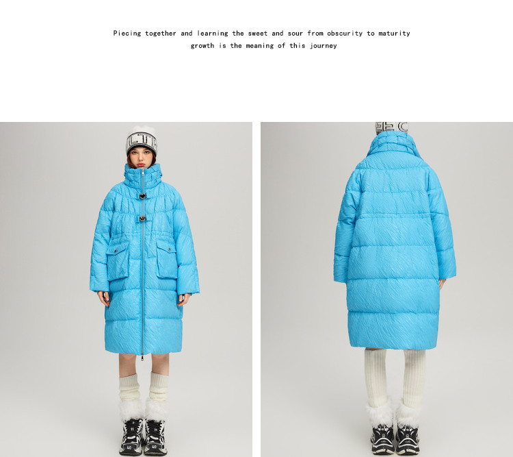 简约时尚压皱肌理感白鸭绒长款羽绒服女冬季保暖外套 412564