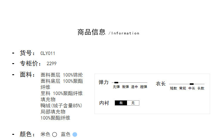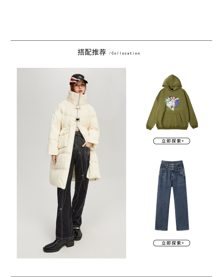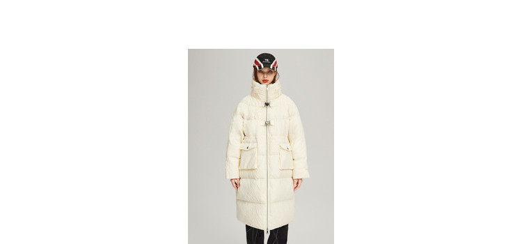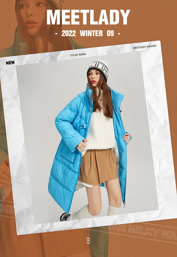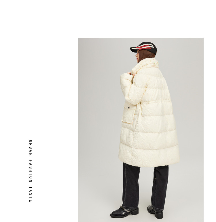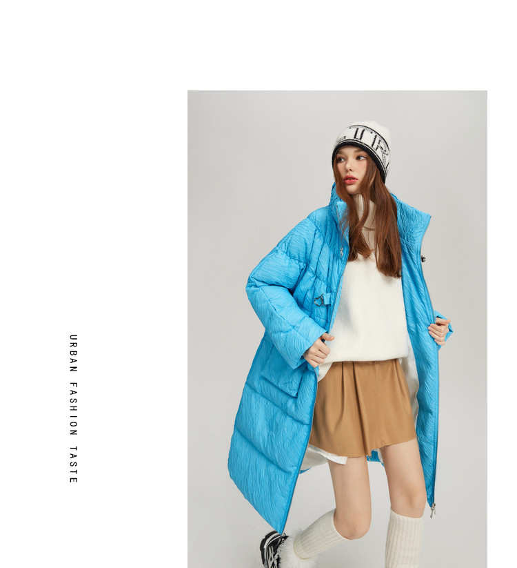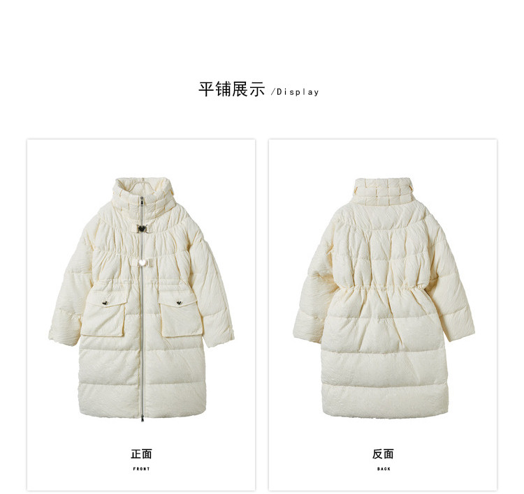 商品名称:简约时尚压皱肌理感白鸭绒长款羽绒服女冬季保暖外套 412564