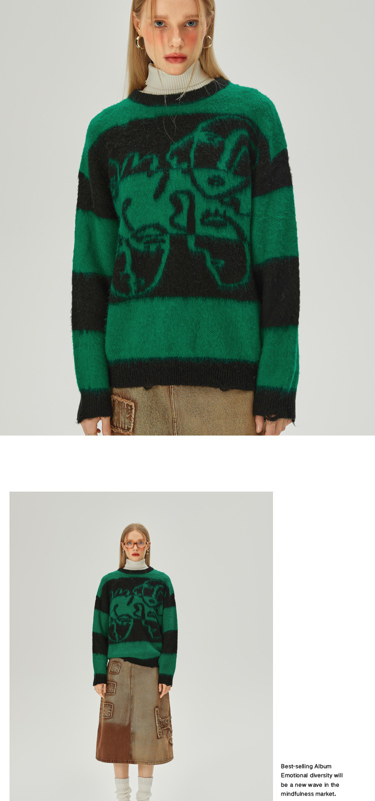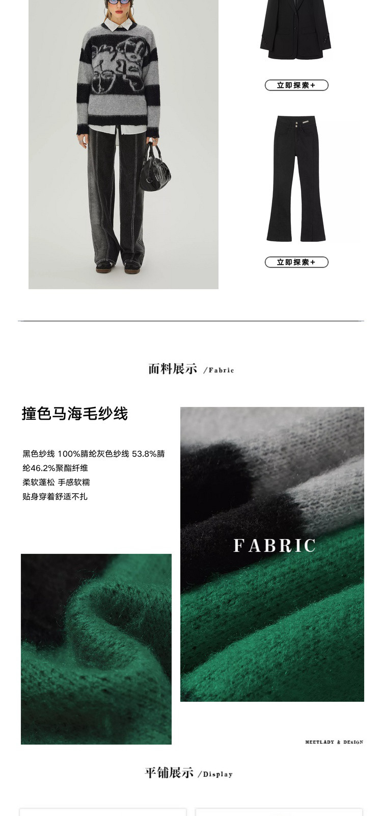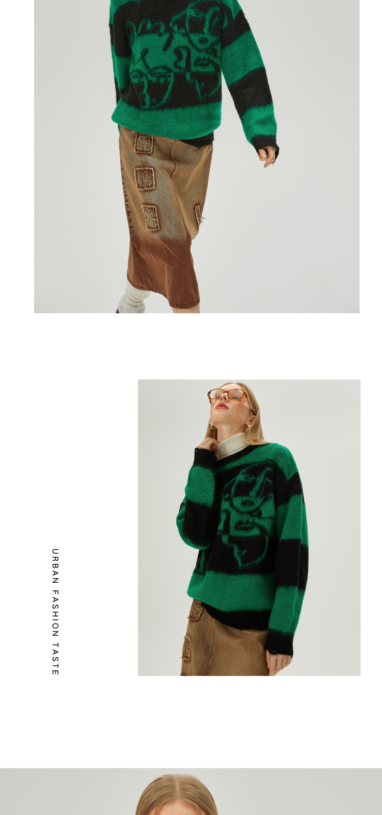 商品名称:【圆领破洞】冬撞色条纹慵懒复古毛衣设计感小众图案上衣 671828
