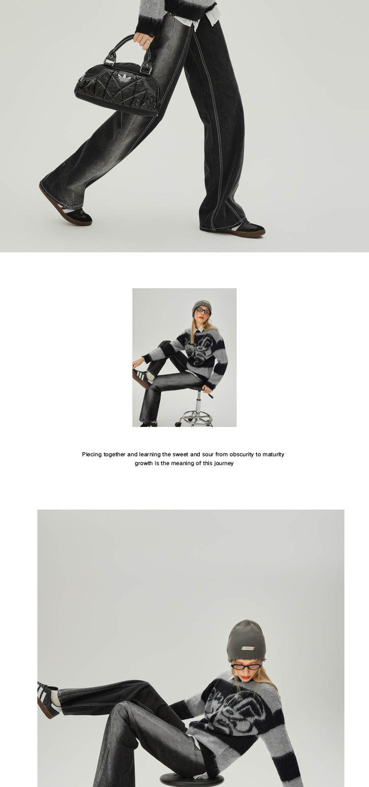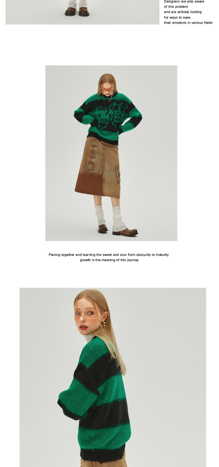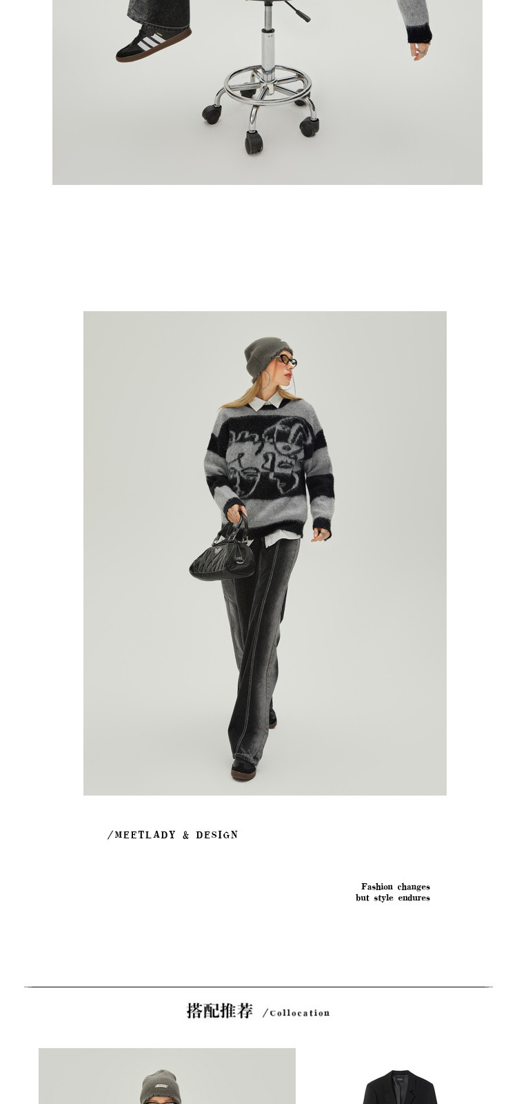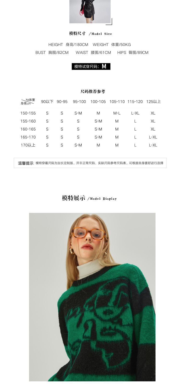 商品名称:【圆领破洞】冬撞色条纹慵懒复古毛衣设计感小众图案上衣 671828