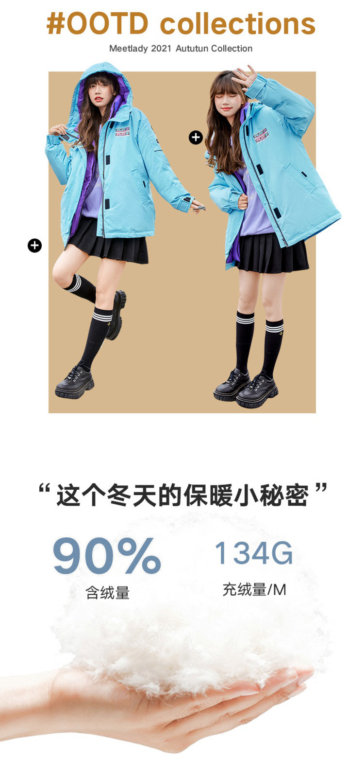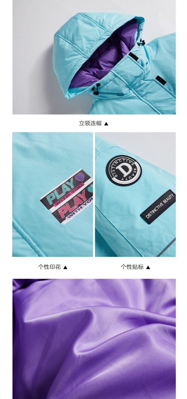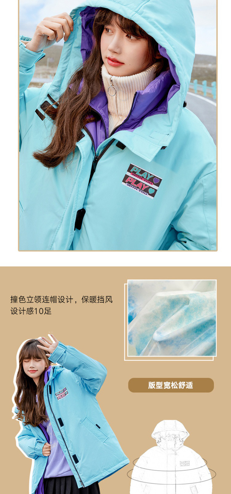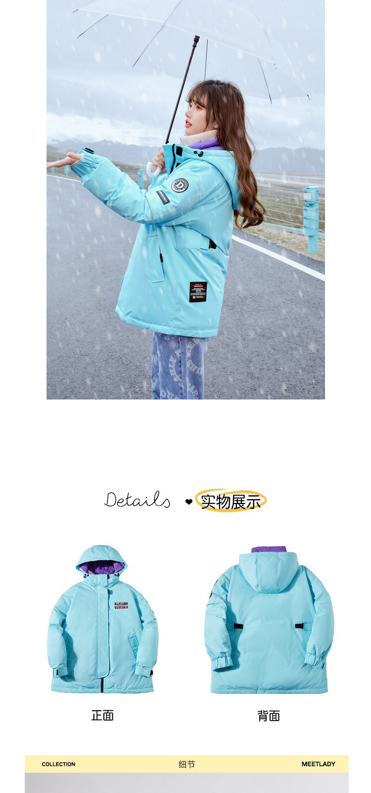 商品名称:冬直筒连帽羽绒服女时尚拉链长袖白鸭绒保暖外套 093268