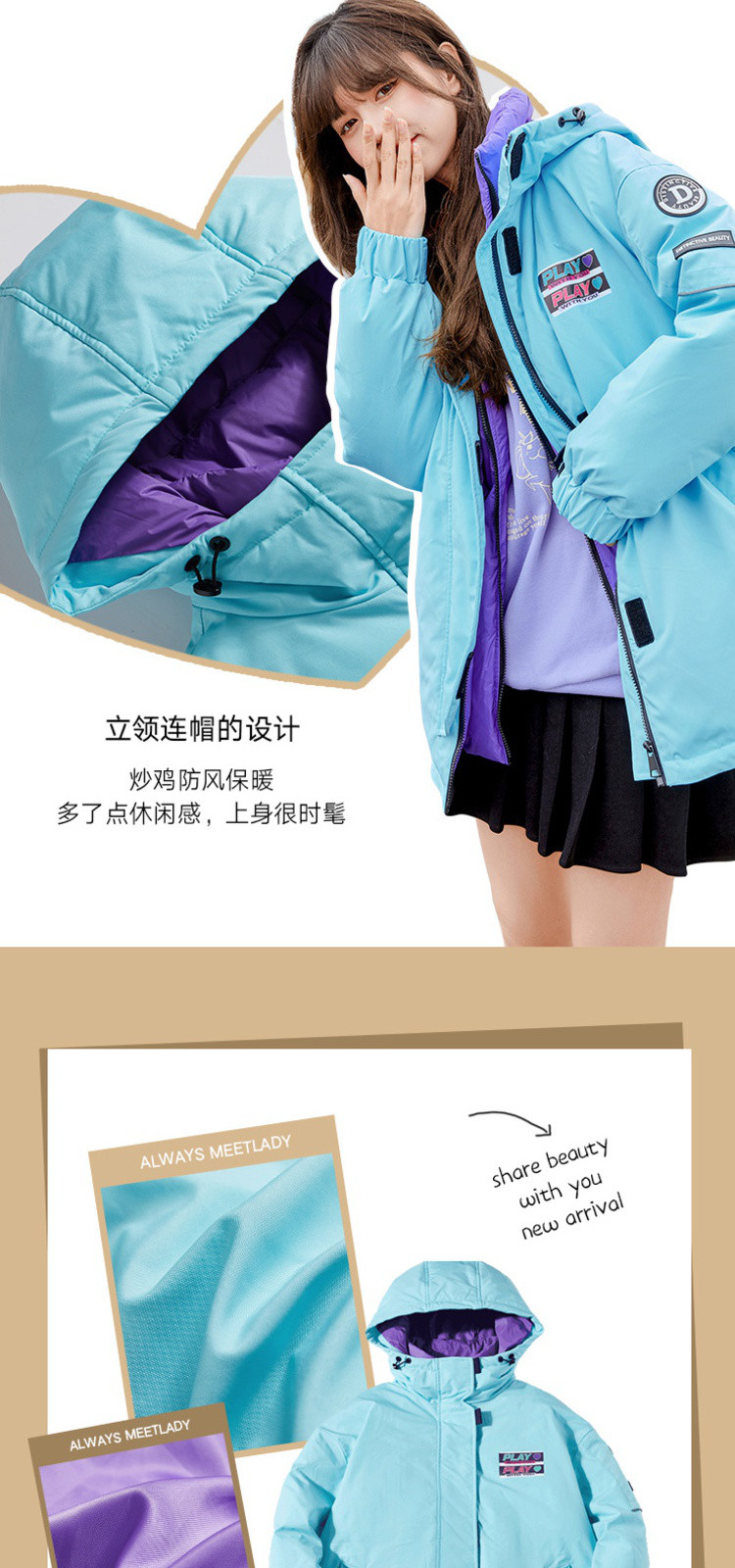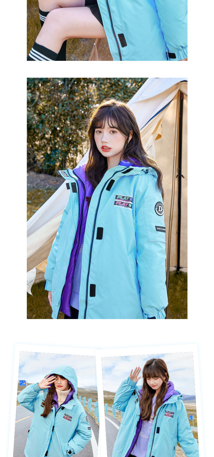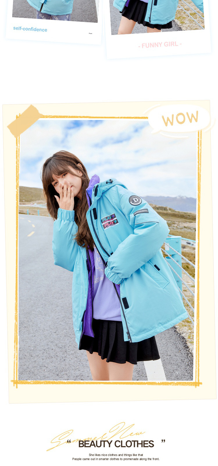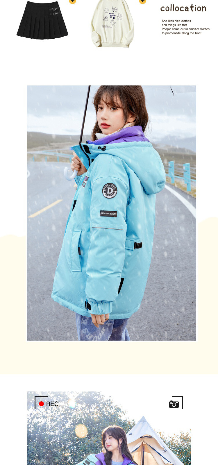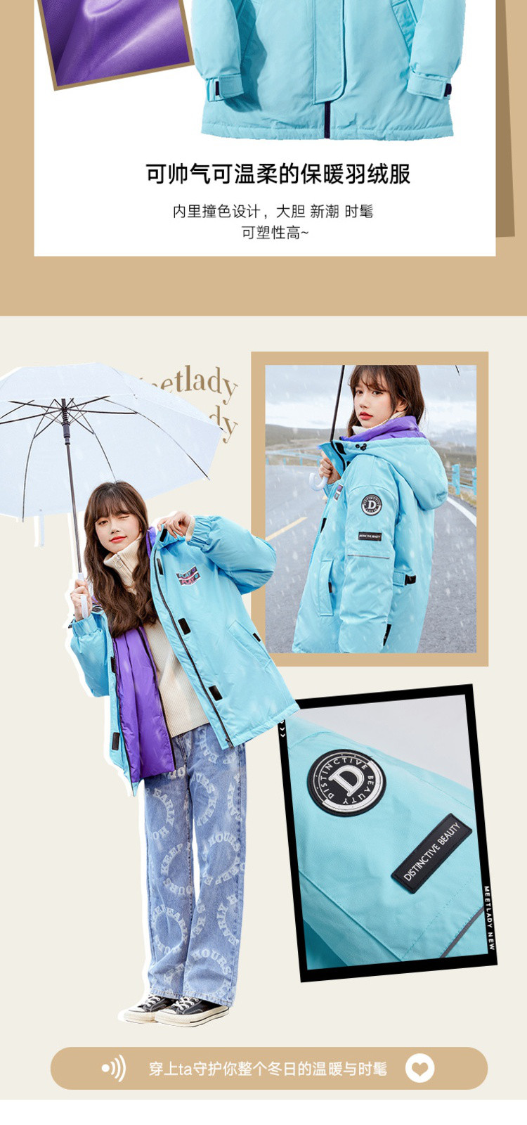 商品名称:冬直筒连帽羽绒服女时尚拉链长袖白鸭绒保暖外套 093268