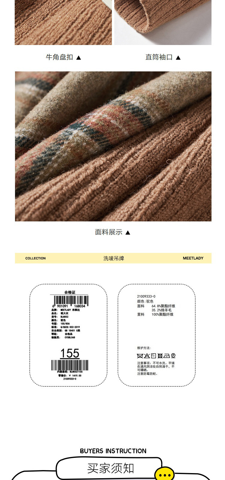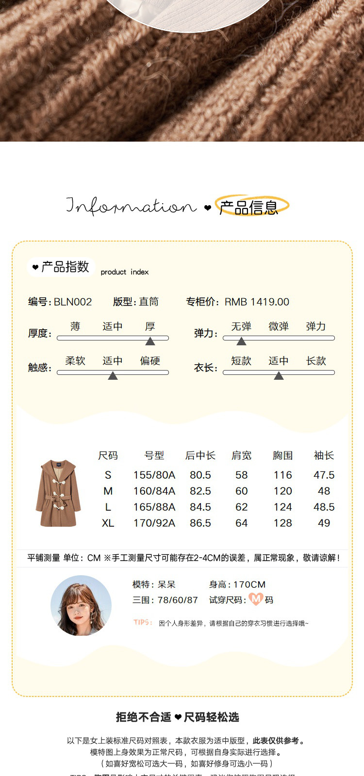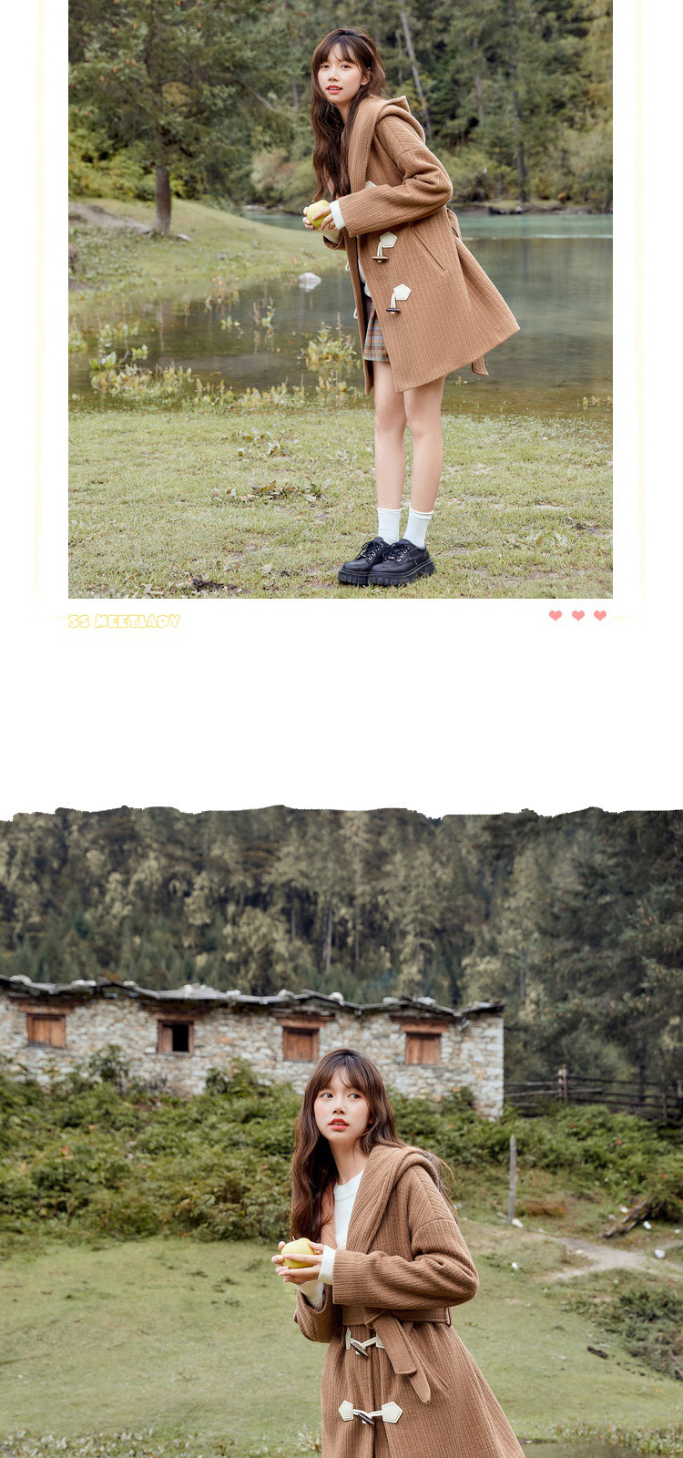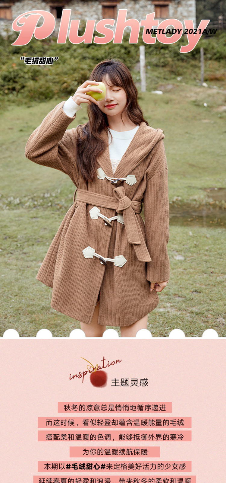 商品名称:冬法式复古收腰连帽牛角扣呢大衣女中长款毛呢外套 822356